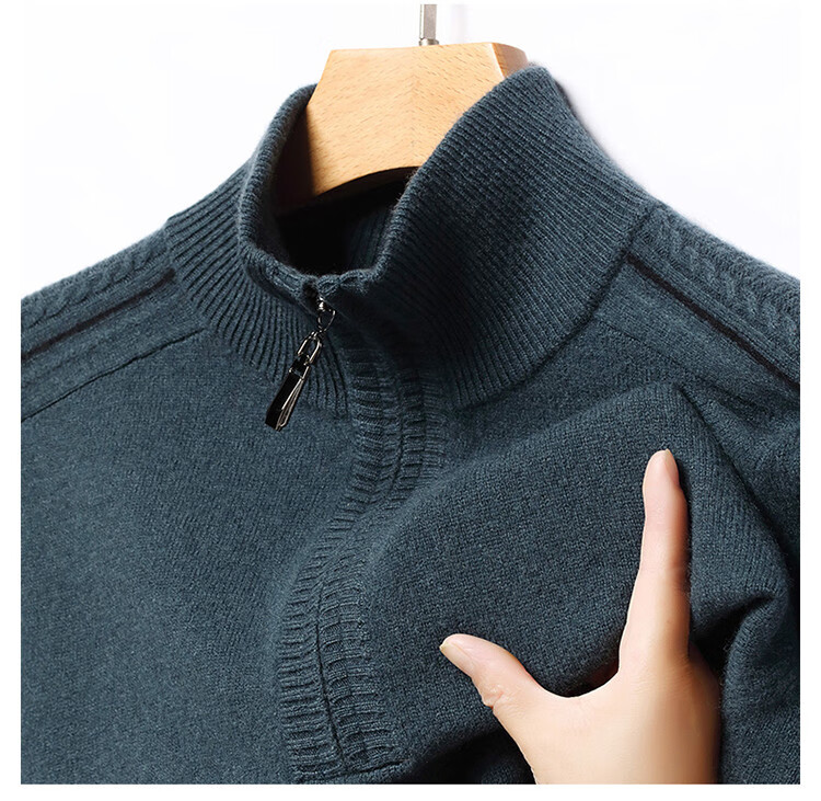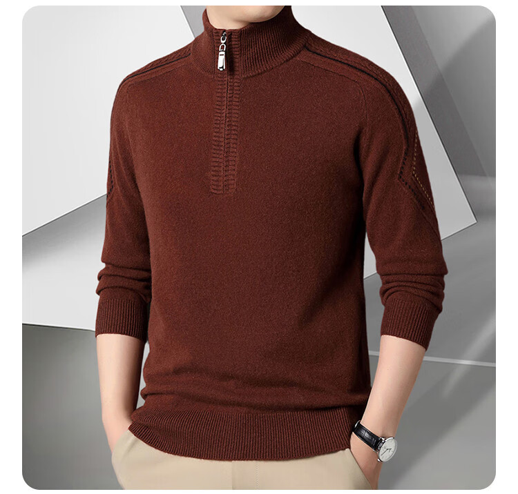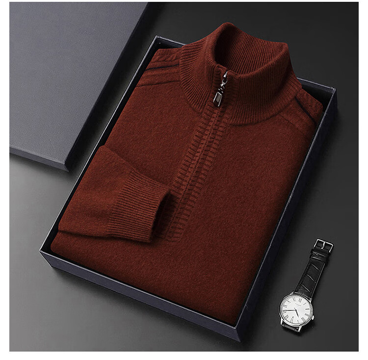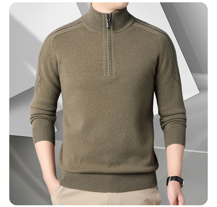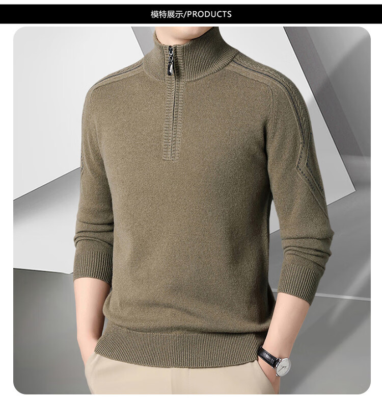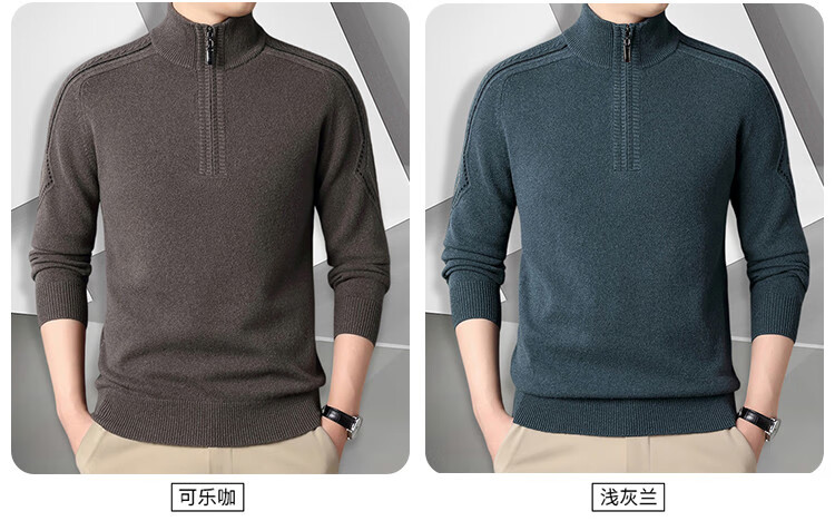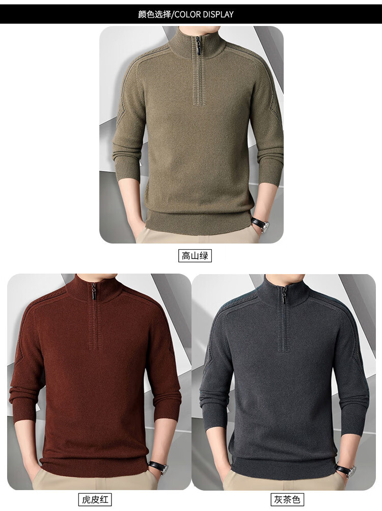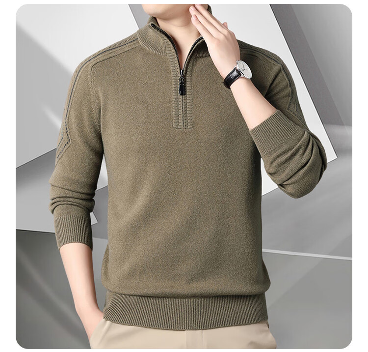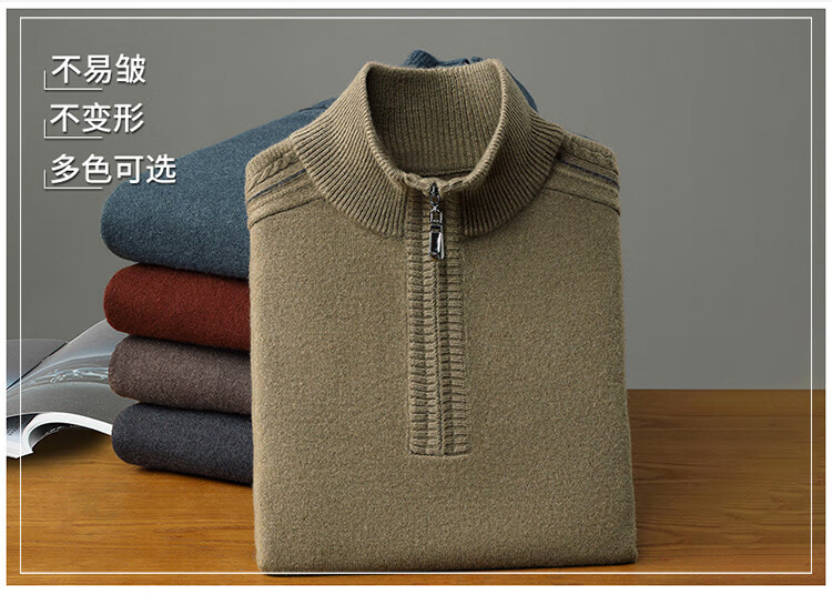 Hengyuanxiang Wool Sweater Men's Wool Half Turtle Collar Zipper Sweater Men's Autumn and Winter New Thick Knitted Bottoming Shirt Men's Pure Gray-89 Style 175/XL