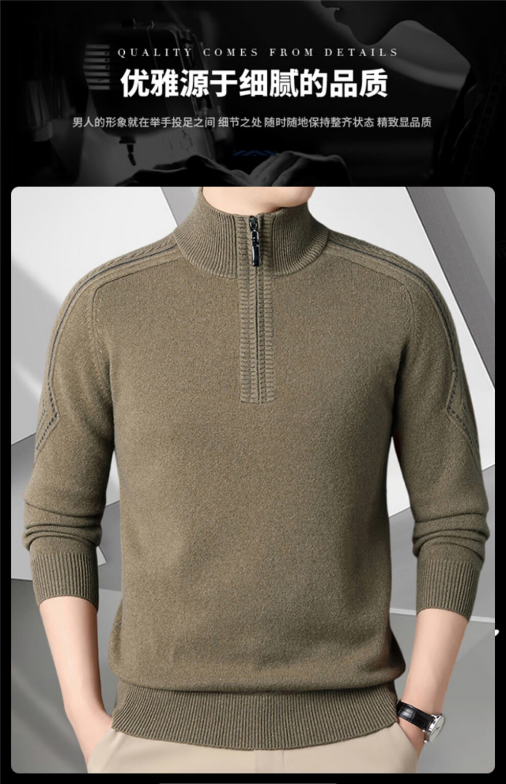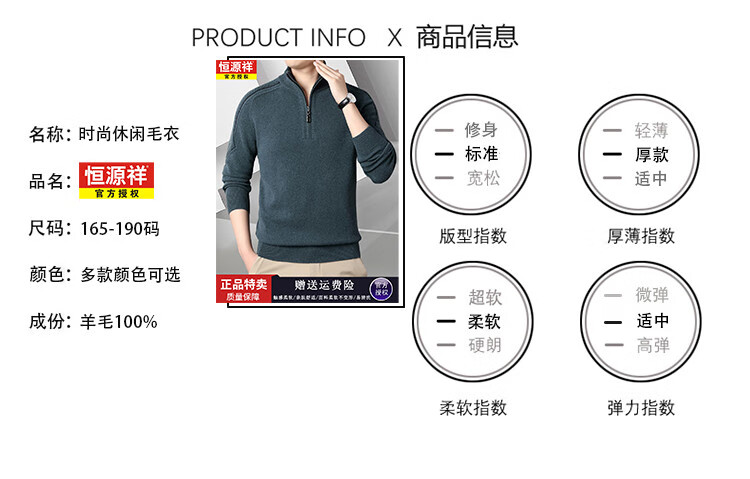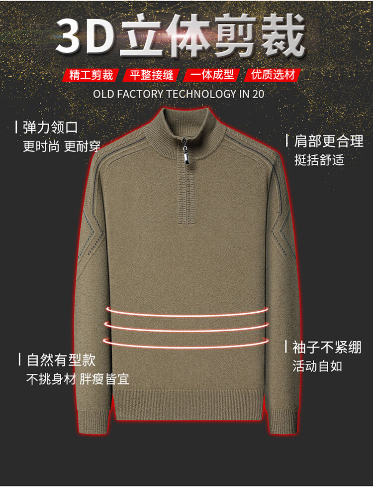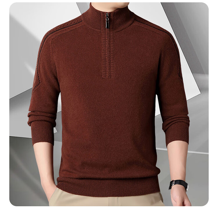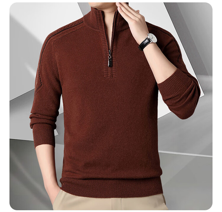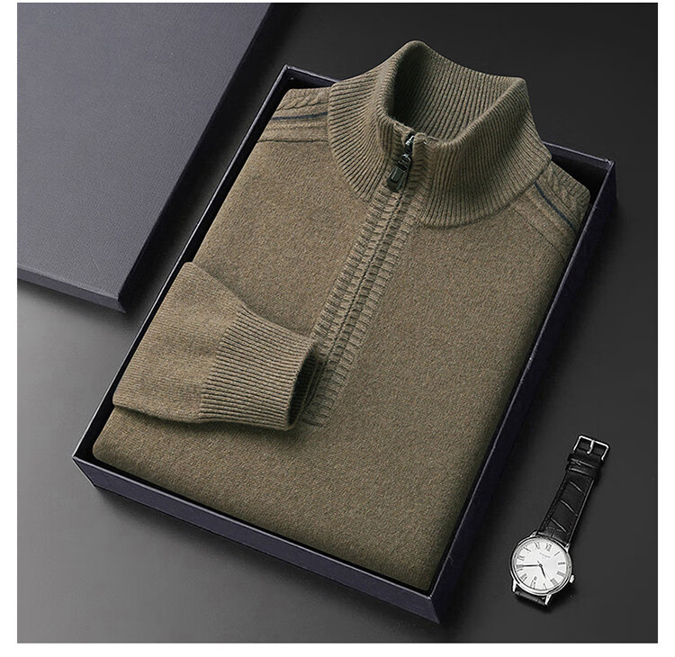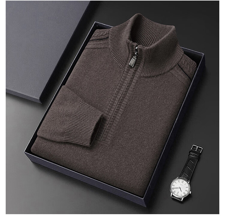 Hengyuanxiang Wool Sweater Men's Wool Half Turtle Collar Zipper Sweater Men's Autumn and Winter New Thick Knitted Bottoming Shirt Men's Pure Gray-89 Style 175/XL