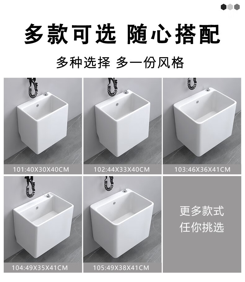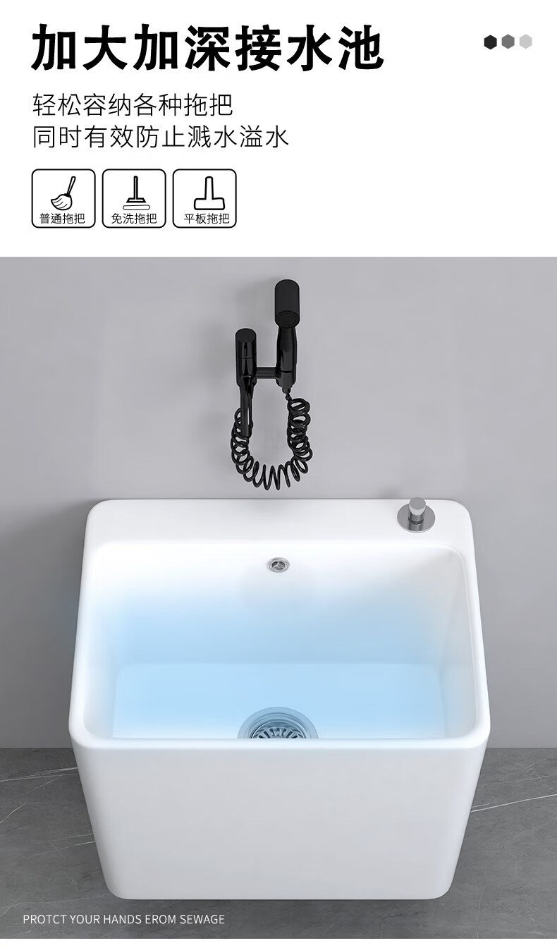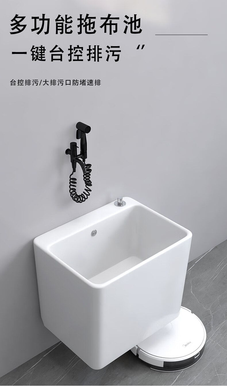 Mudingding household wall-mounted mop pool wall row household balcony bathroom wall-mounted mop pool ceramic large size premium glazed-10140*30 one-click drainage