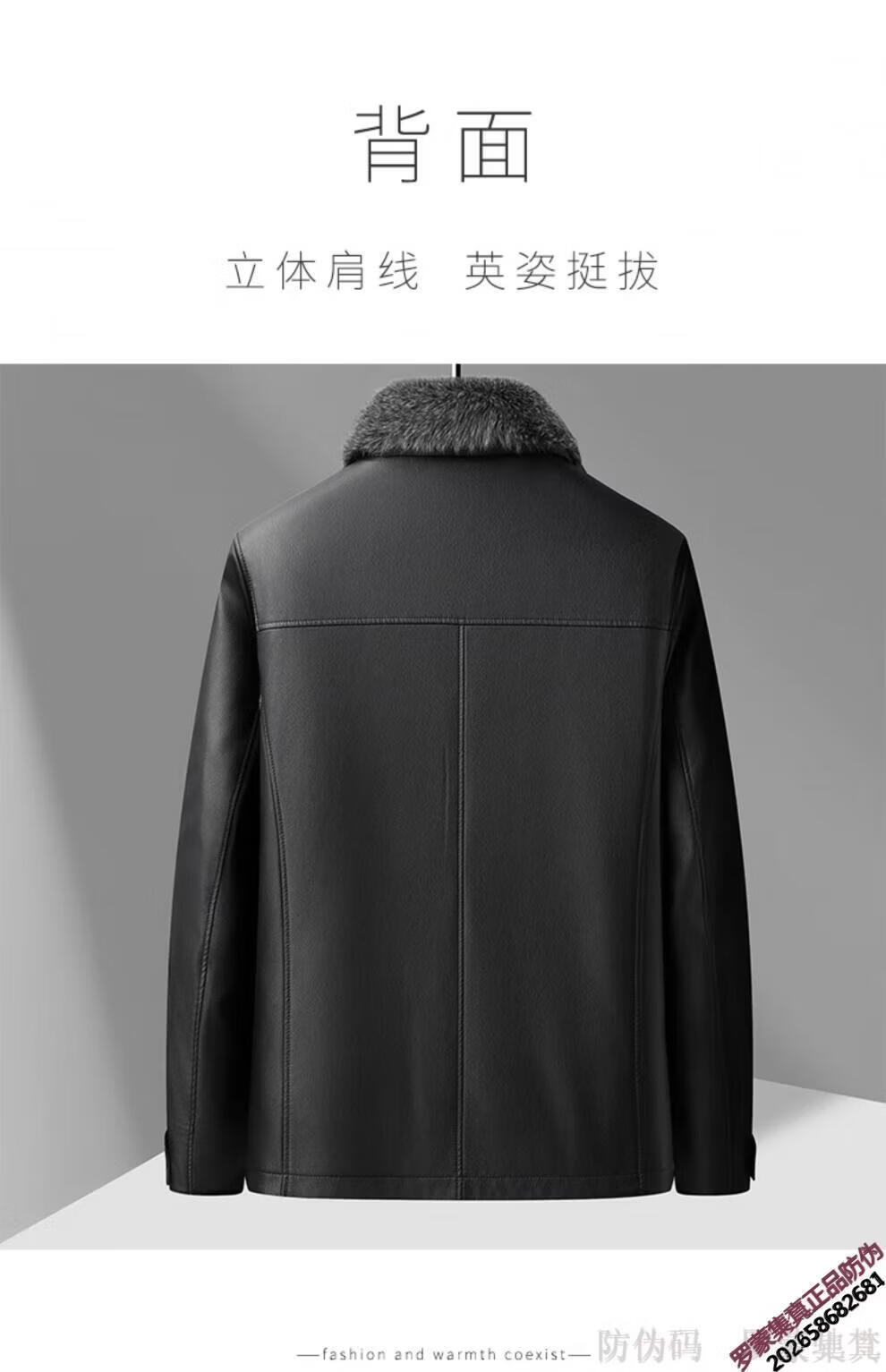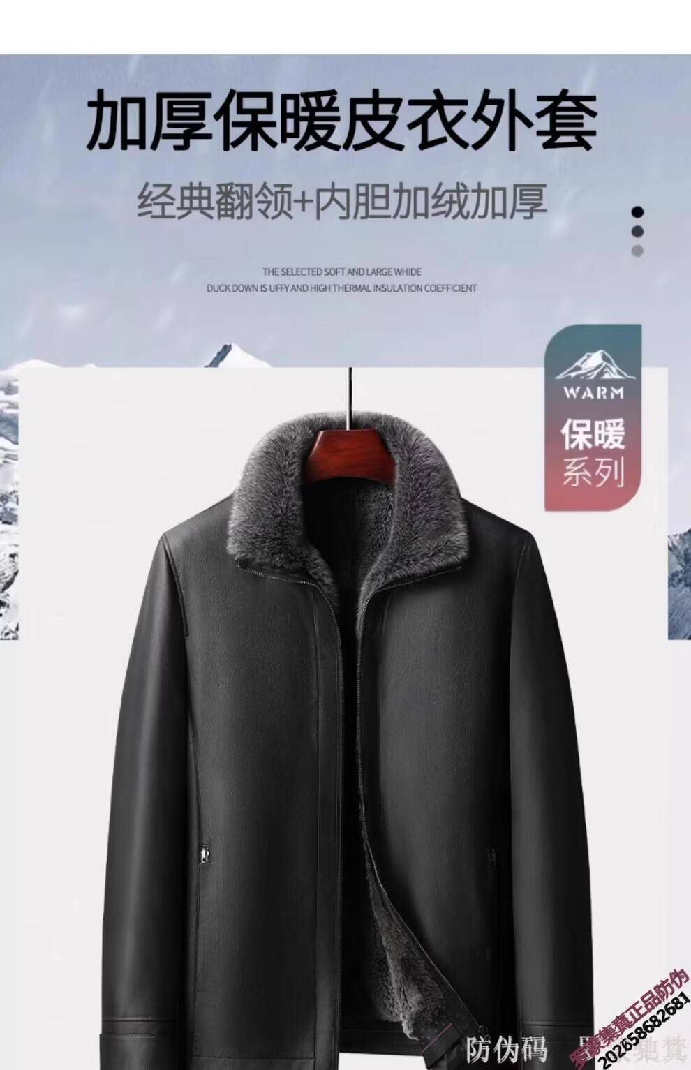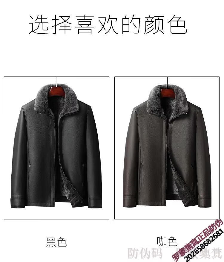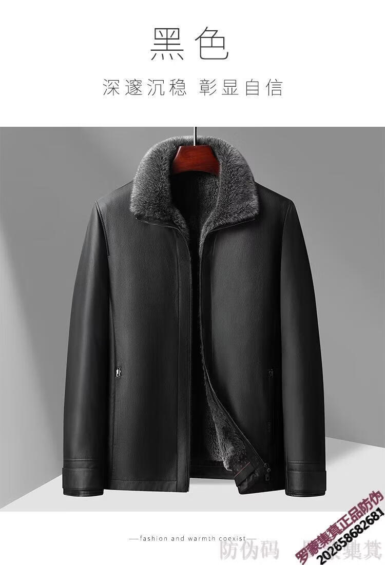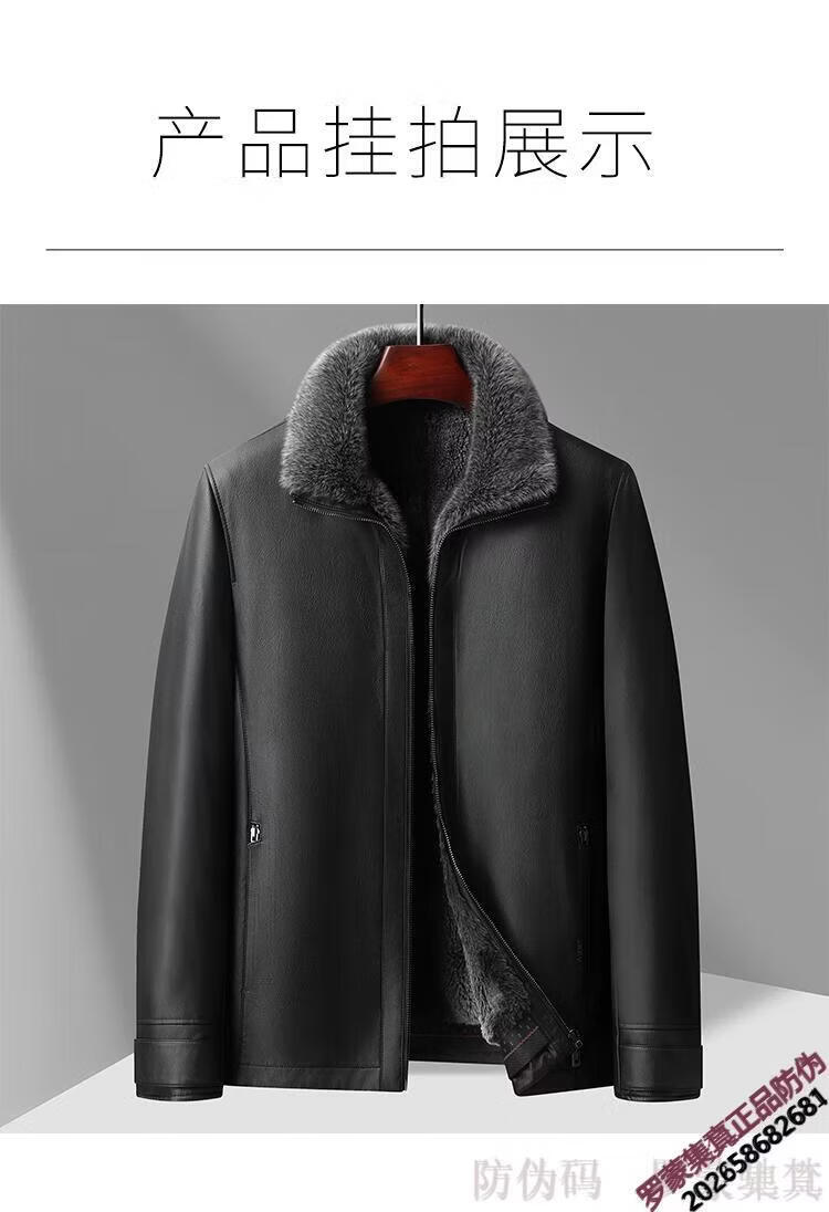 ROMON middle-aged and elderly men's leather jackets with velvet and thickened dad's winter coats, grandfathers and elderly men's winter leather jackets new product HLY-8865-black thickened liner plus 170 suitable for 90-110 Jin Jin is equal to 0.5 kg