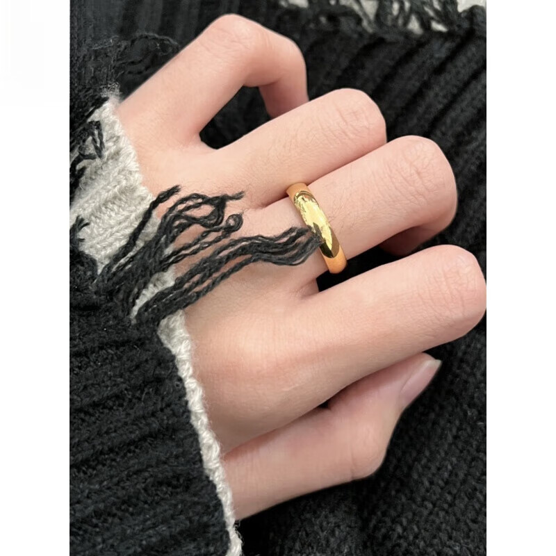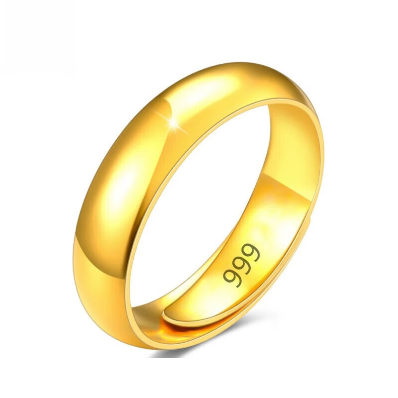 Menbin 24ki gold ring couple loach back glossy ring live mouth ring 999 gold men and women 3D hard gold glossy ring 2.98g