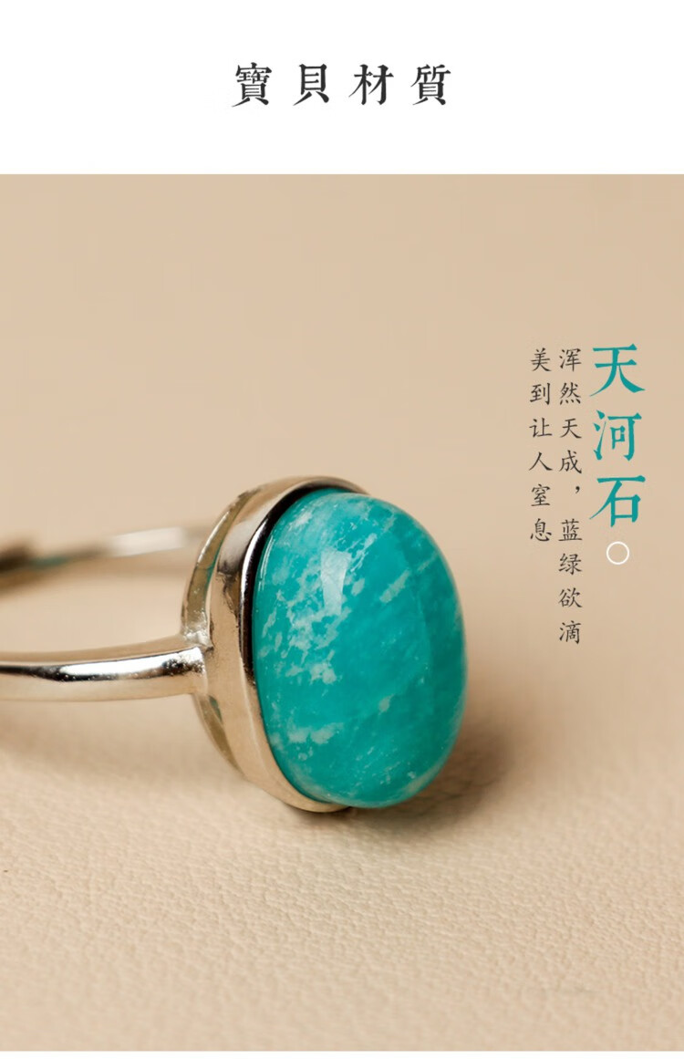 Red shadow 7A ice type natural old mine amazonite ring women's S925 silver blue green glacier good luck courage gemstone