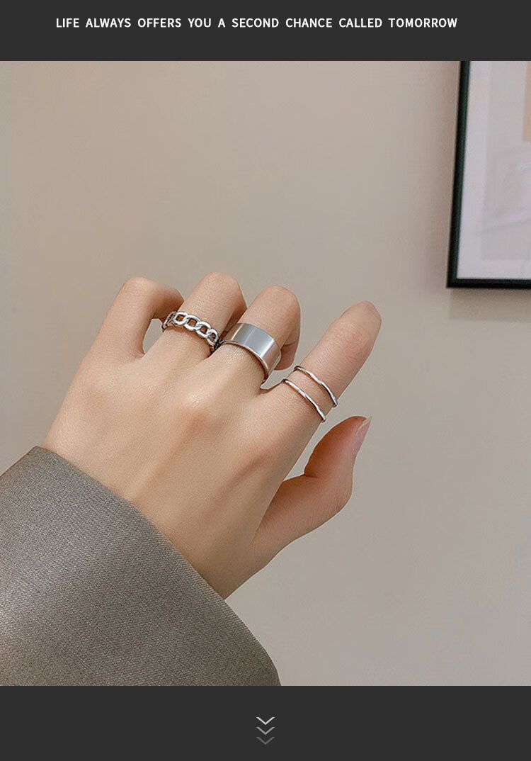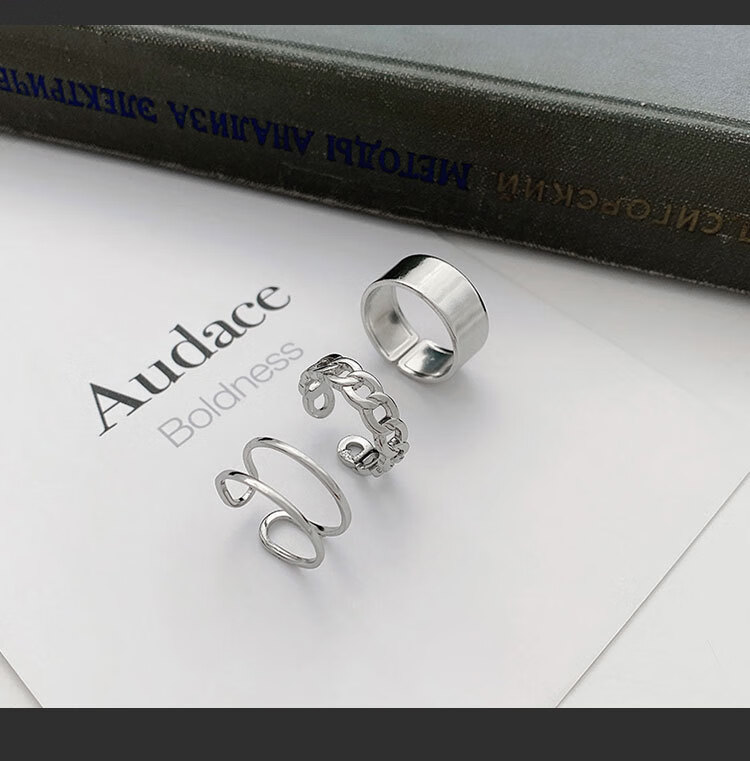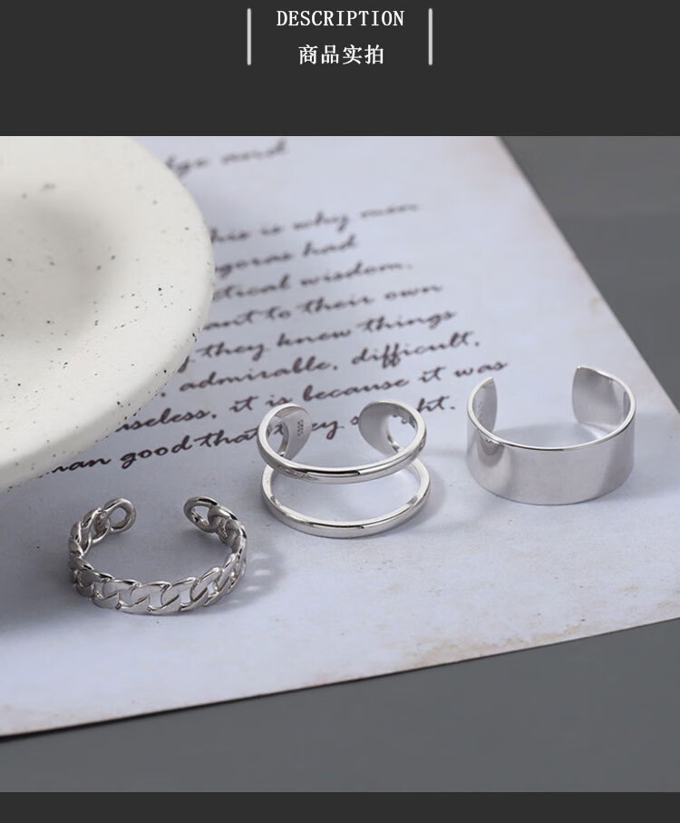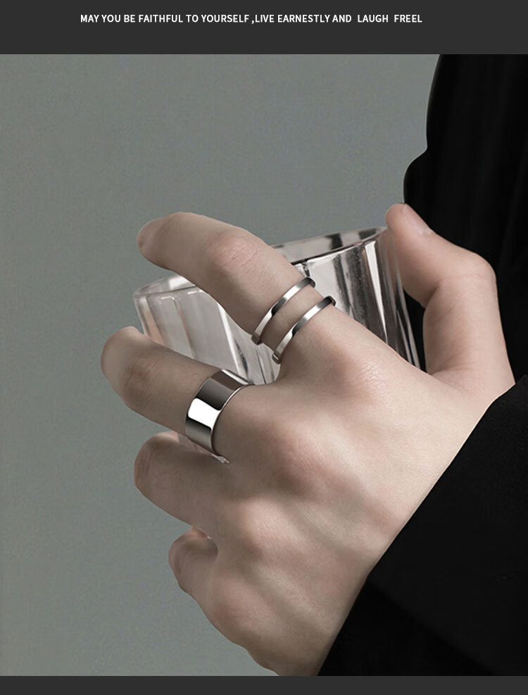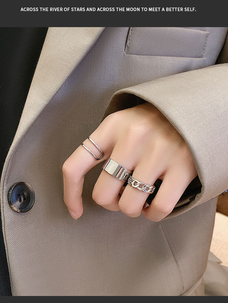 Decorative Show Ring Ring Men's Trendy Light Luxury Niche Design Titanium Steel Suit Couple Girls Fashion Personalized Open Index Finger Ring Three-piece Set Titanium Steel