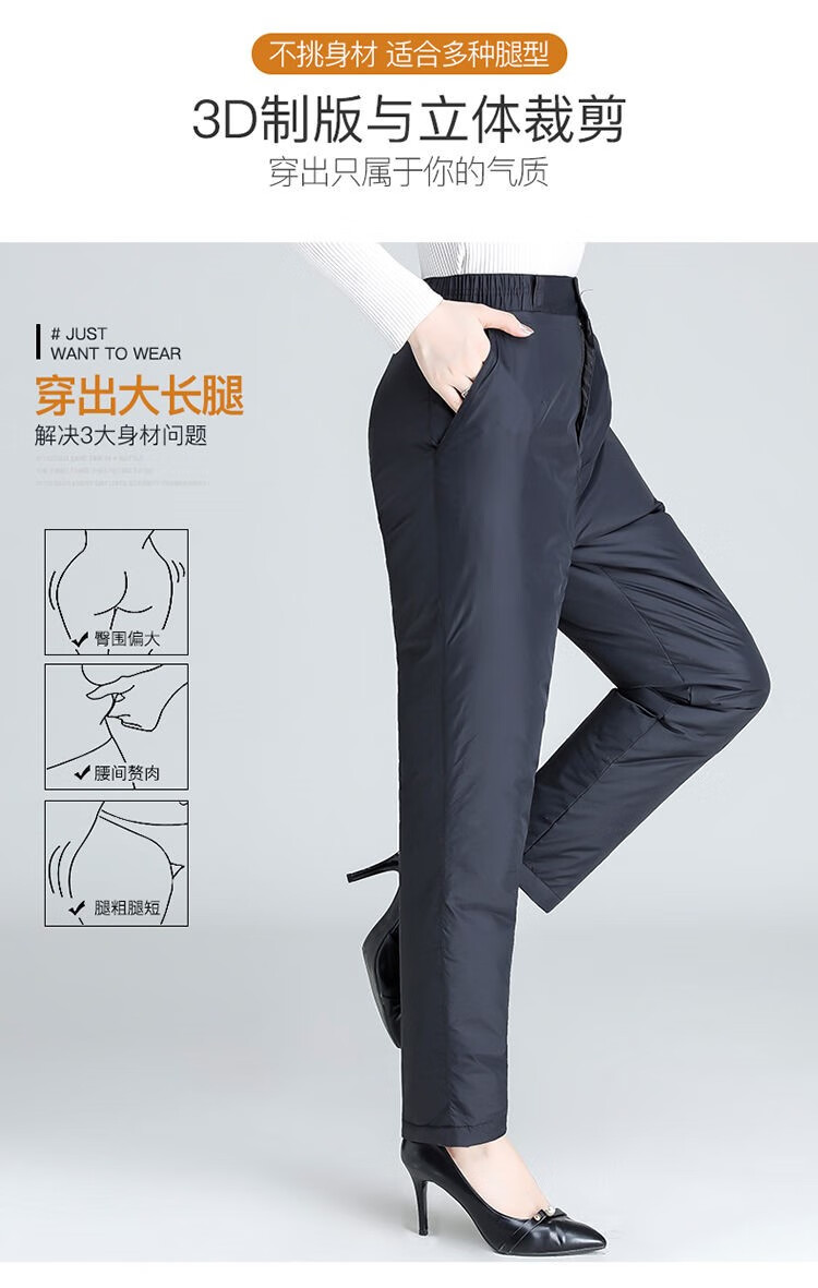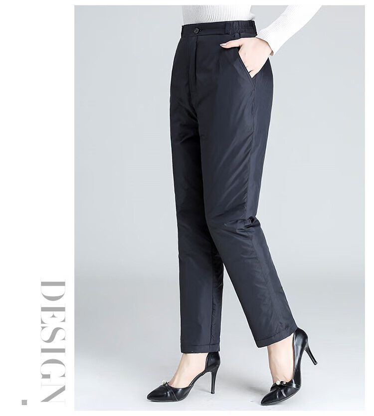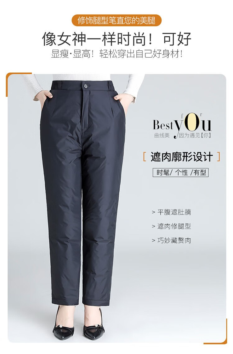 Duck down middle-aged and elderly women's outer wear high waist deep crotch loose large size winter thickened warm white duck down straight cotton pants black XL recommended 125-145 Jin Jin equals 0.5 kg