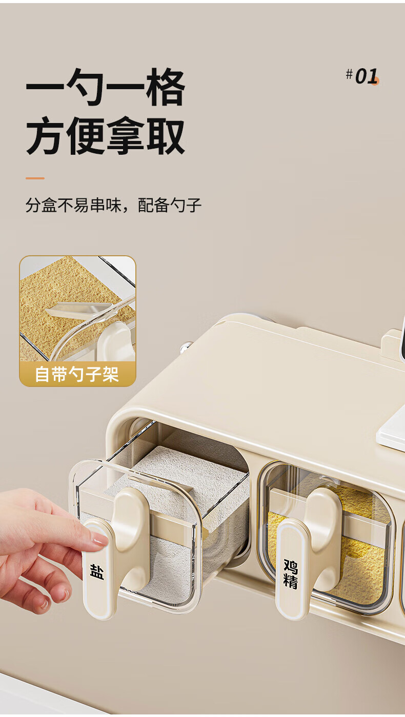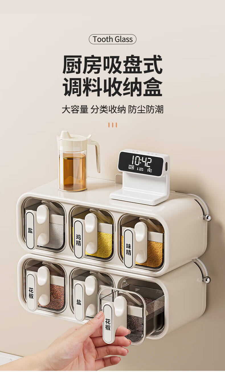 YOUQIN suction cup seasoning box wall-mounted seasoning jar kitchen household set moisture-proof salt jar seasoning storage box three compartments simple storage / horizontal and vertical use