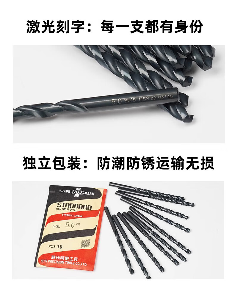 Su's Taiwan Su's drill bits 10 pieces package 1/13mm straight handle twist drill copper aluminum stainless steel mold drilling bit Su's 7.0 (10 pieces)