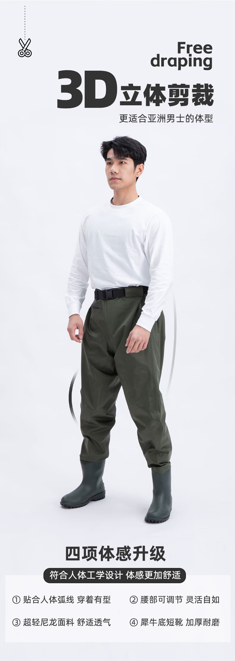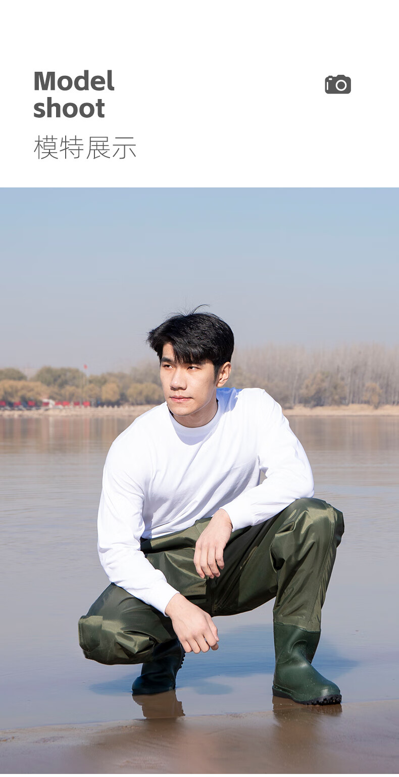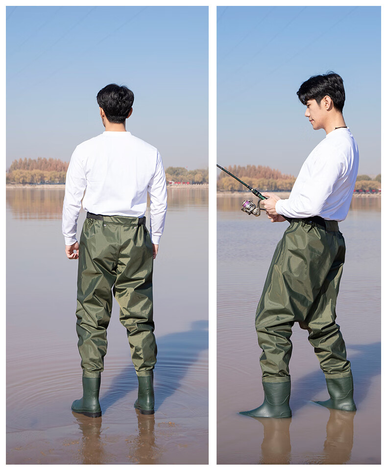 Wading pants, waist-length one-piece waterproof thickened clothes, rain pants, water shoes, rain boots, fishing pants, wading fishing pants for men, 3D khaki nylon waist-length style 39