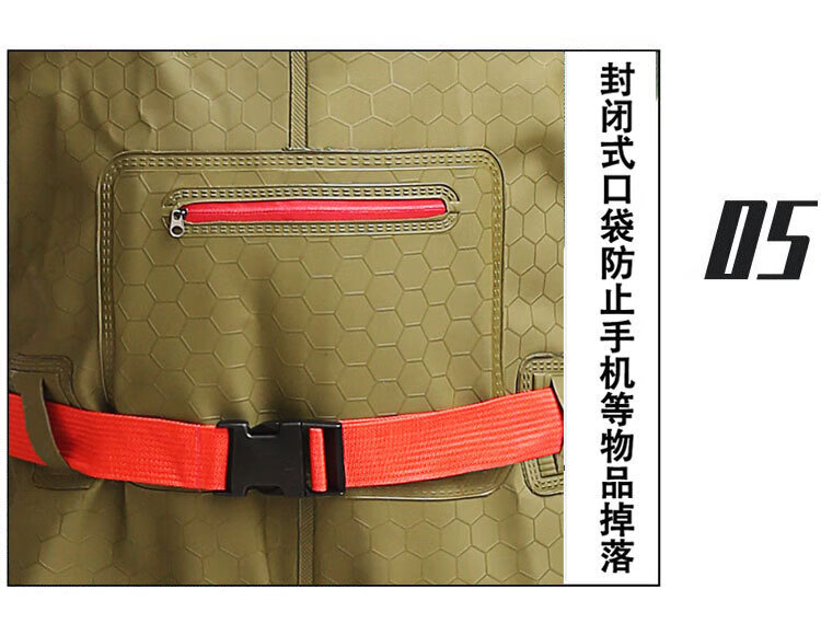 Wading pants, half body waterproof thickened jumpsuit, rain pants, water shoes, rain boots, full body fishing pants, wading fishing pants for men, front and rear heightening + double knee pads, khaki thickened 43
