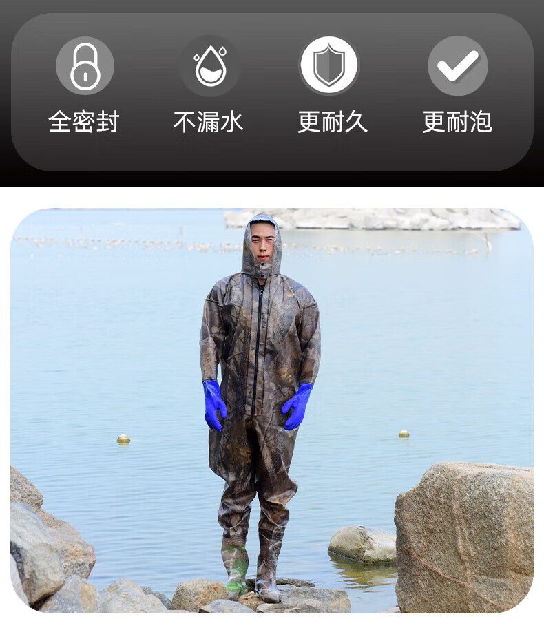 Full-body waders, waterproof clothing, rain pants, thickened and wear-resistant, men's one-piece half-body fishing pants, fishing leather fork pants, whole body black thickened version (cuffs) 46