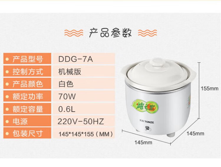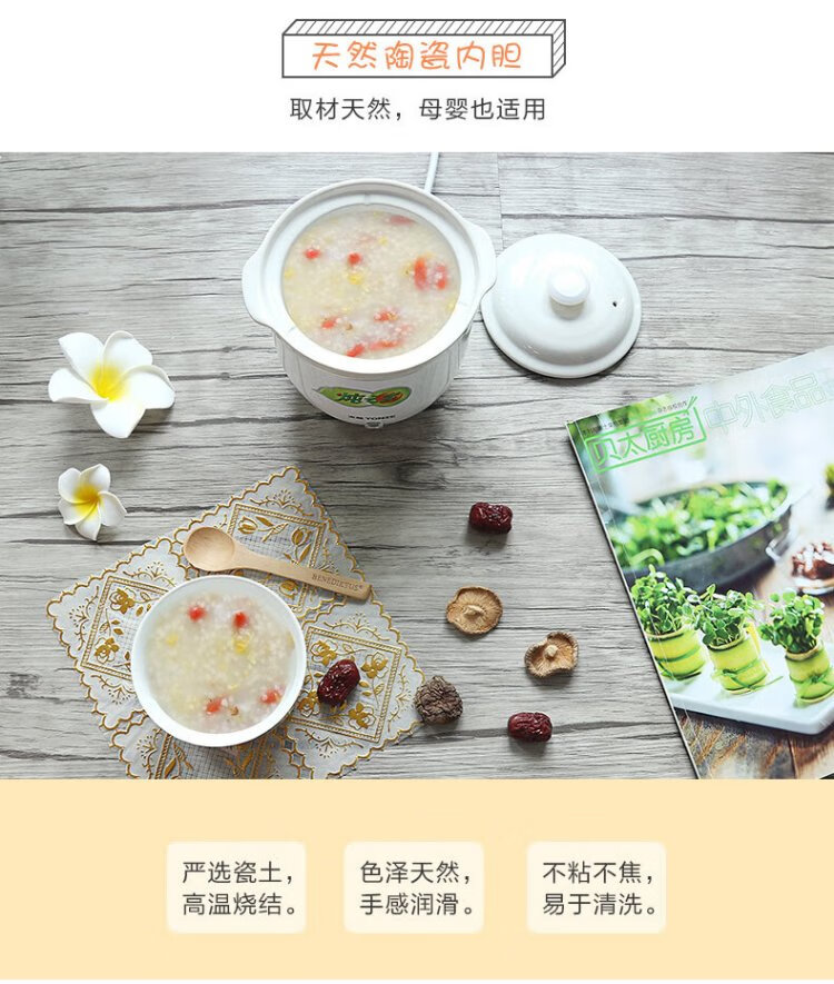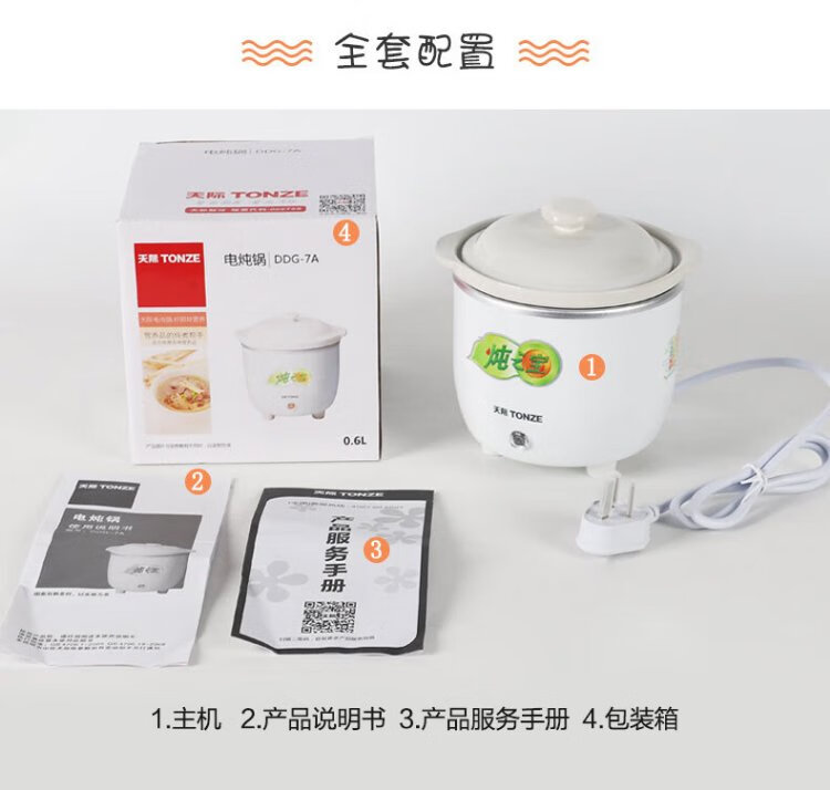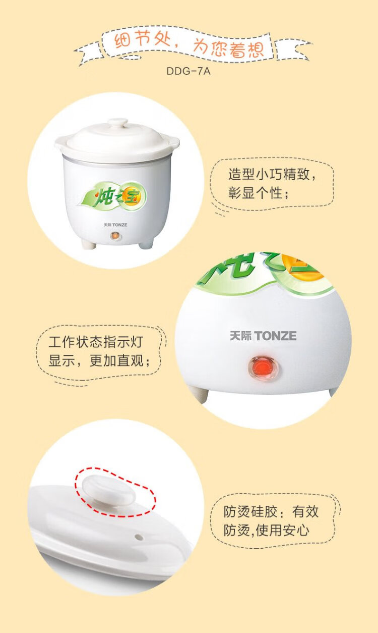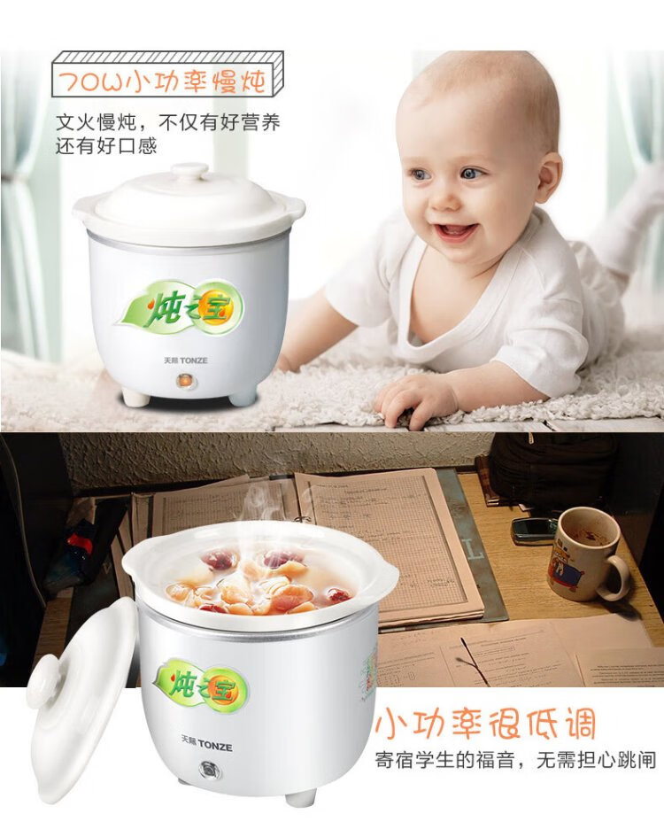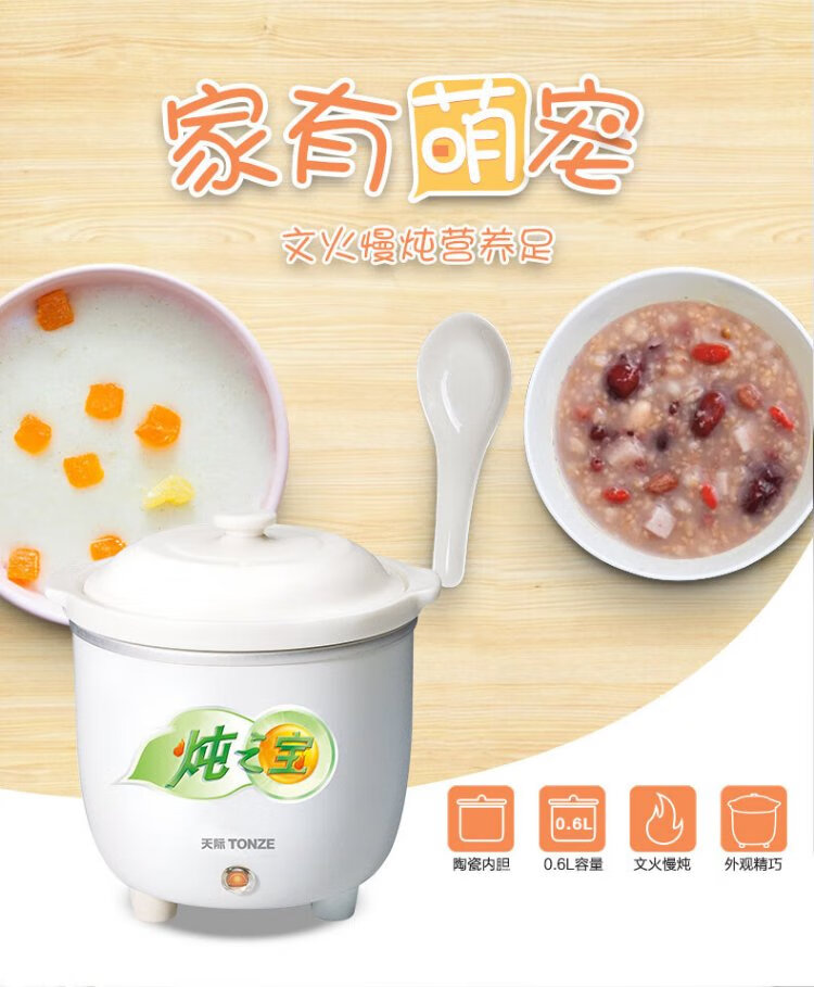 Tianji mini electric stew pot 0.6L capacity stew pot for single noble student dormitory mini electric stew pot straight stew pot white 0.6L | mini pot