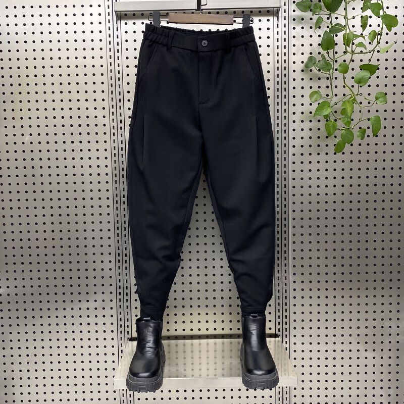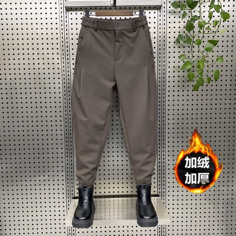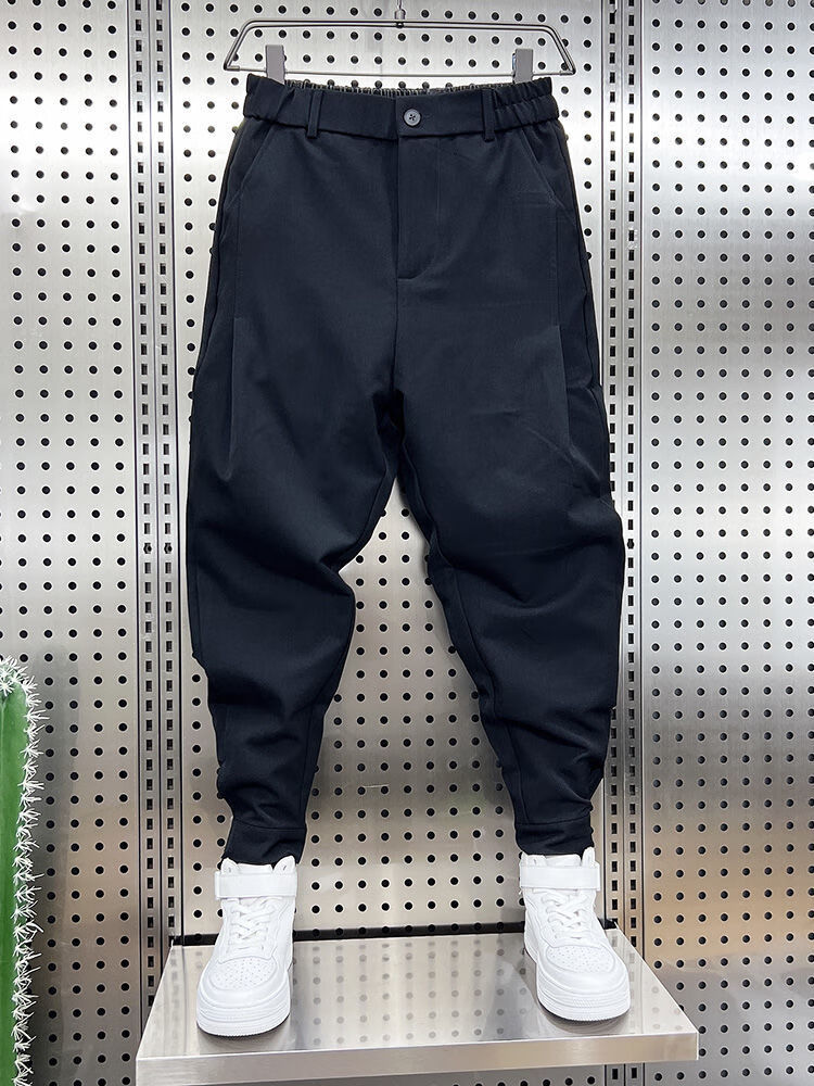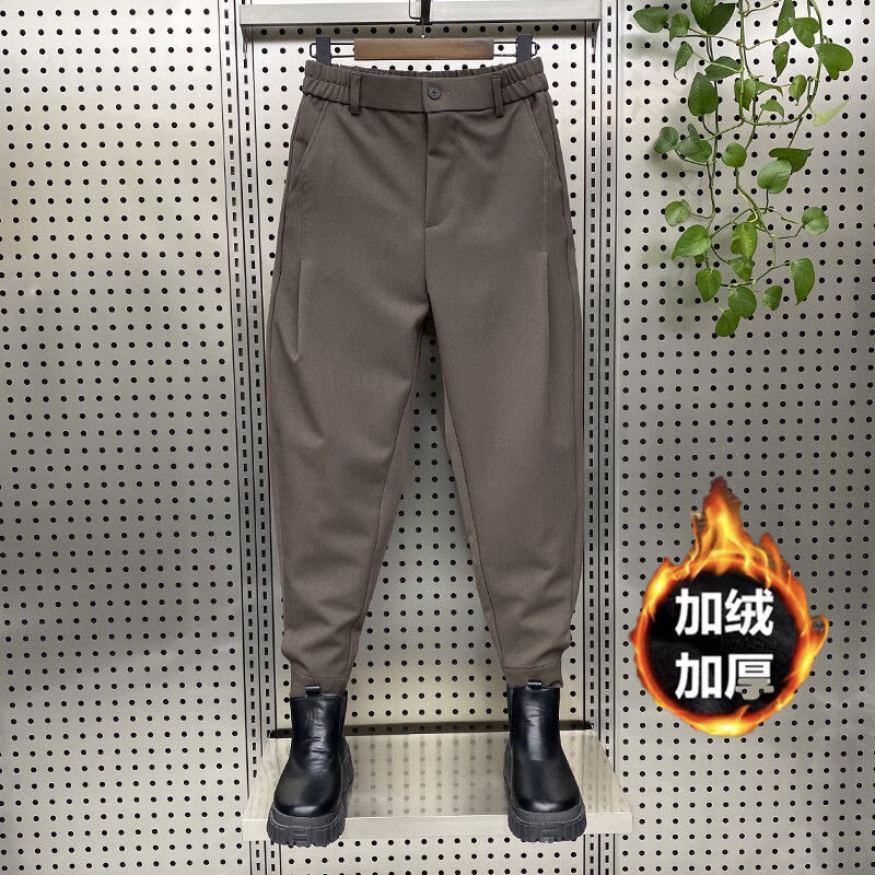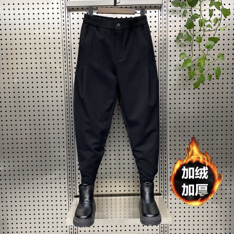 JEEP SPIRIT autumn and winter new trousers men's thin velvet thickened trousers with Martin boots harem pants Velcro casual pants black plus velvet 34 165-175Jin Jin is equal to 0.5 kg