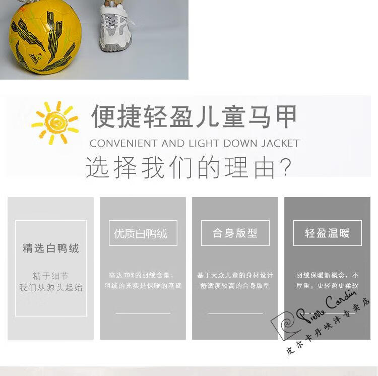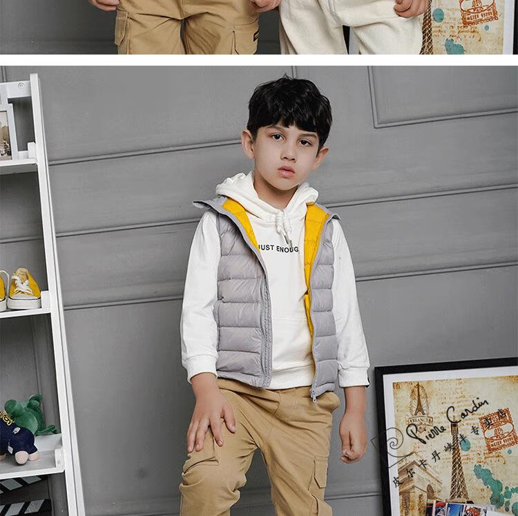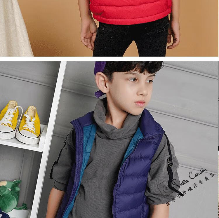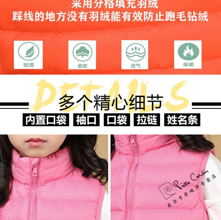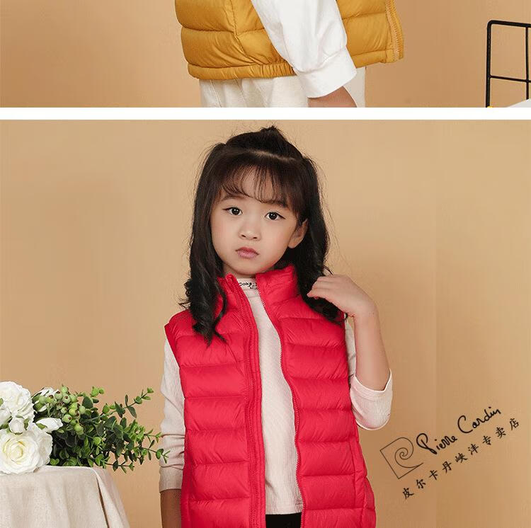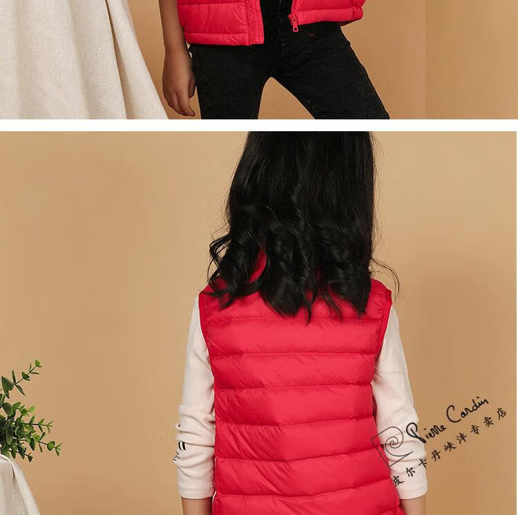 Pierre Cardin's new 90 white duck down vest children's down jacket lightweight vest for men and women baby autumn and winter vest medium and large children's jacket red 150cm