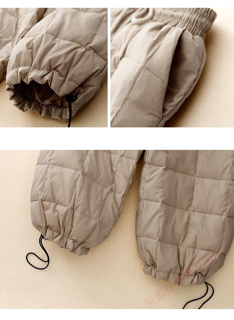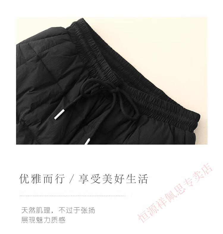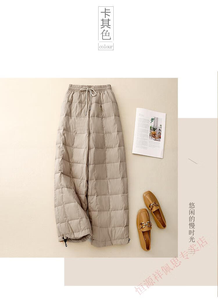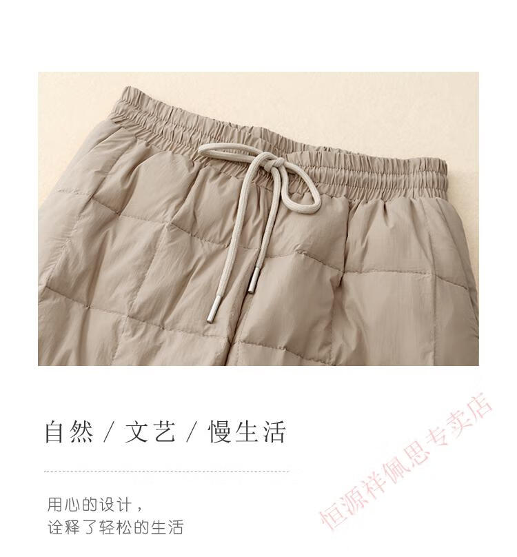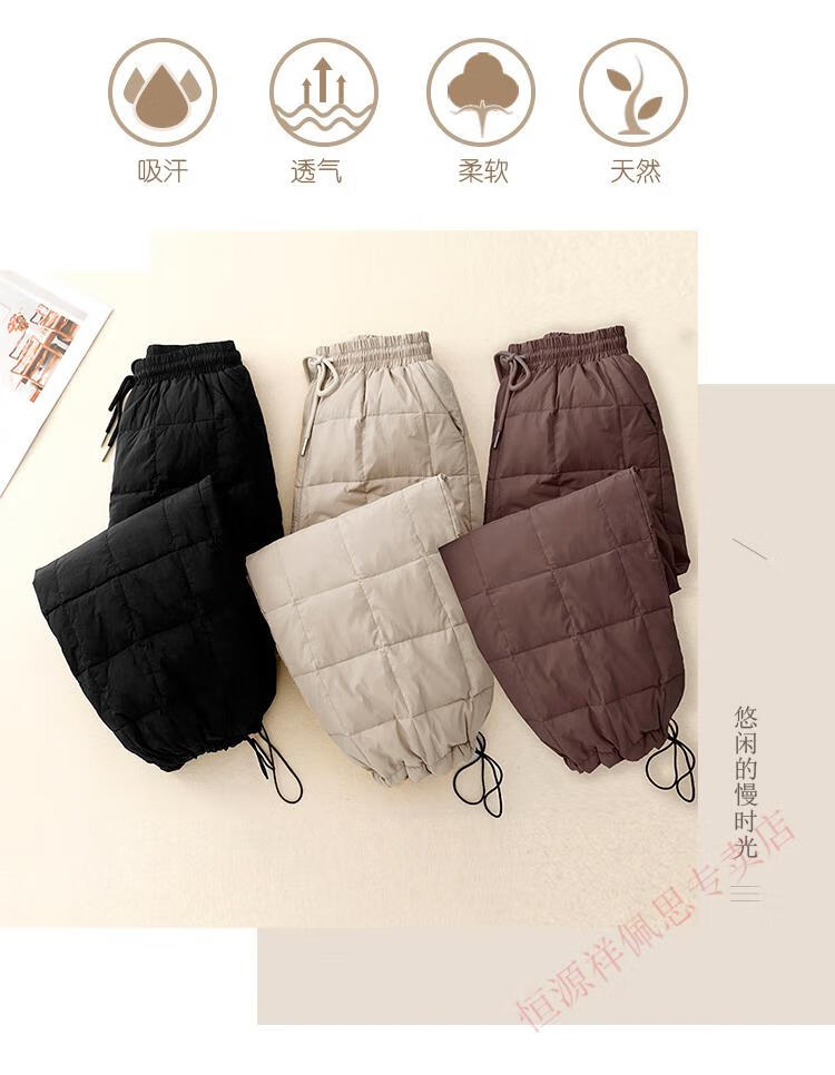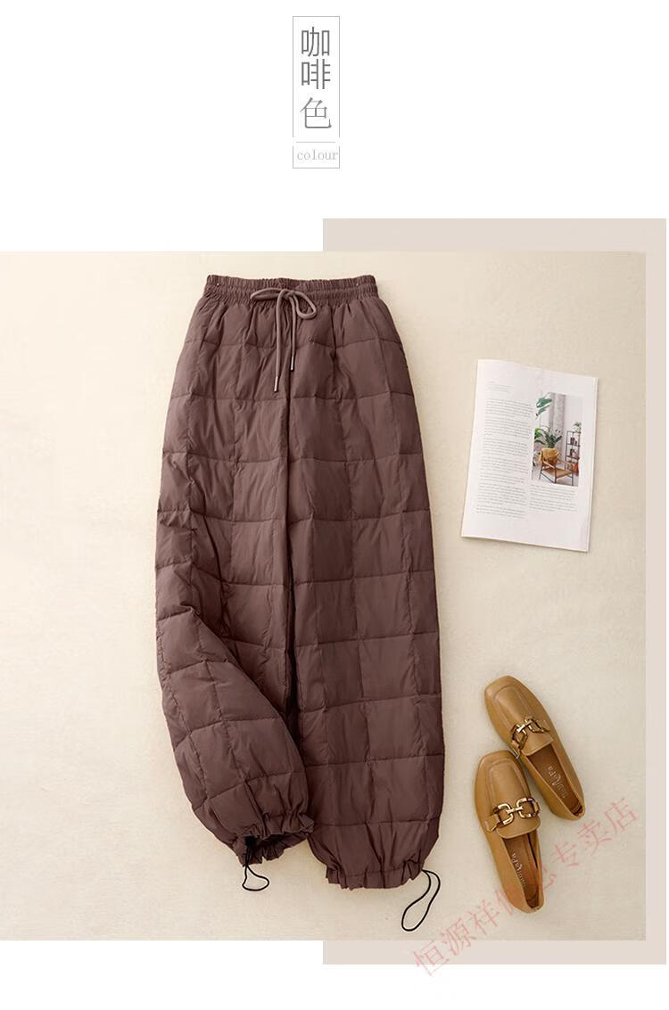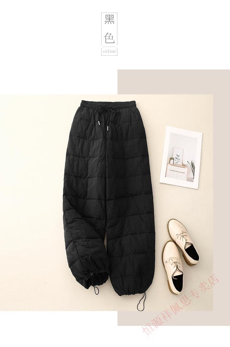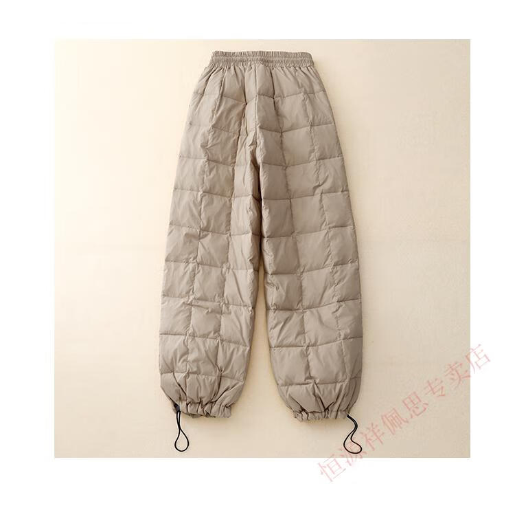 Hengyuanxiang Down Cotton Pants Women's Straight Drawstring External Style European Style Thickened Cotton Pants Fashionable Lightweight Lantern Wide Leg Pants Winter Off-White L 115-130Jin Jin is equal to 0.5 kg