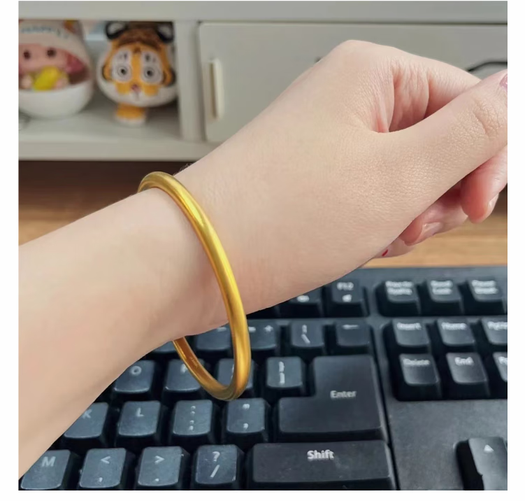 Fat Donglai's same style fake gold bracelet, ancient inheritance, golden yellow, simulated gold, silver-covered, solid sand gold for women, does not remove pigment, bracelet + bracelet (set discount), weight standard + biography