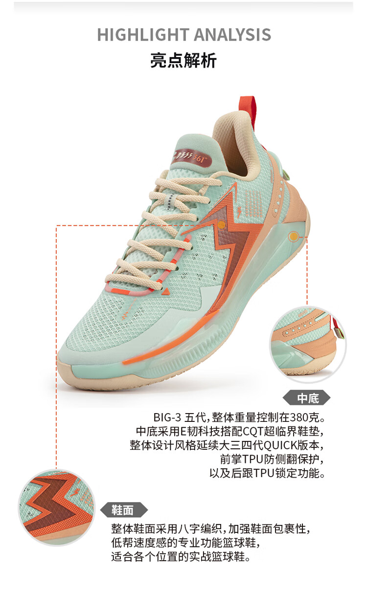 361 BIG3 5.0 Quick 361 Degree Basketball Shoes Men's Shoes Autumn New Fifth Generation Professional Sports Shoes Practical Sneakers Obsidian Black/Silver White 1106-2 Yin Yang 42.5