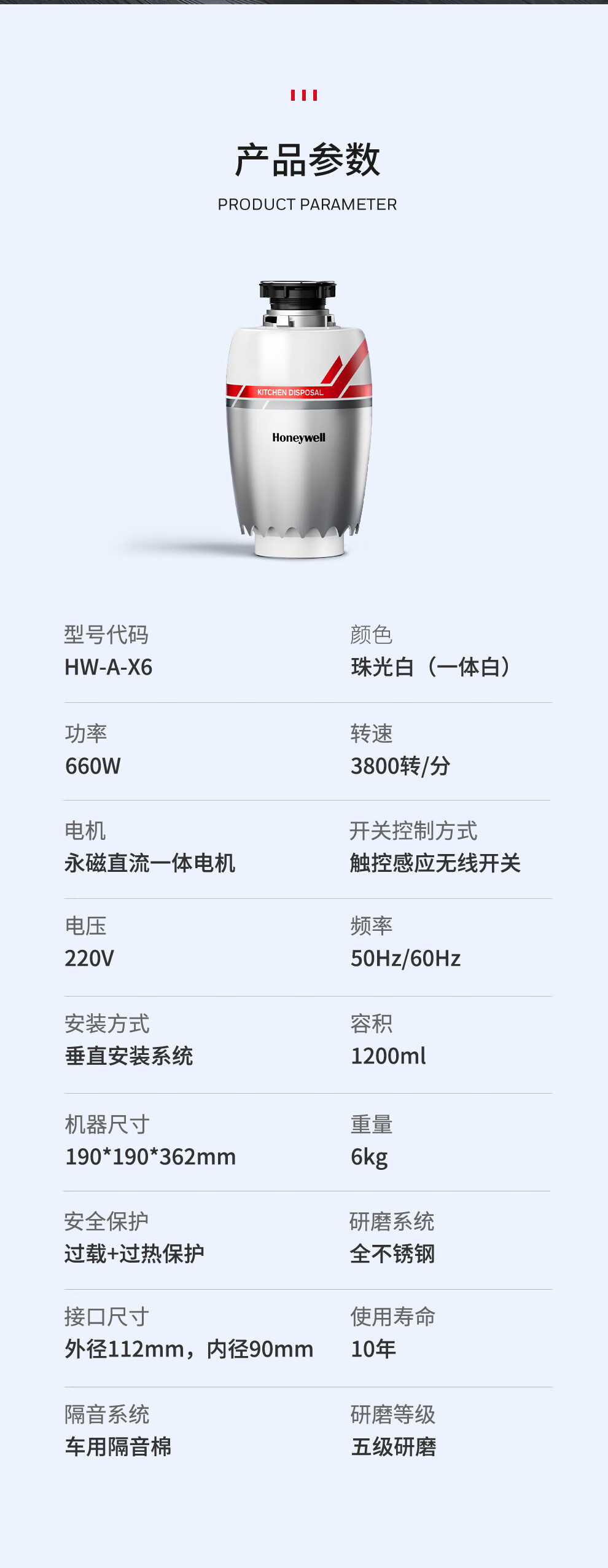 Honeywell household fully automatic kitchen food waste disposer automatic sink food waste grinder X6 upgraded model X upgraded model X6