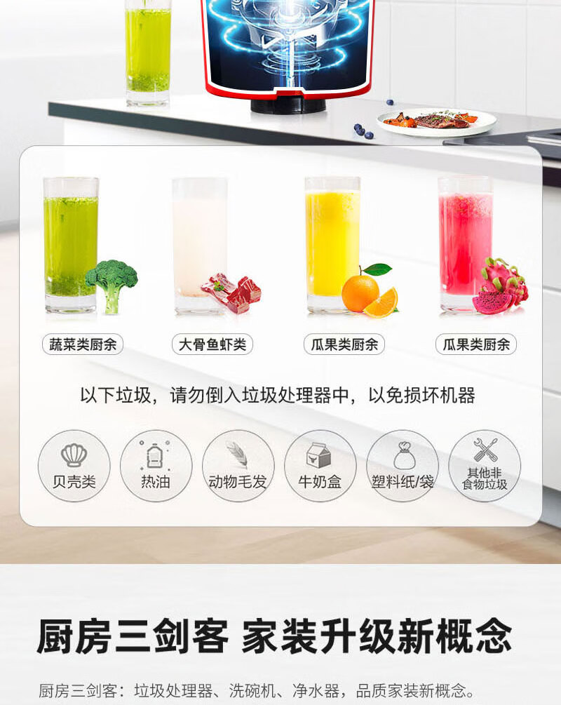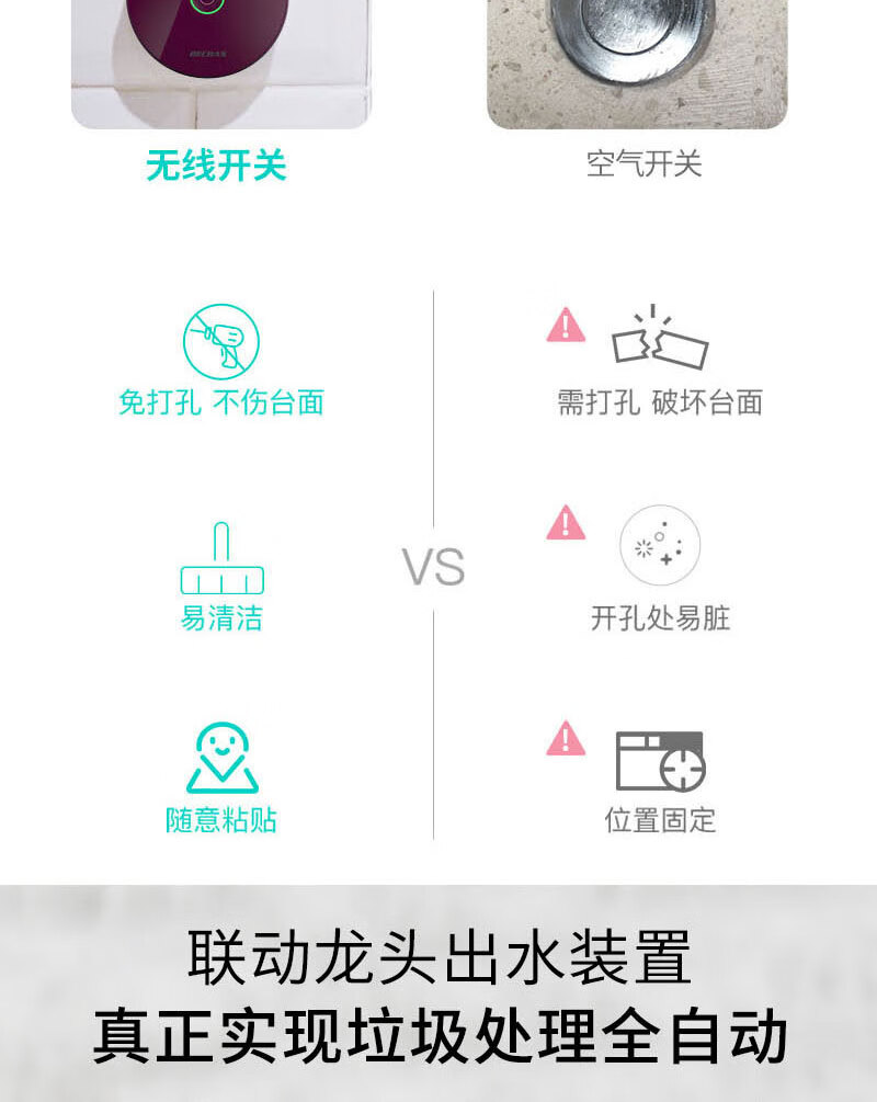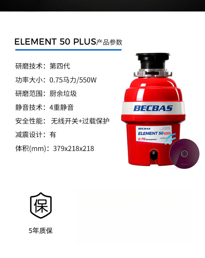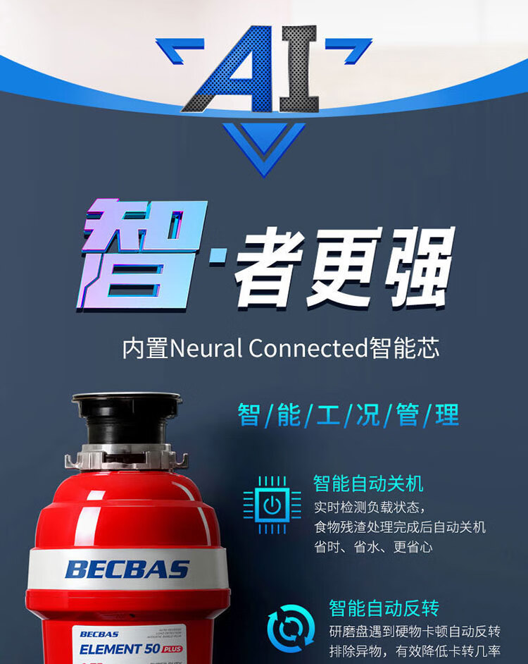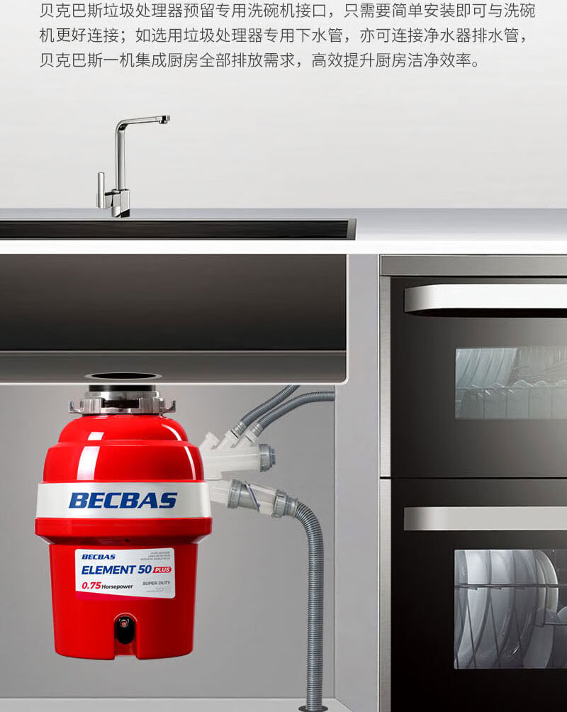 BECBAS E50PLUS home kitchen food waste disposer sink kitchen waste crusher automatic water inlet machine automatic water inlet