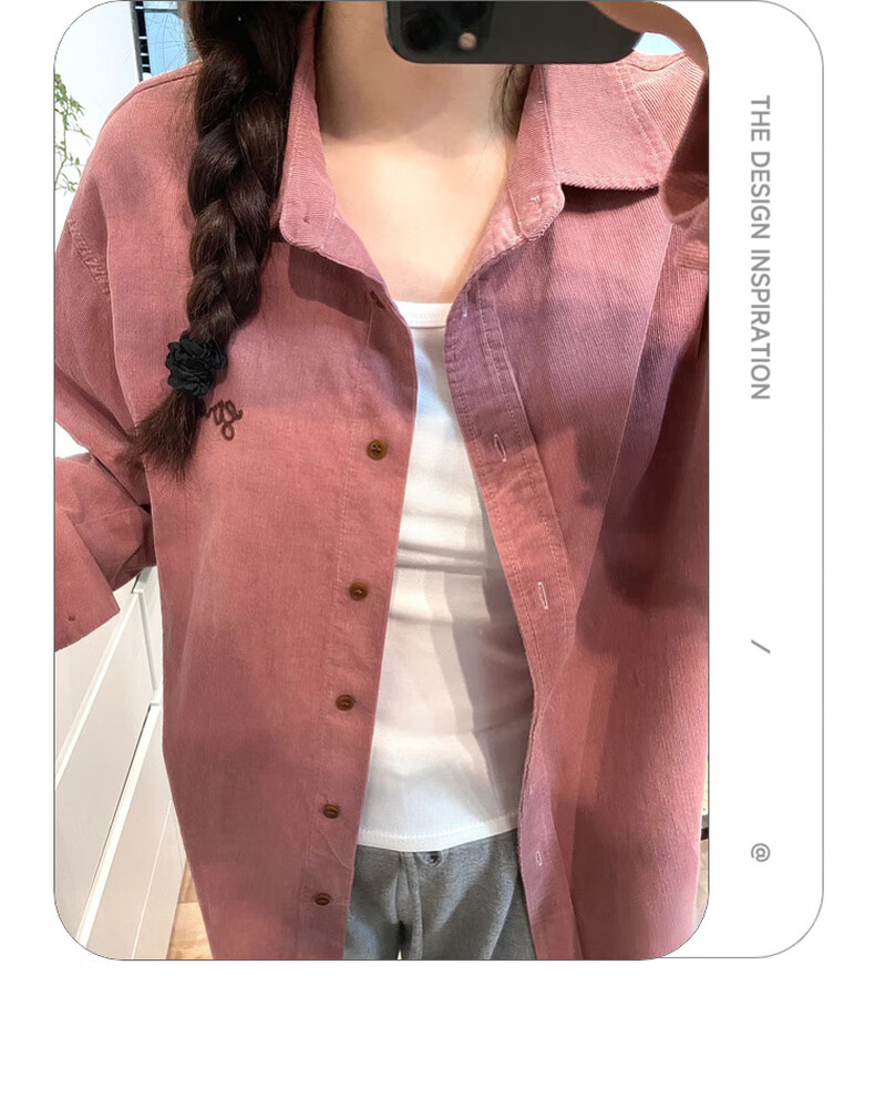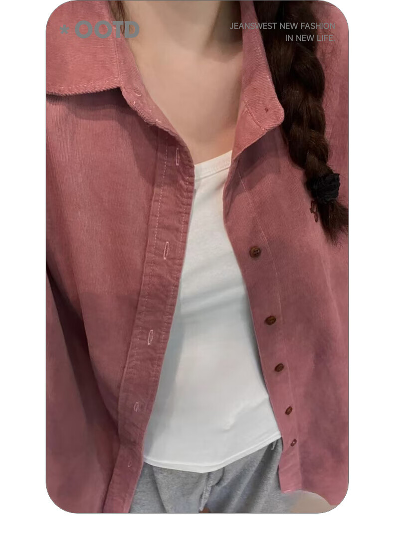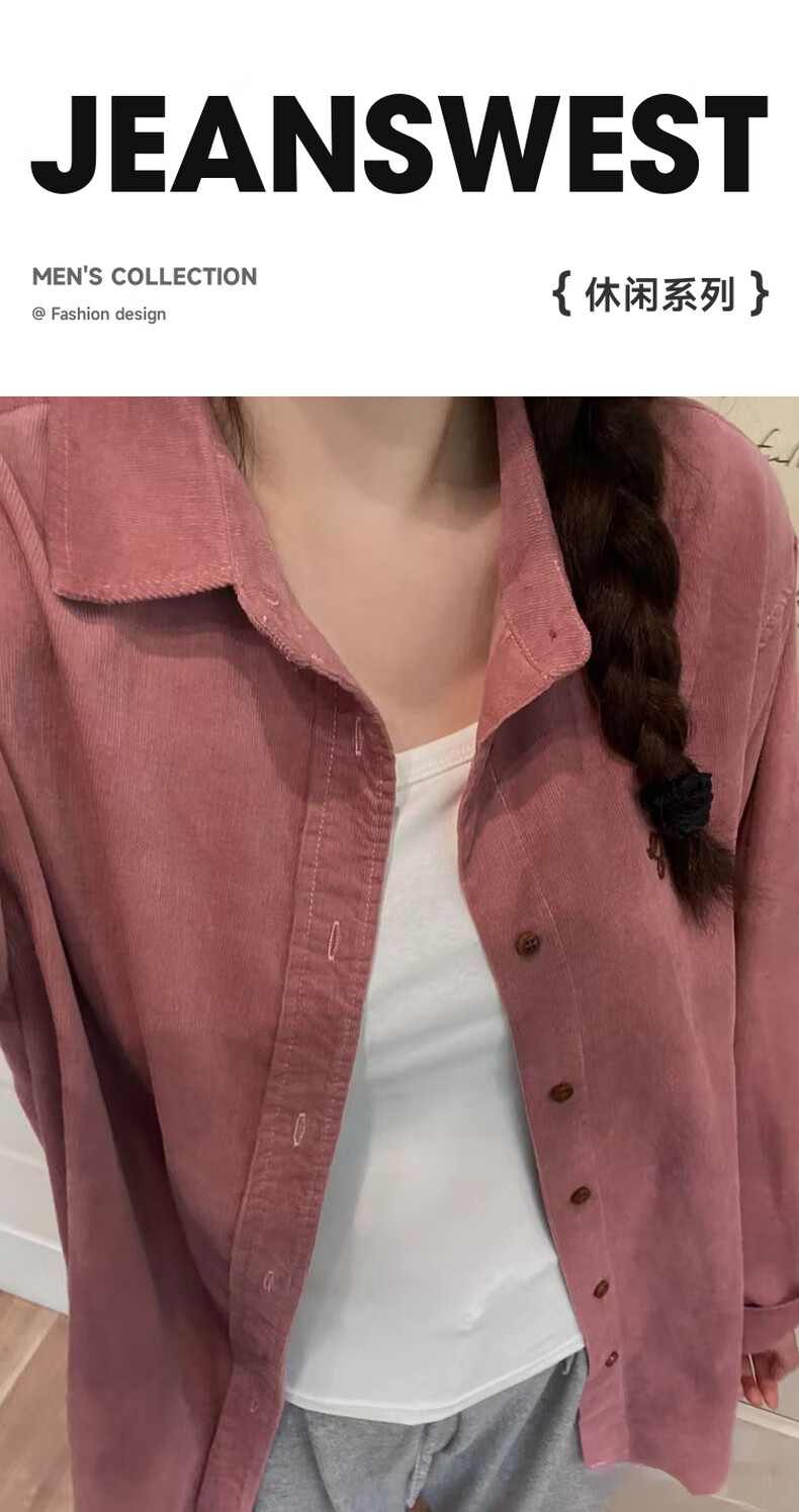 Jeanswest women's solid color shirt 2025 spring new top classic lapel trendy girl's shirt KF pink 8340 160/84A/M