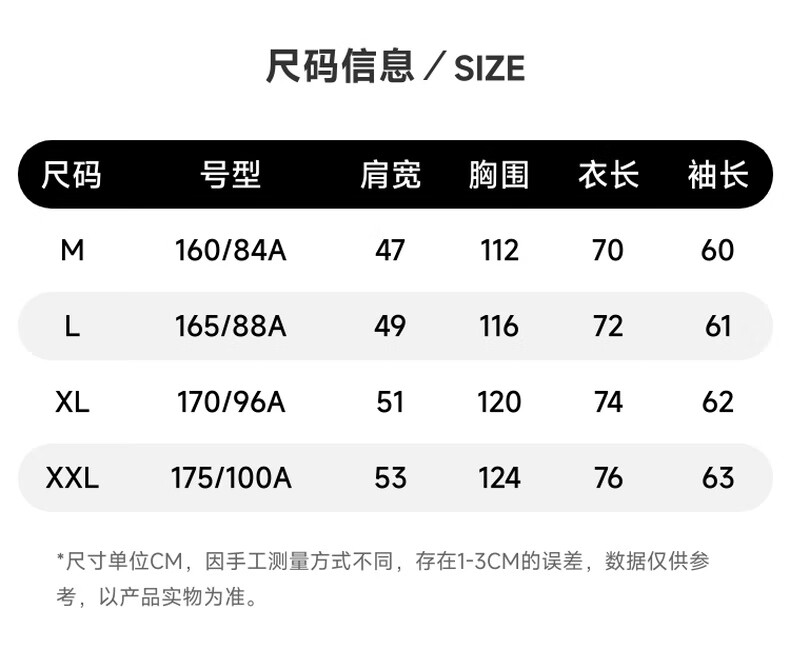 China (cm) 160-165/84-86 165-170 / 88-90 167-172 / 92-96 168-173 / 98-102 170-176 / 106-110
