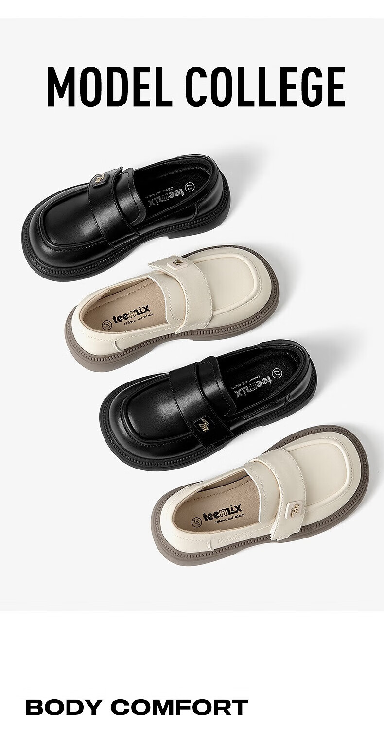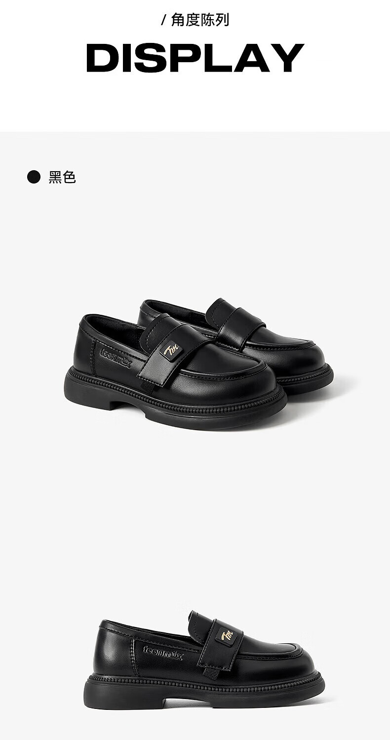Tianmeiyi Children's Shoes Girls Black Small Leather Shoes 2026 Spring and Autumn New Children's British Style College Style Loafers Black 29