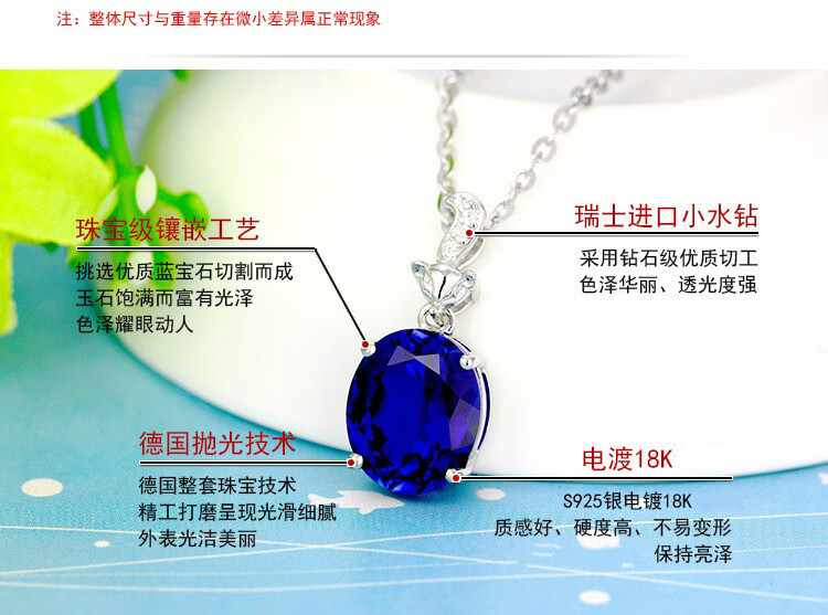 Tiansi sapphire pendant 925 silver plated 18K gold necklace colored gemstone crystal tanzanite color women's picture color pendant without chain