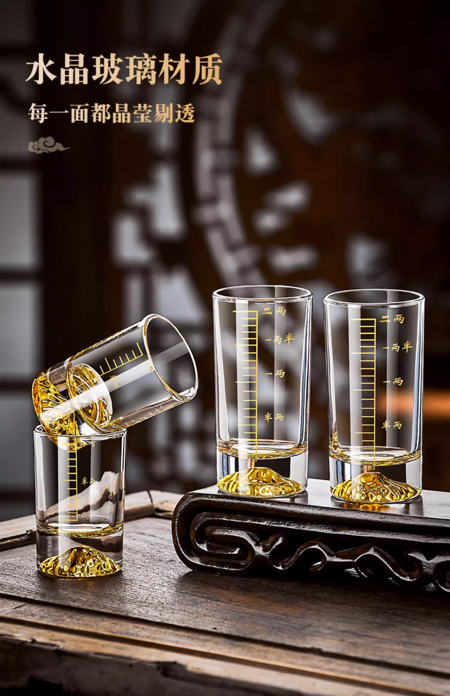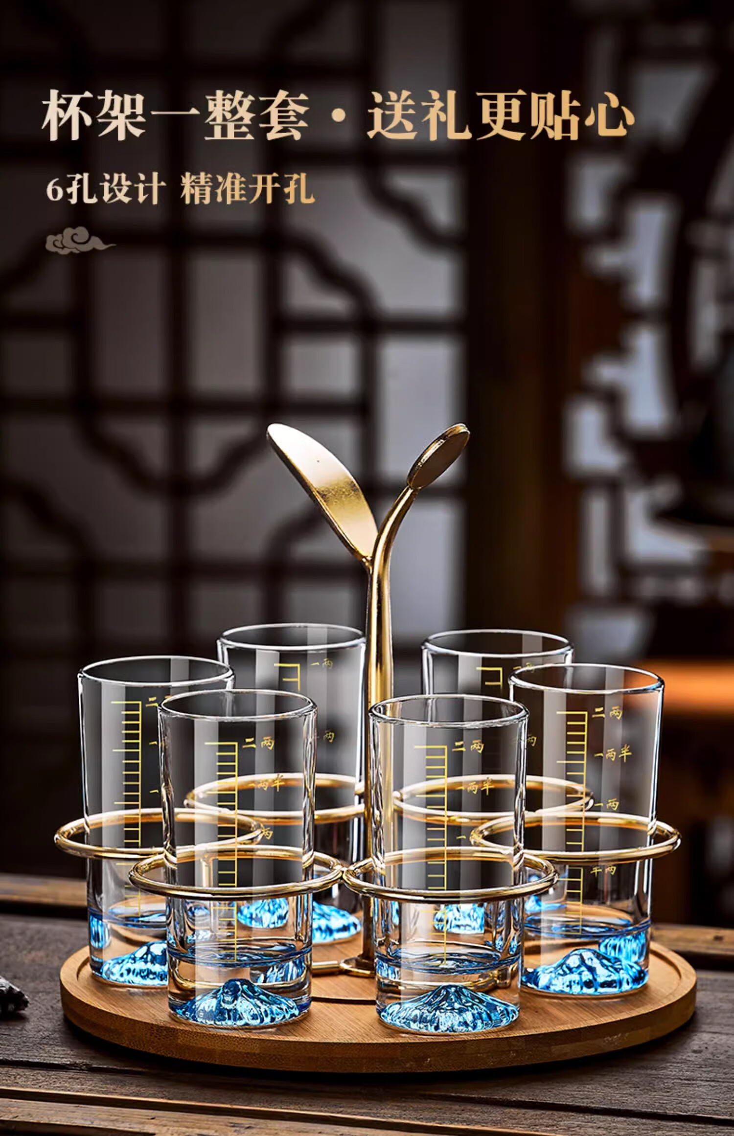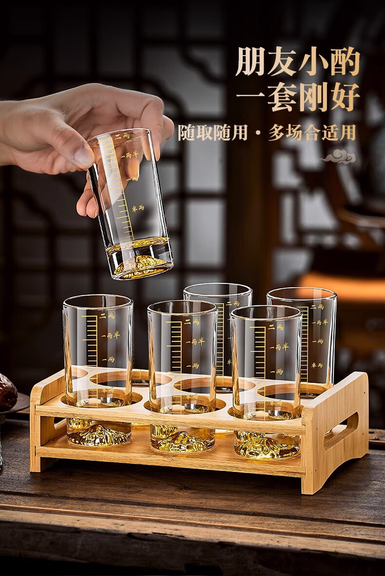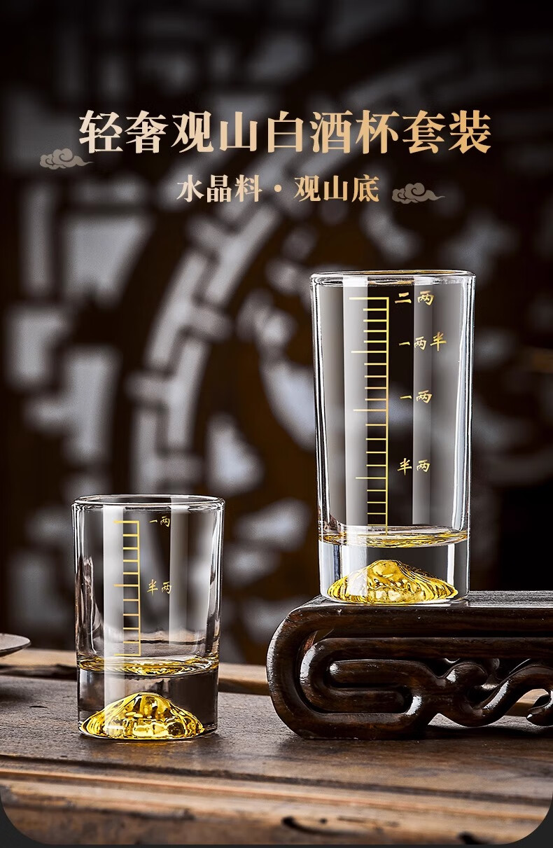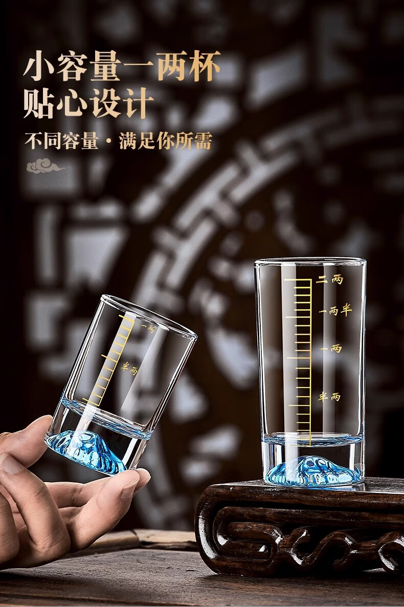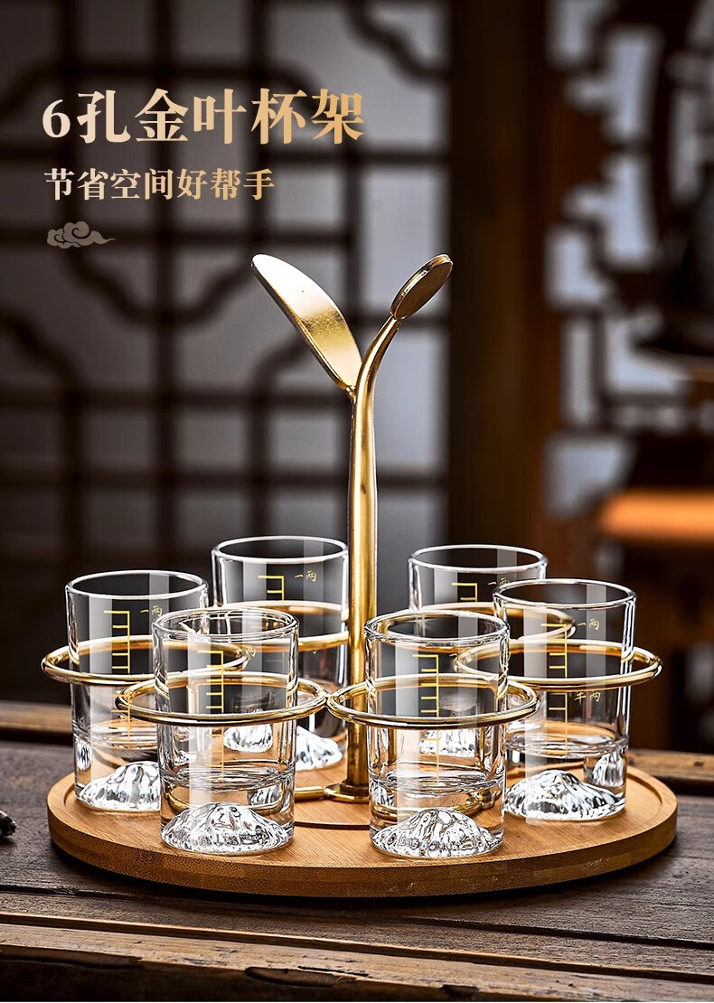 Green apple high-looking Jinshan light luxury white wine glass set crystal wine cup for home hospitality with scale Blue Mountain creative spirit glass Snow Mountain straight up one or two cups 6 pieces