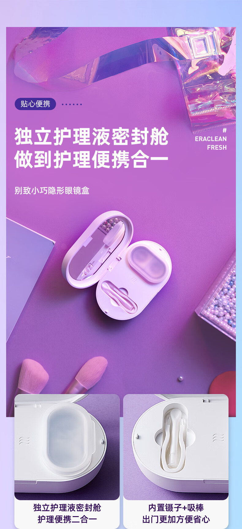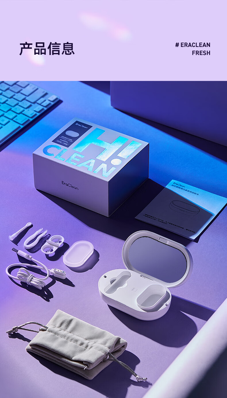 EraClean Ultrasonic Contact Lens Cleaner Contact Lens Box Ultrasonic Cleaner Color Contact Lens Box Cleaning Machine Portable