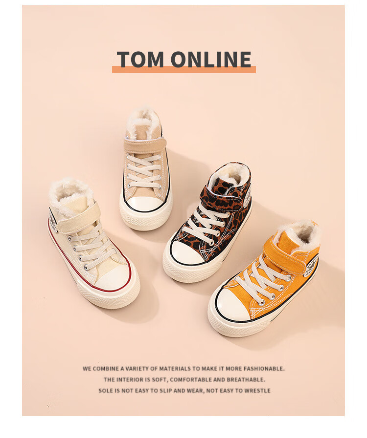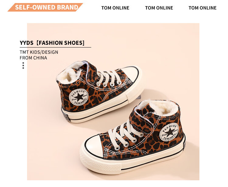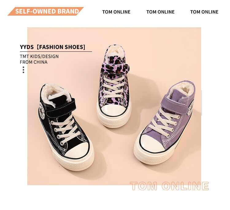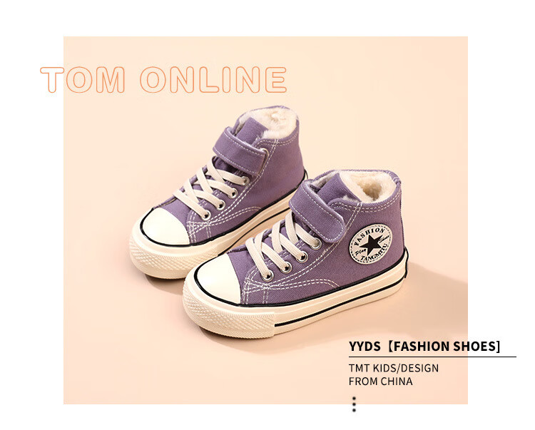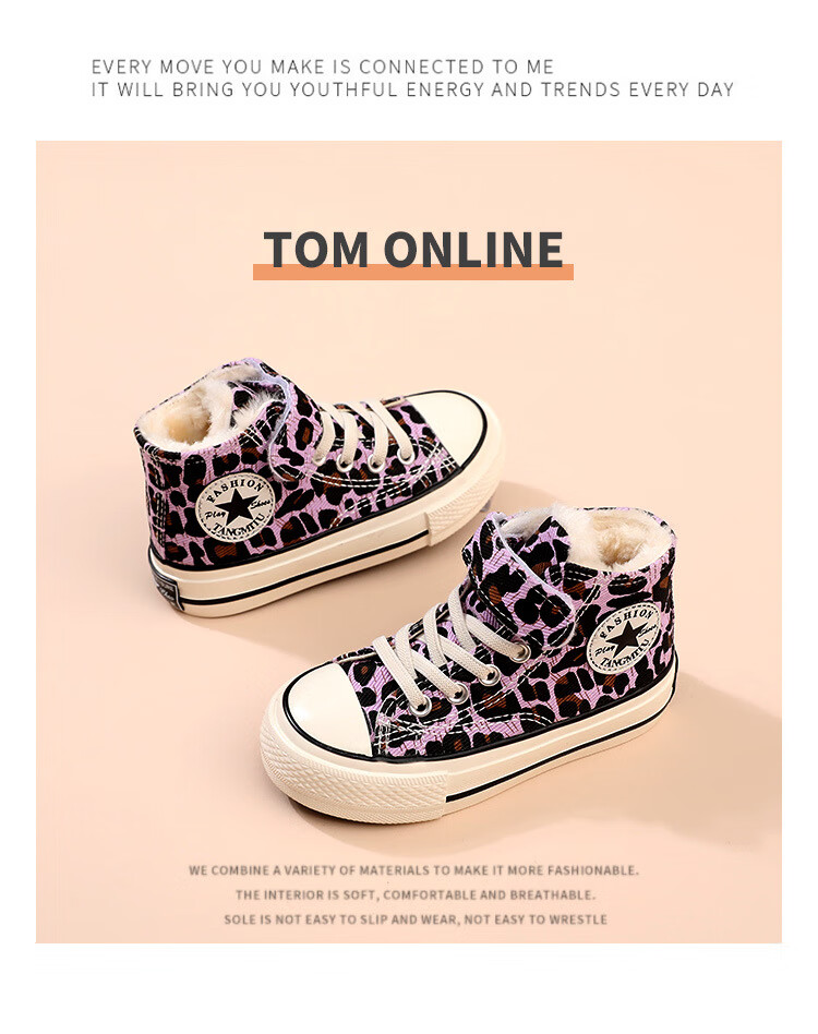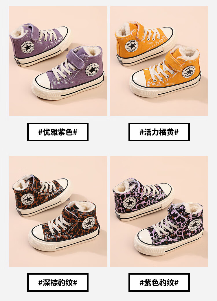 G.duck children's large cotton shoes plus velvet canvas shoes high-top leopard print girls' shoes boys 2024 autumn and winter new warm sneakers 1579 purple 27