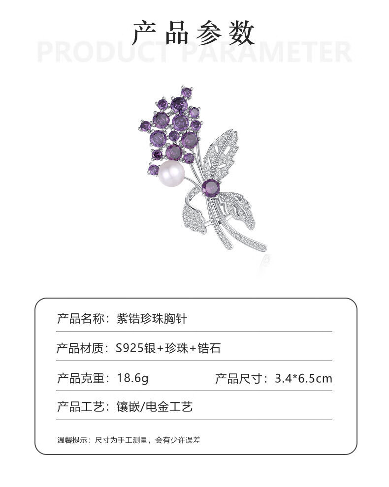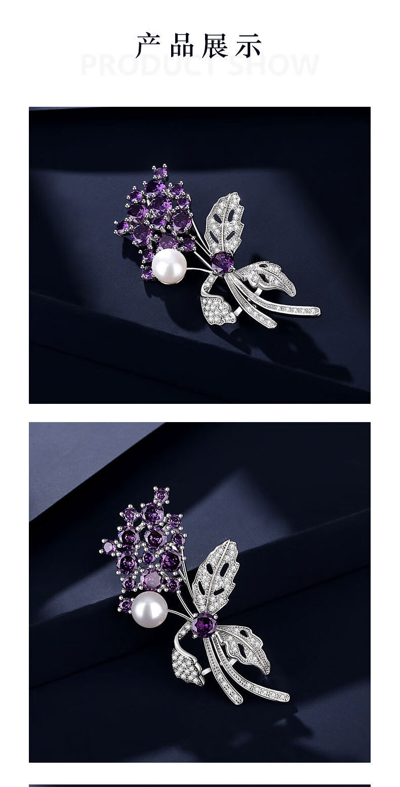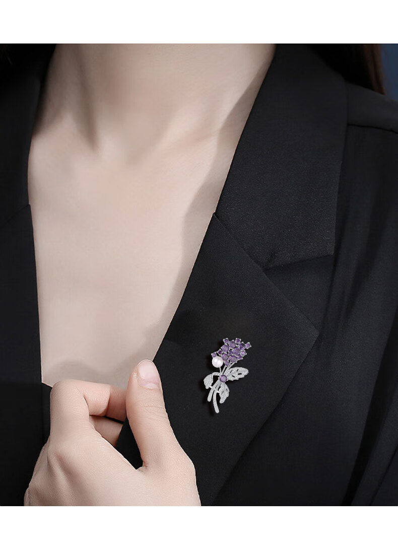 France Kou brooch women's freshwater pearl violet flower brooch brooch high-end light luxury birthday gift for girlfriend Violet SF air freight, engraved greeting card