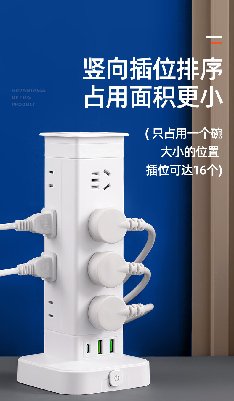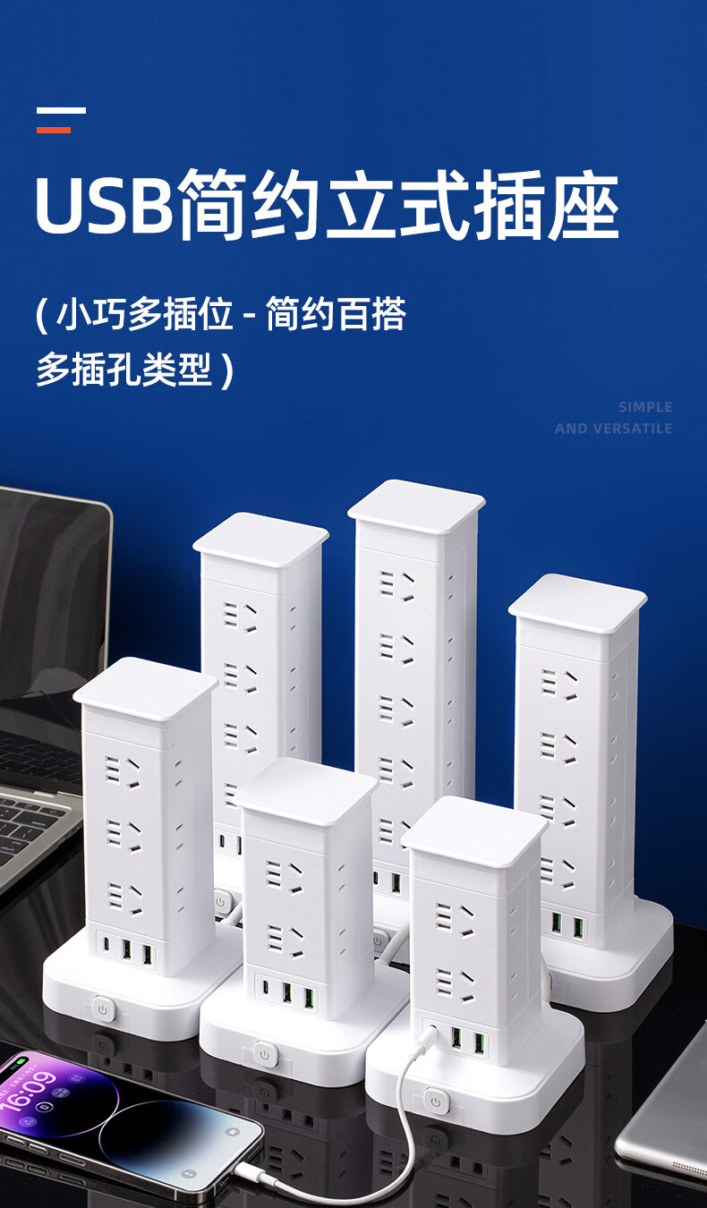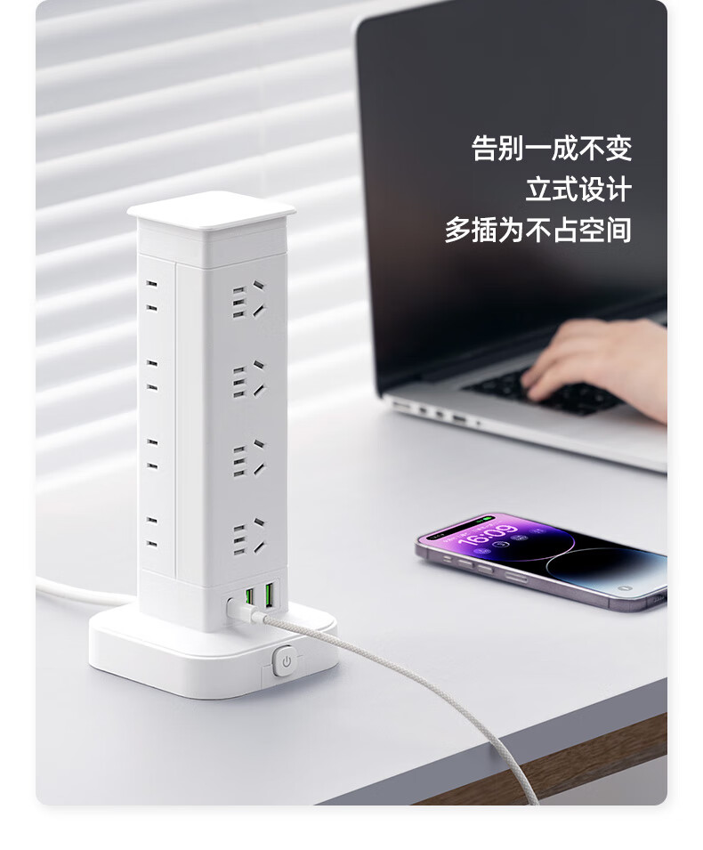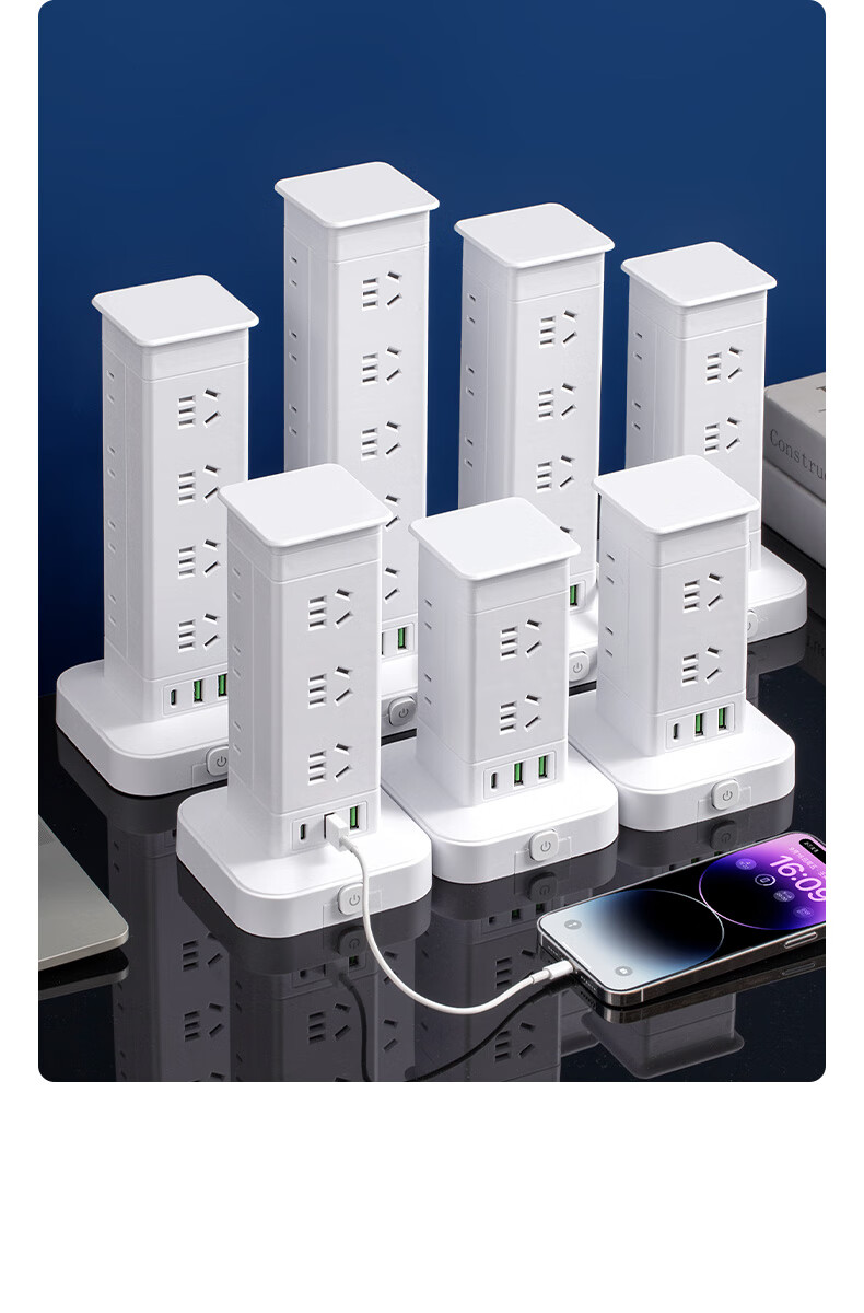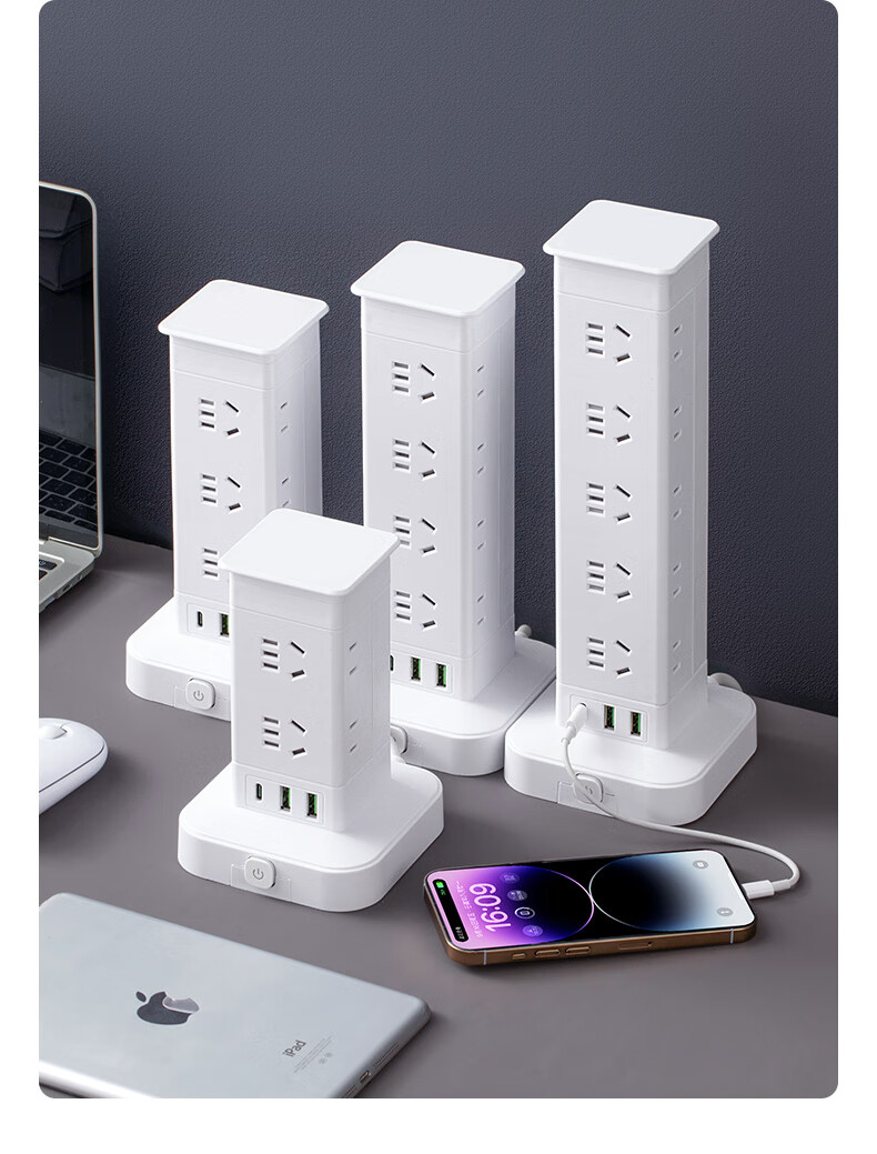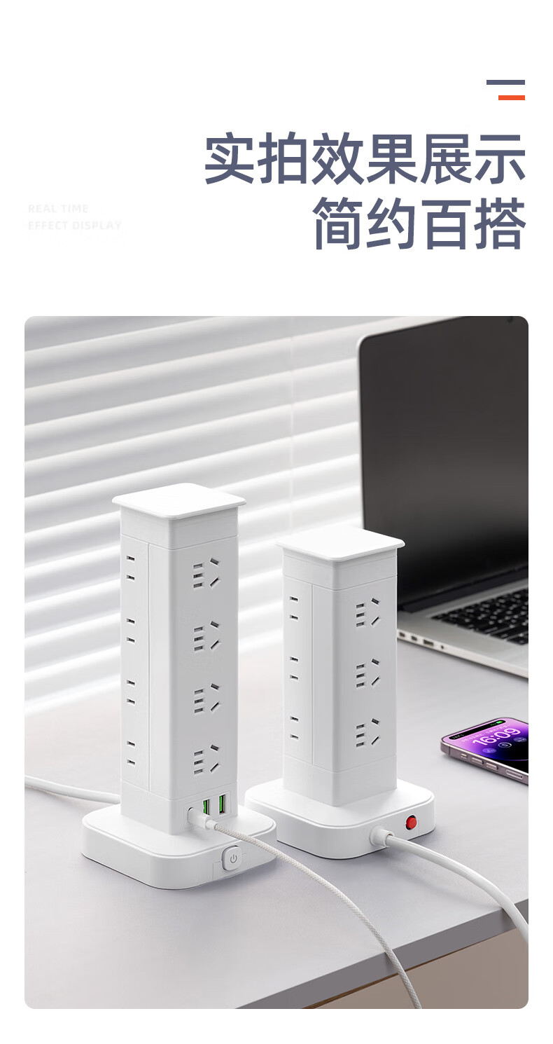 Vertical design saves space. Authentic vertical socket national standard 3C certification. Home desktop office multi-functional USB multi-hole plug strip wiring board power socket. Upgraded vertical 3-layer anti-overload + USB 12 sockets 1.8 meters.