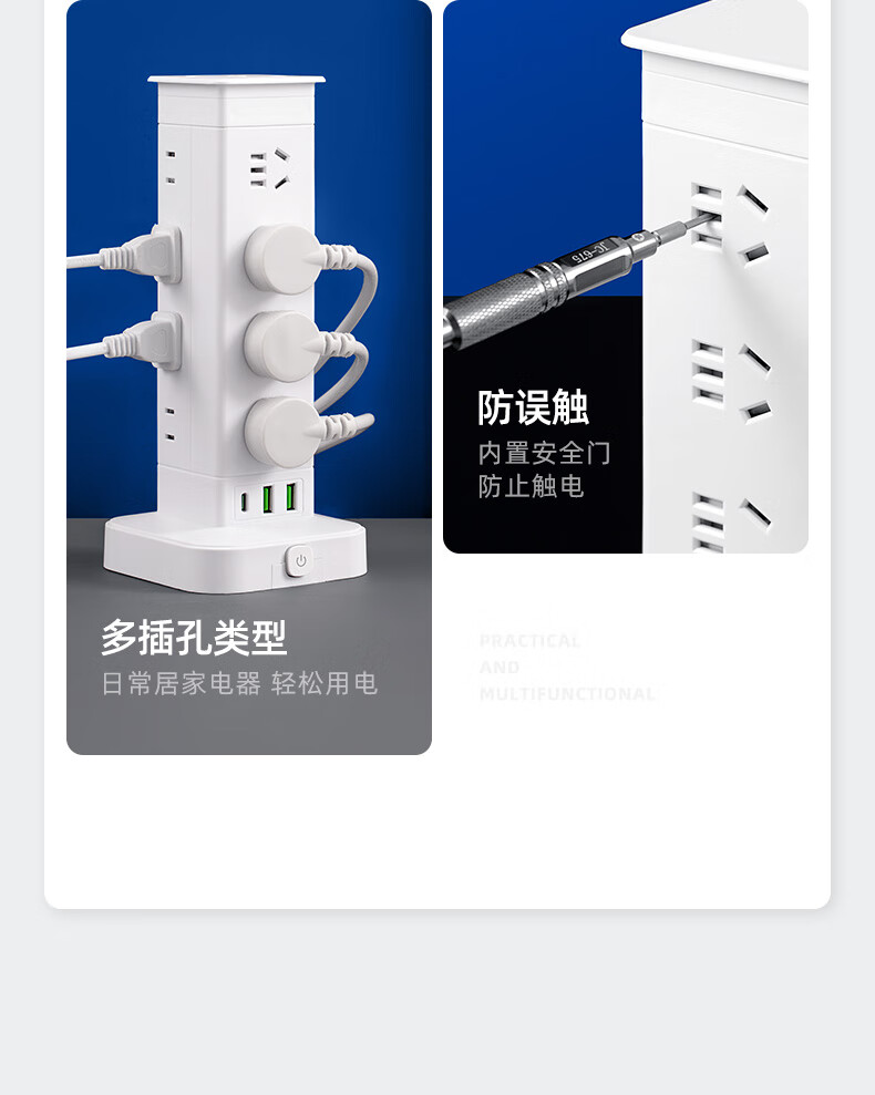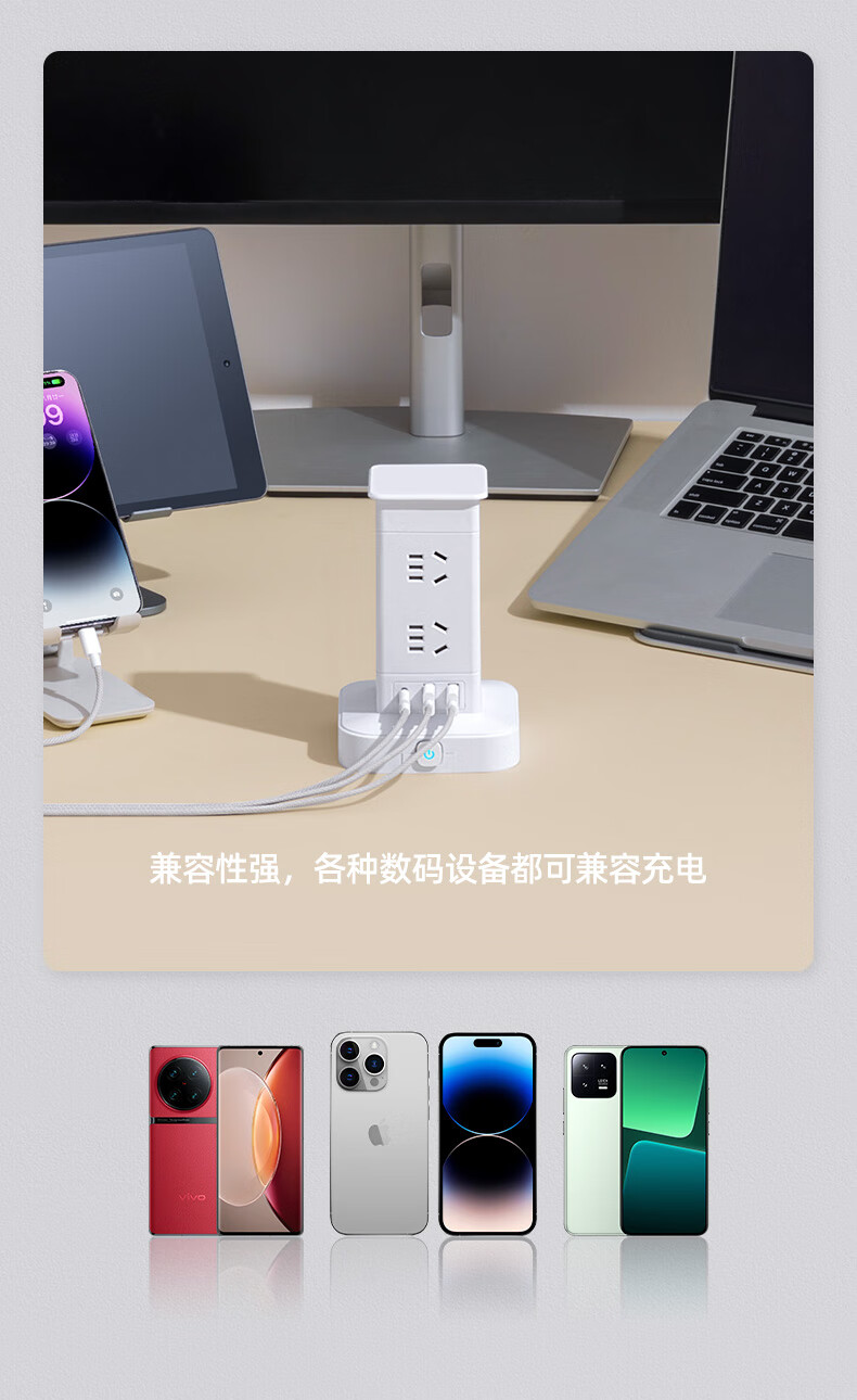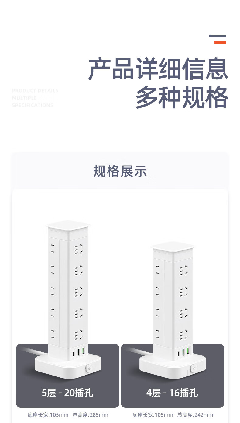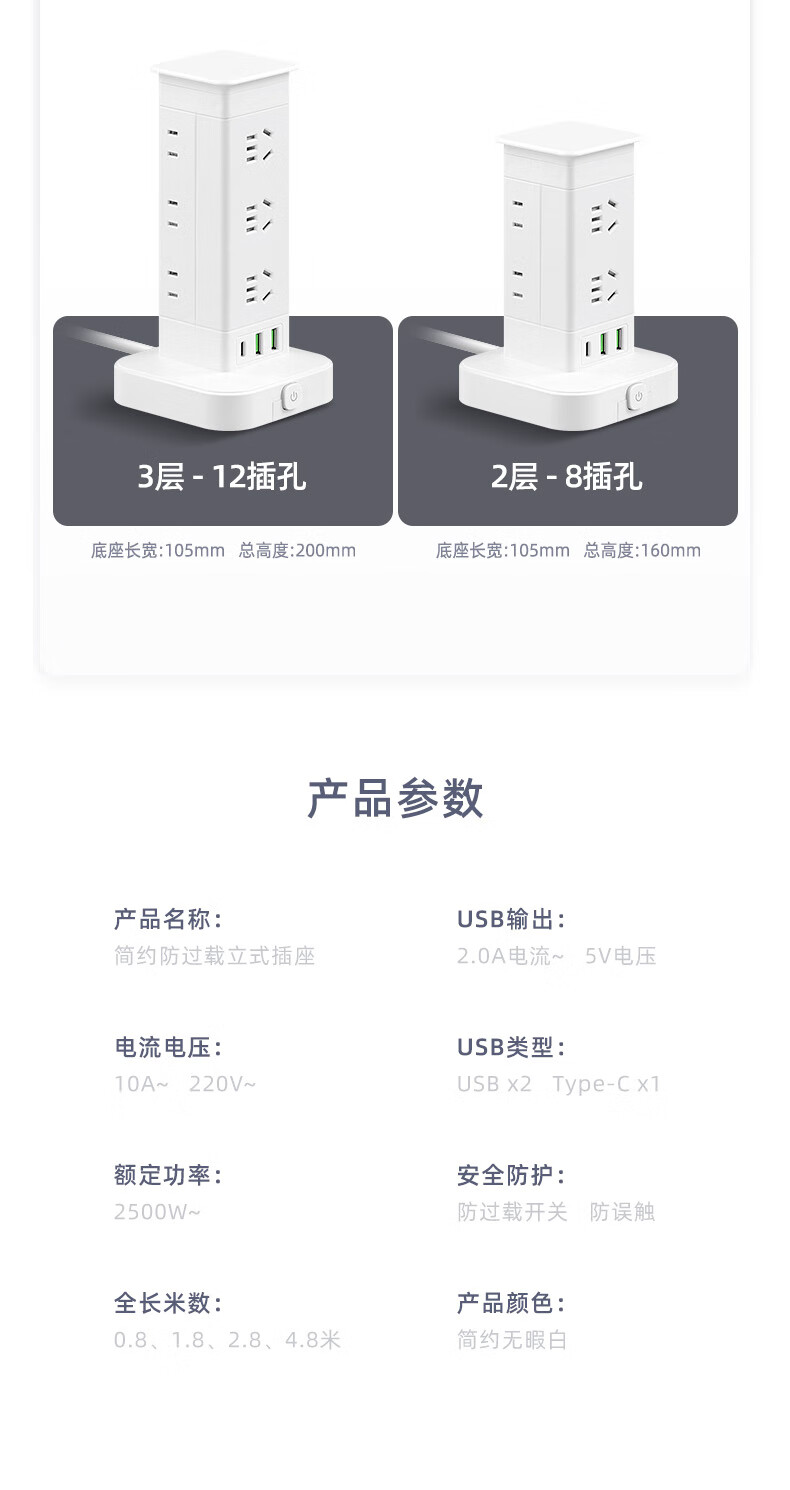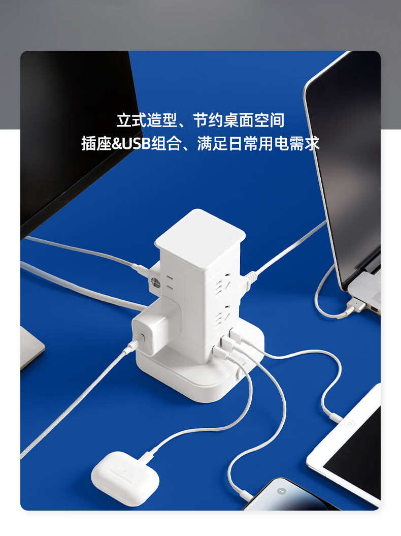 Vertical design saves space. Authentic vertical socket national standard 3C certification. Home desktop office multi-functional USB multi-hole plug strip wiring board power socket. Upgraded vertical 3-layer anti-overload + USB 12 sockets 1.8 meters.
