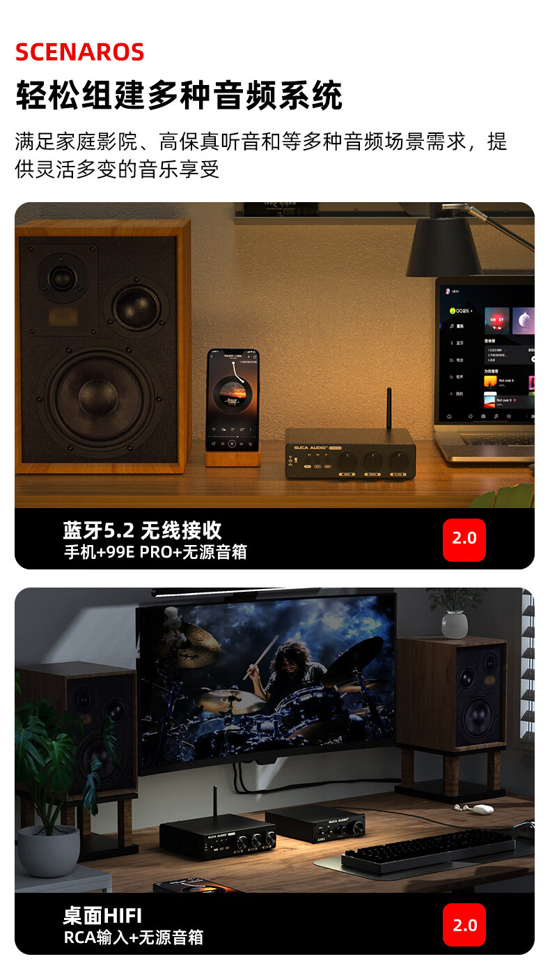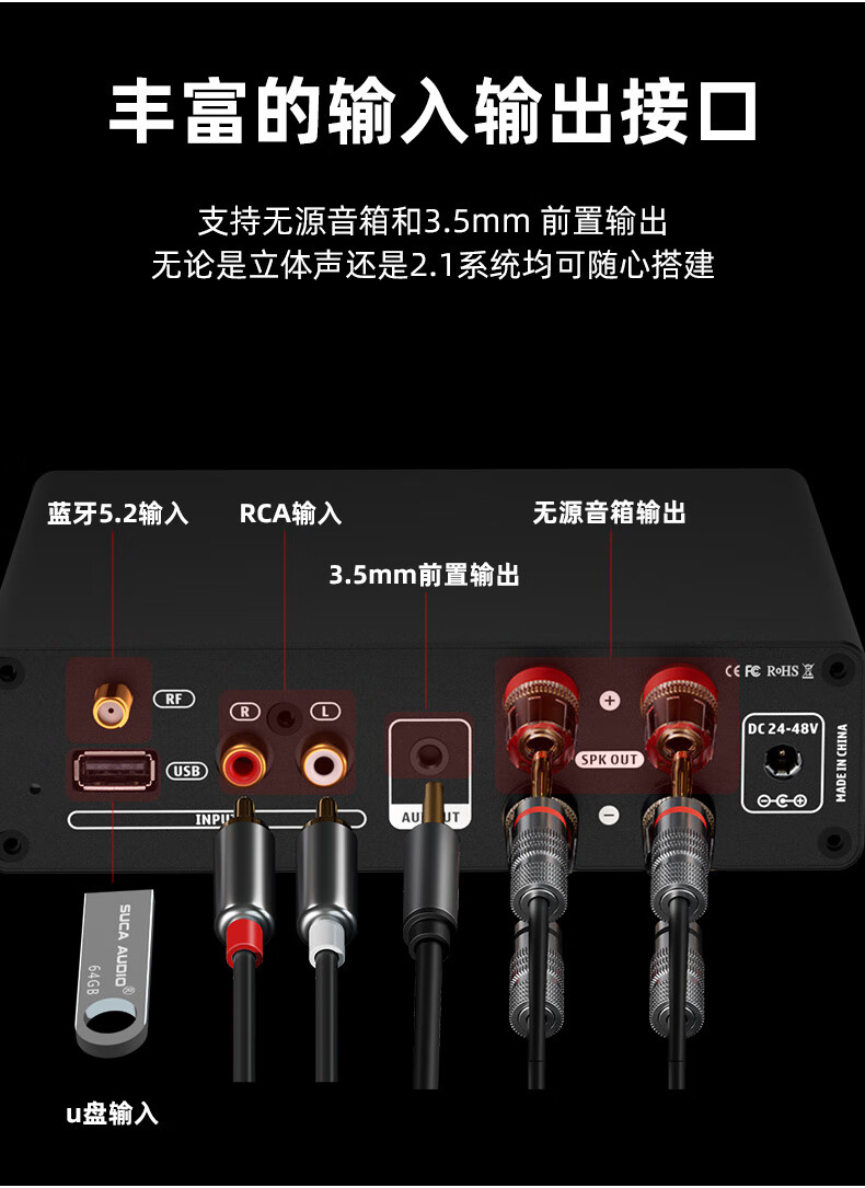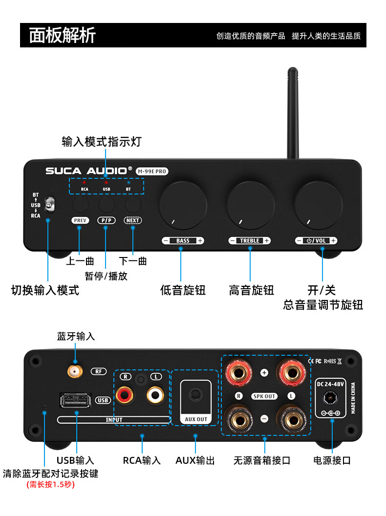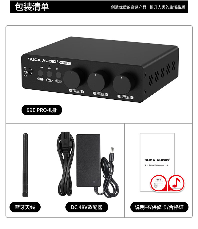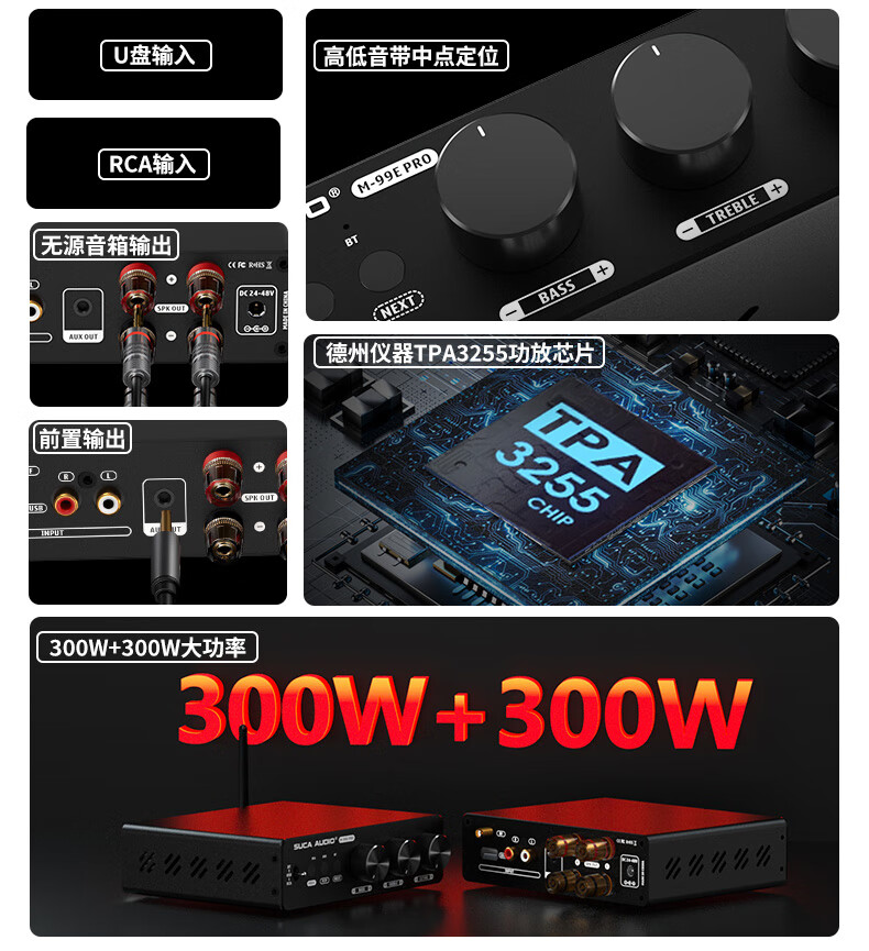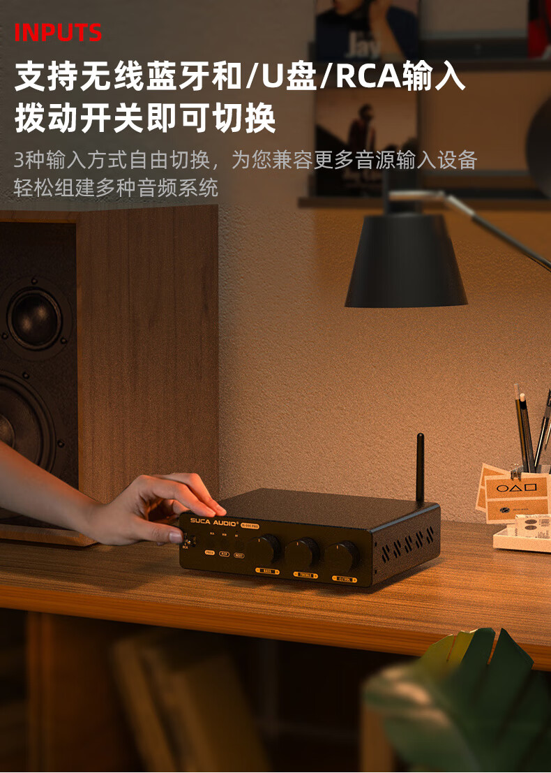 SUCA AUDIO M-99E PRO amplifier power Bluetooth USB digital home hifi fever-grade preamplifier small 2.1 subwoofer audio amplifier black free 48V5A power supply