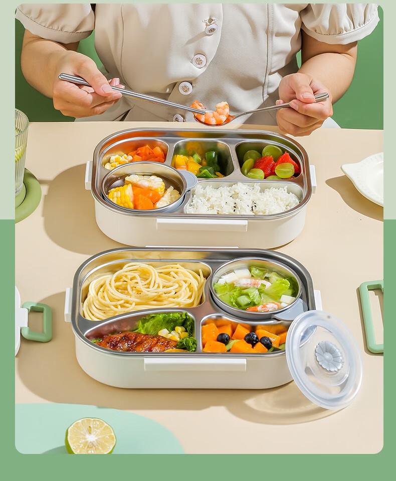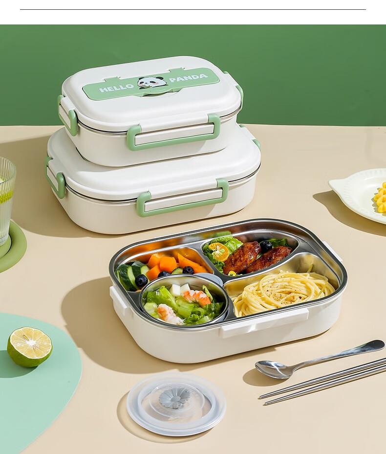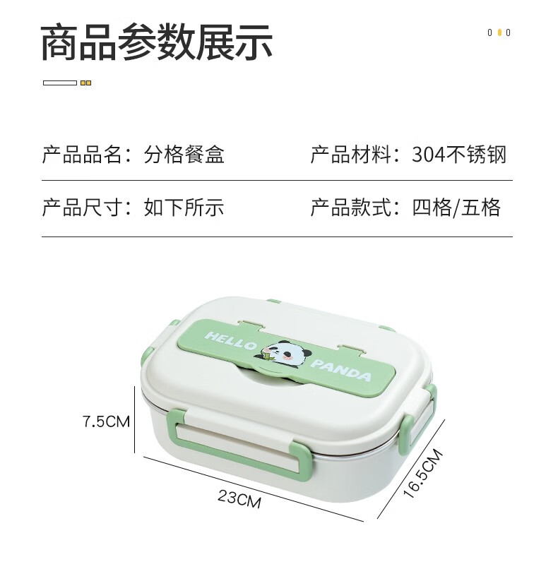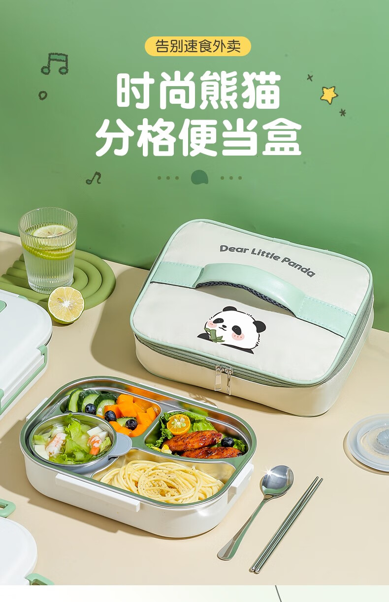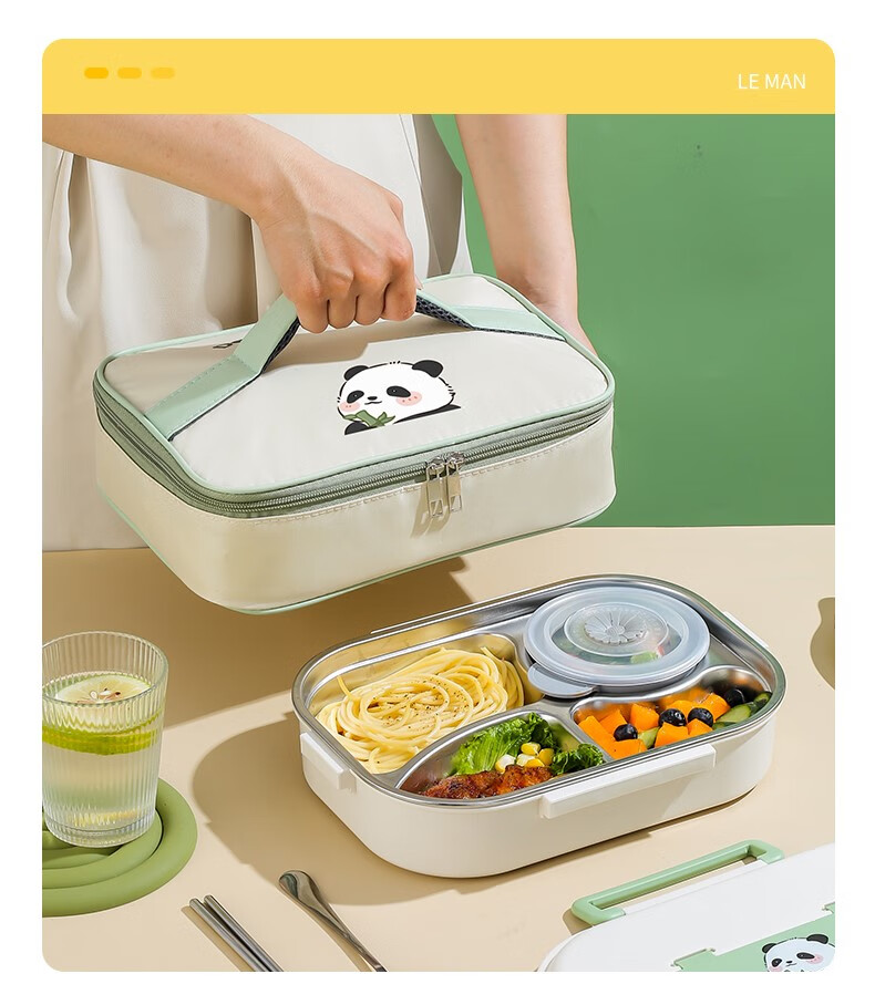 Le Yingfan primary school lunch box for grade 1-3 304 stainless steel insulated lunch box for primary school students special children's dinner plate panda + tableware + bag five compartments + soup bowl + meal 1ml