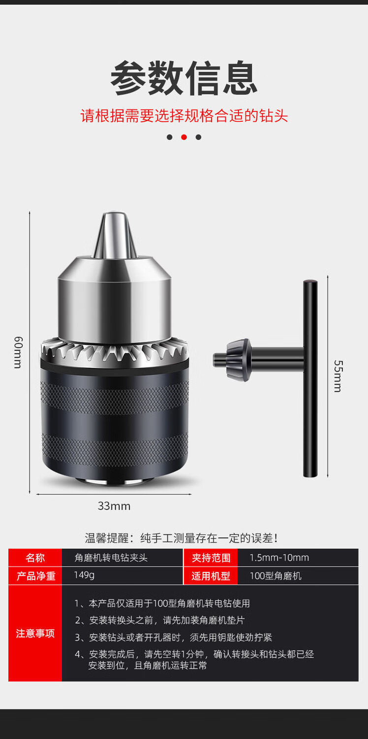 Haiduo angle grinder electric drill conversion head chuck multifunctional angle grinder special modified cutting machine practical tool accessories wrench iron chuck 1.5-10mm
