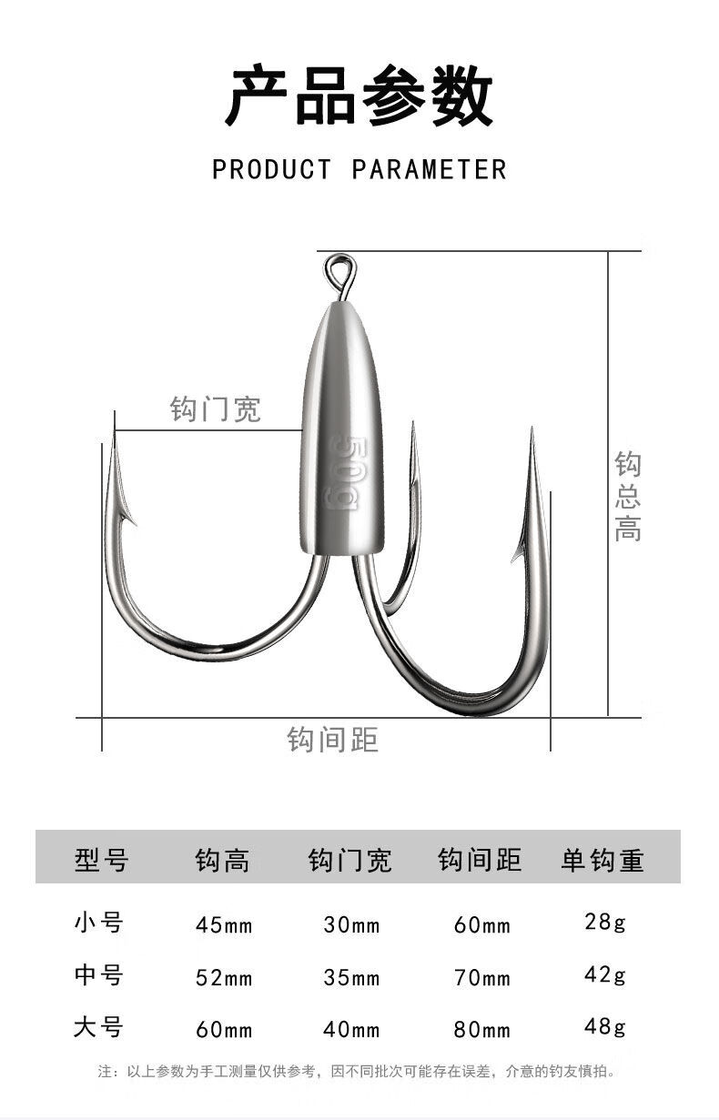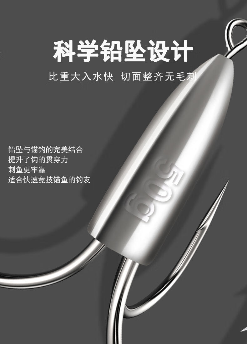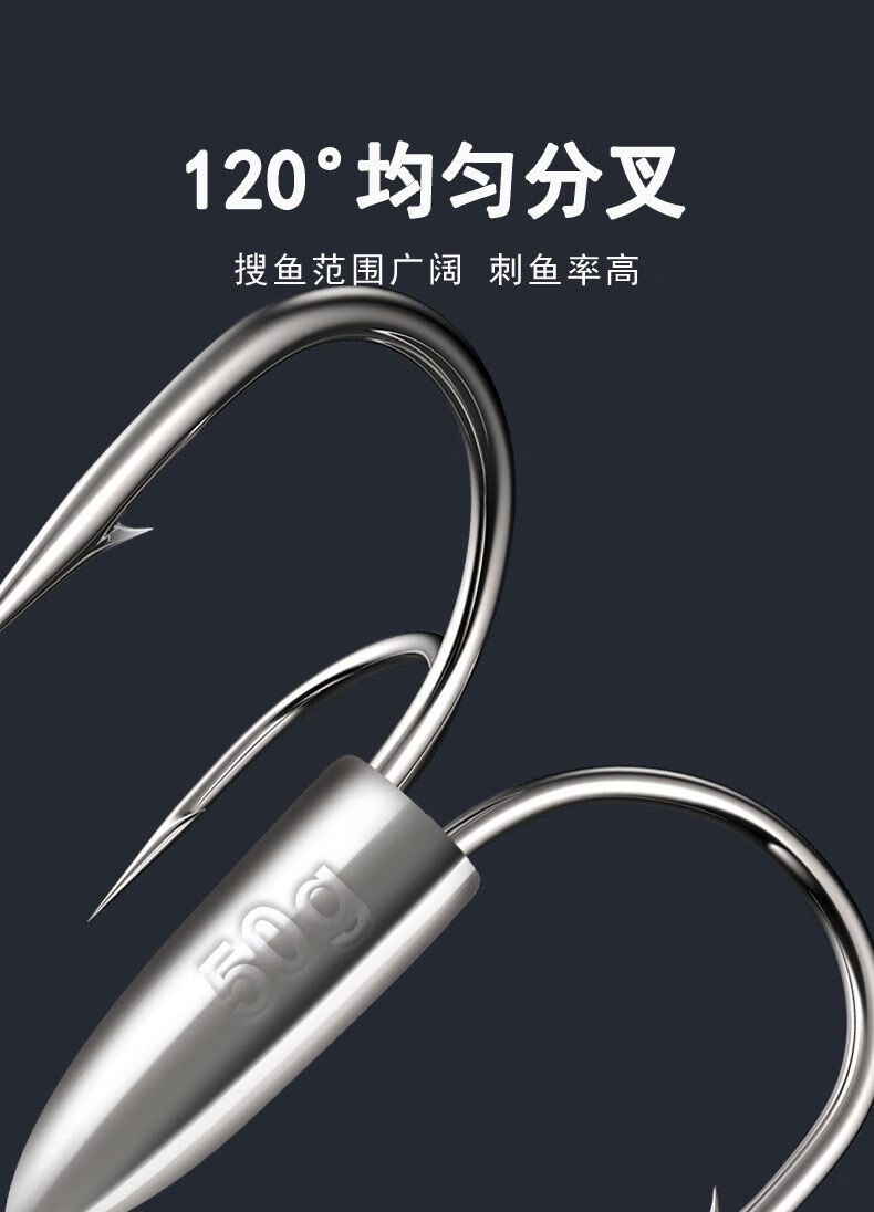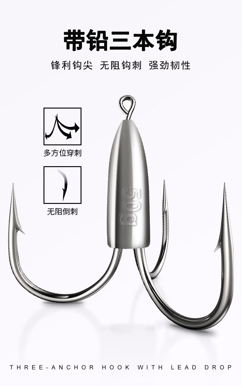 Langjixuan with lead pendant has barbed three hooks, three anchor hooks, three claw hooks, fish hooks, fish hooks, fishing gear and fishing supplies, large size about 50 grams (pack of 3)