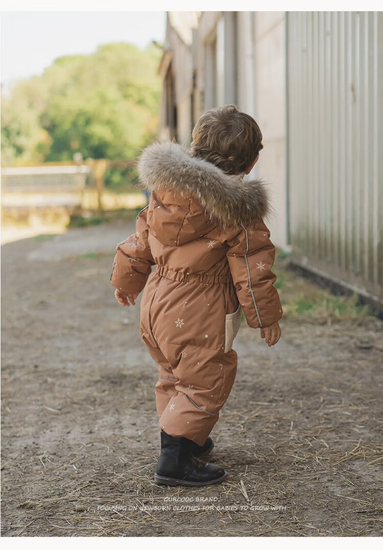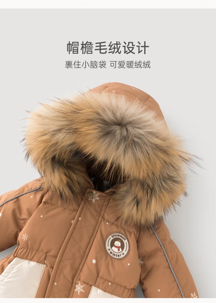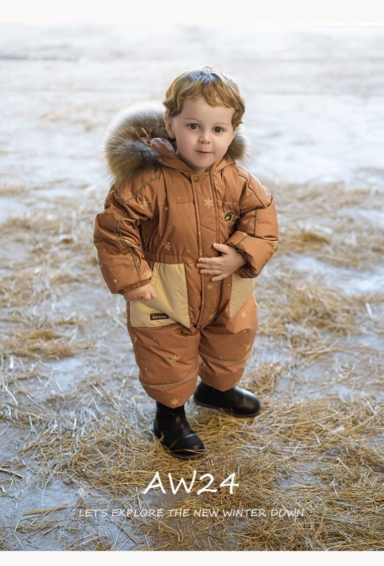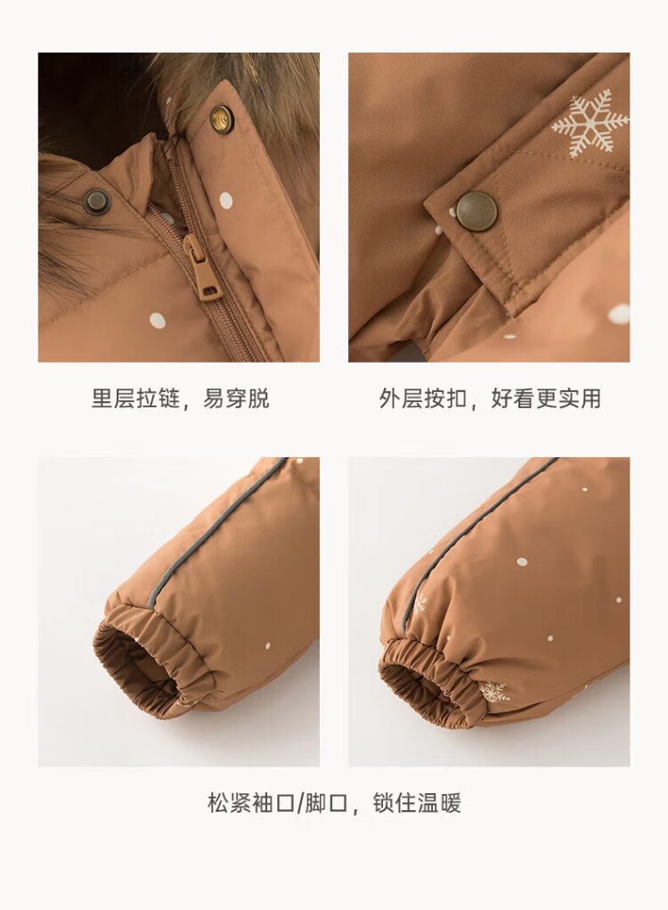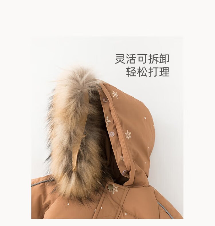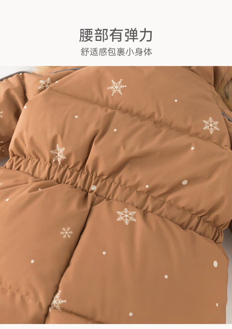 Guiqi Bear Graphene Fever Baby Down Jacket Jumpsuit Autumn and Winter Ski Wear Baby Three-Proof Warm Goose Down Jacket Mahogany Coffee/Snowflake 90cm