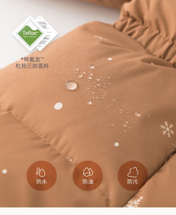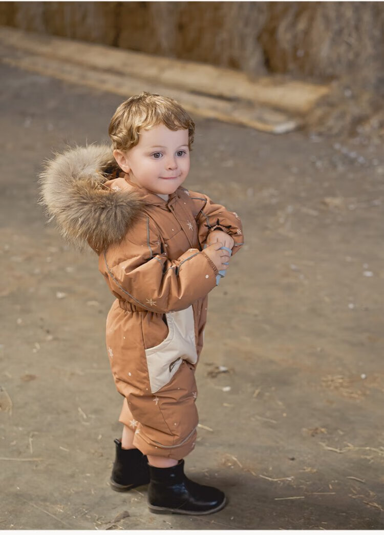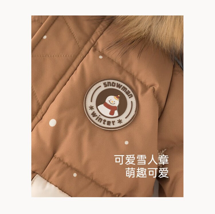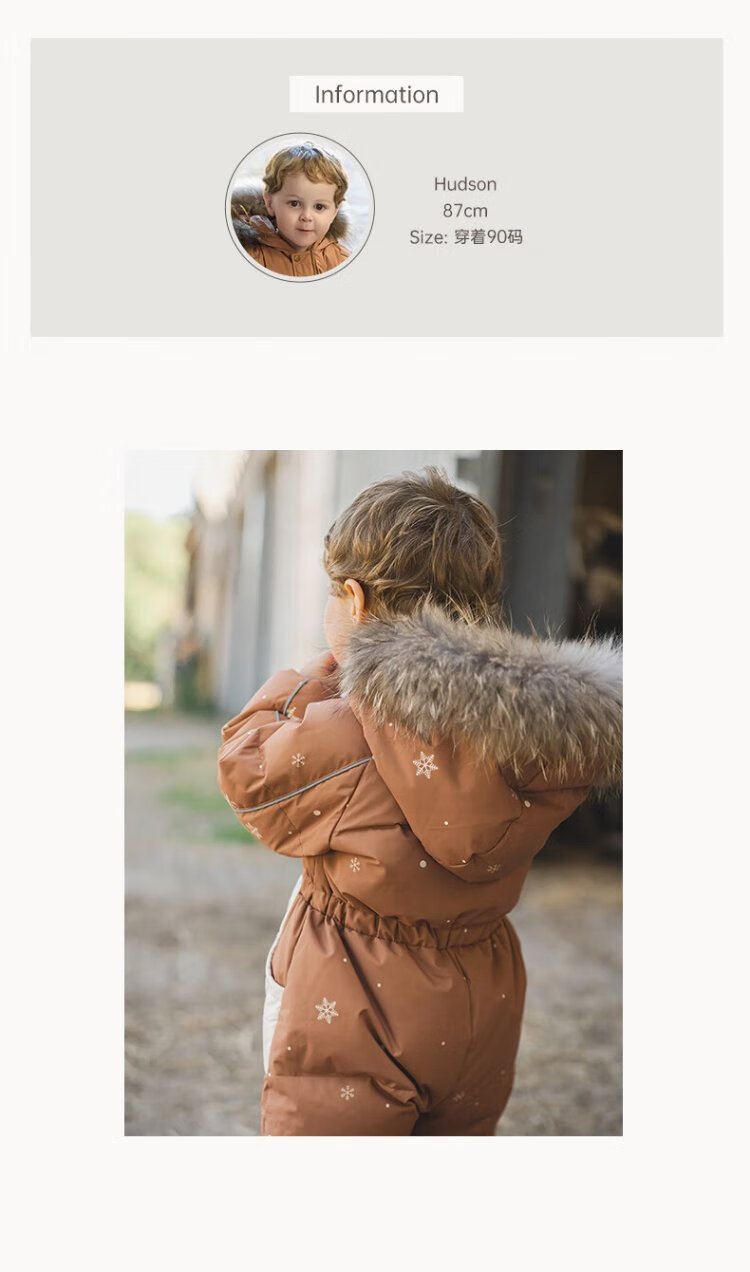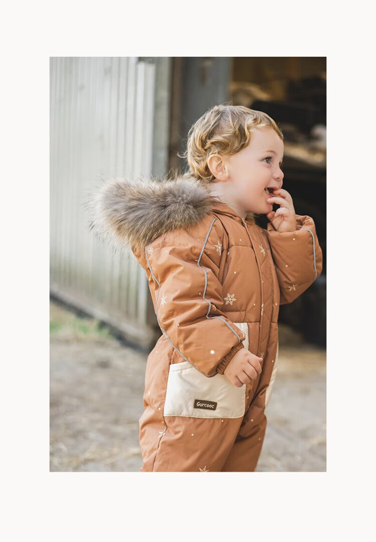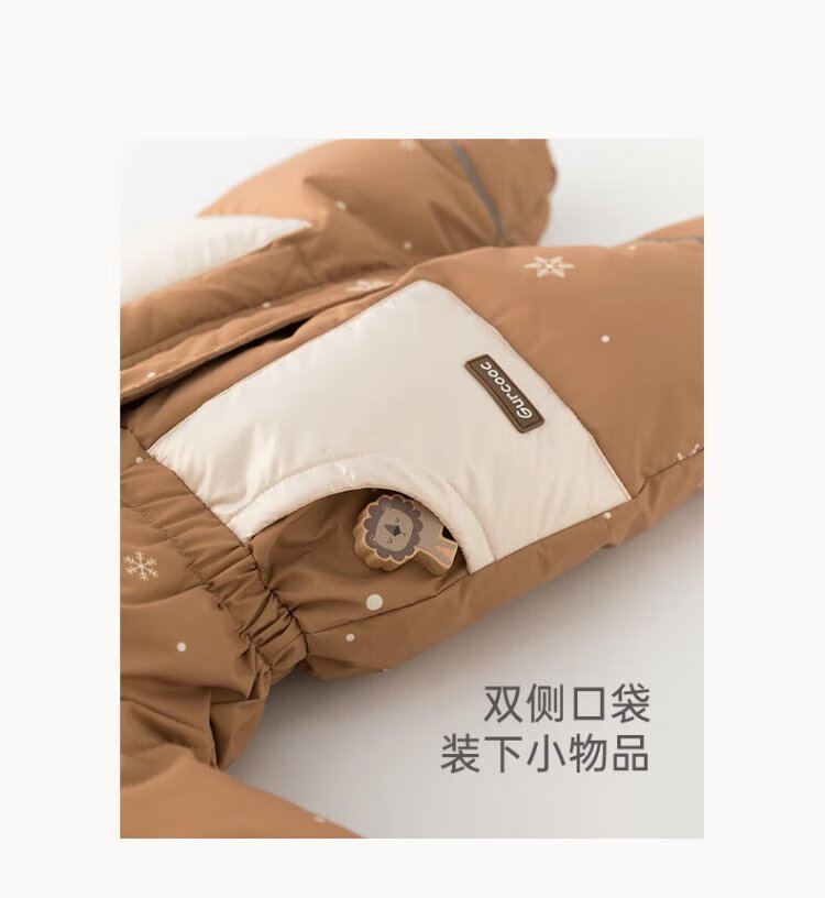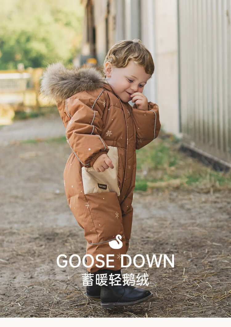 Guiqi Bear Graphene Fever Baby Down Jacket Jumpsuit Autumn and Winter Ski Wear Baby Three-Proof Warm Goose Down Jacket Mahogany Coffee/Snowflake 90cm