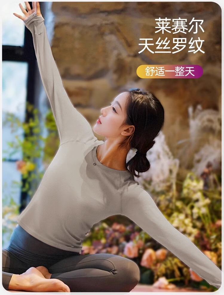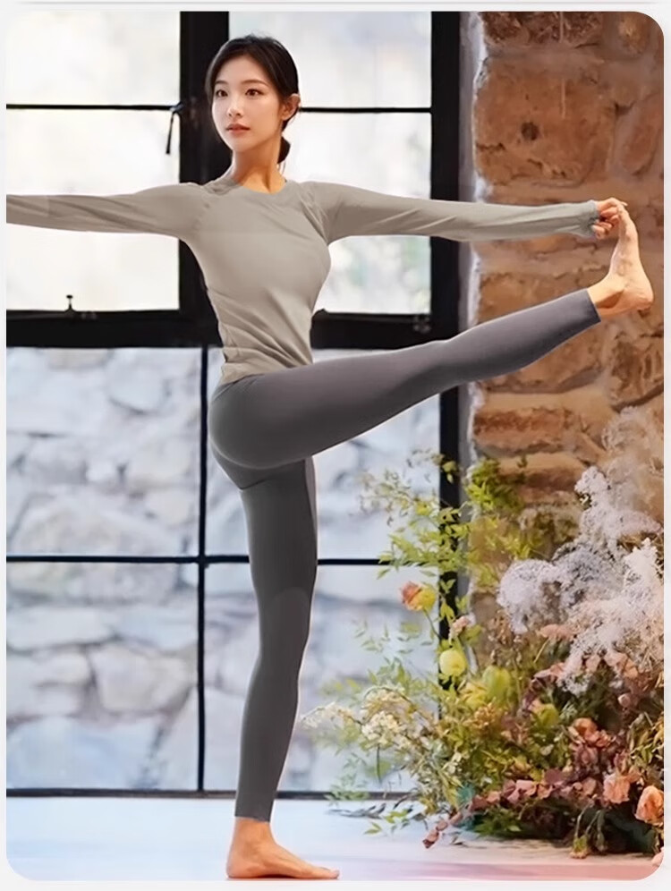 Shuangxiu yoga clothing suit for women 2025 new high-end autumn and winter Pilates can be worn outside to look slimming and cover the belly, sports long sleeves, oatmeal top, dove gray pants, threaded style S 80-100