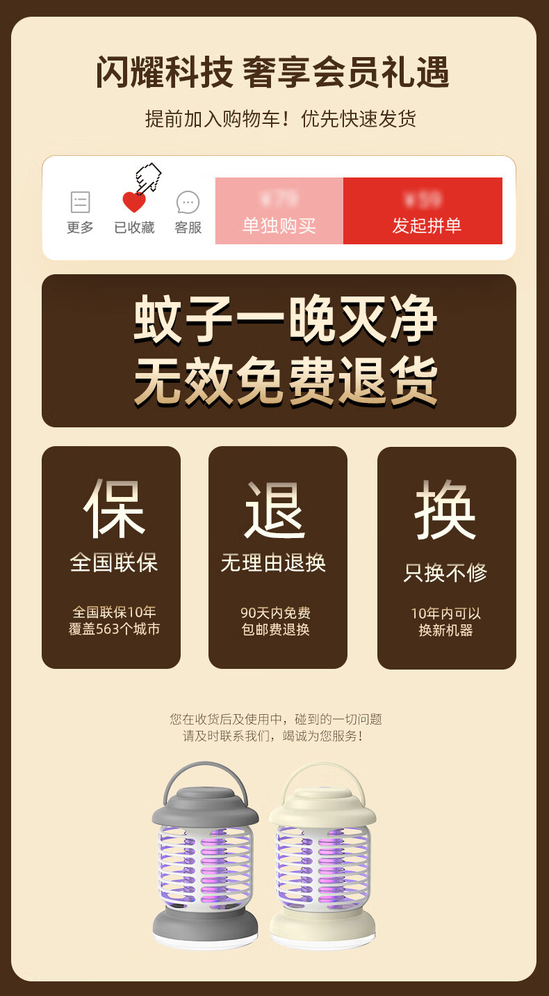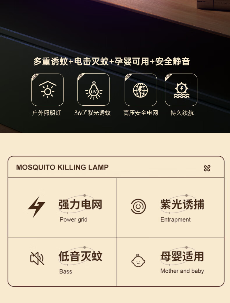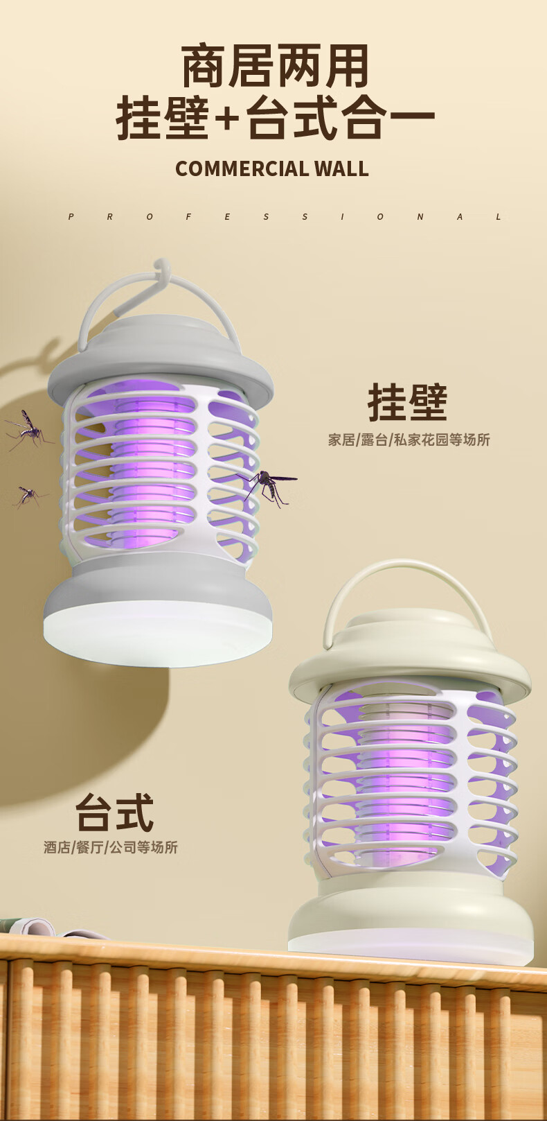 Mosquito killer lamp, electric mosquito swatter, two-in-one mosquito repellent and mosquito killer, mosquito swatter, fly swatter, fly swatter, fly killer, khaki rechargeable model