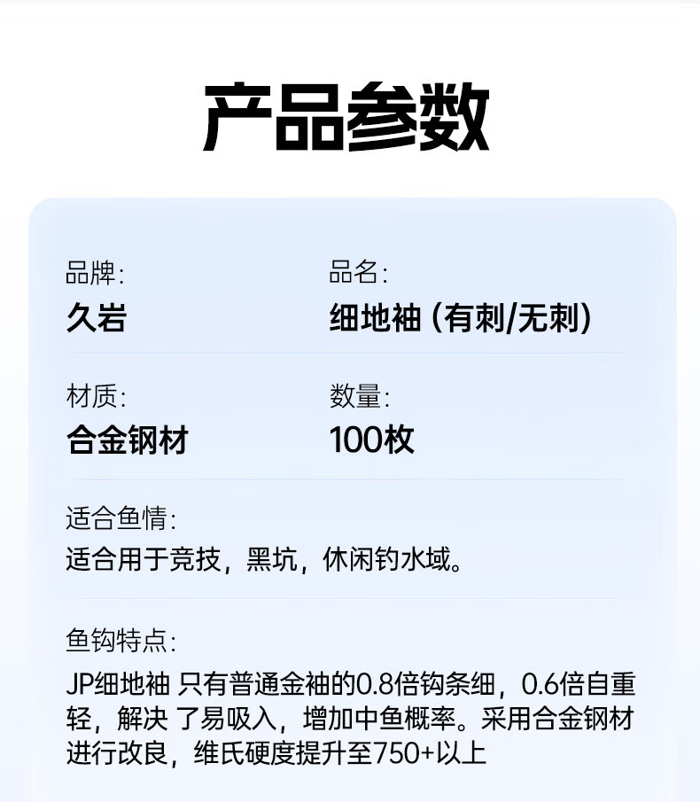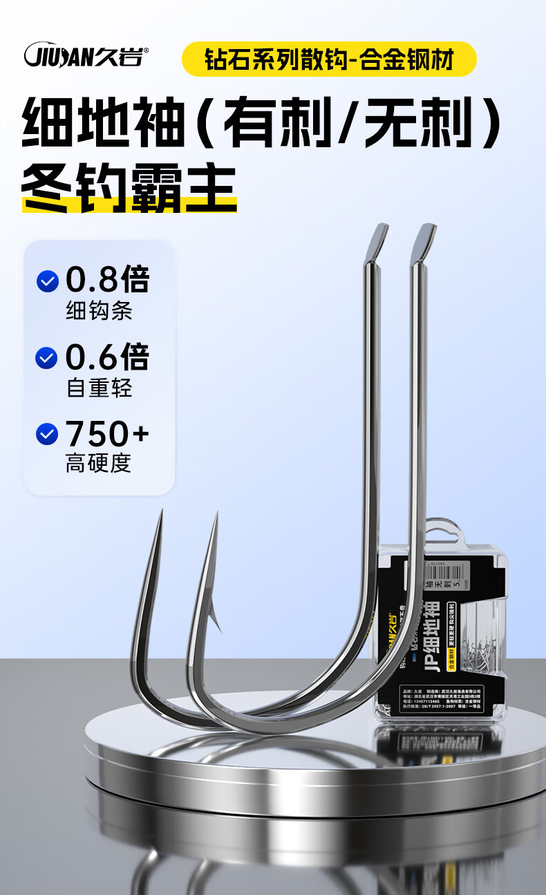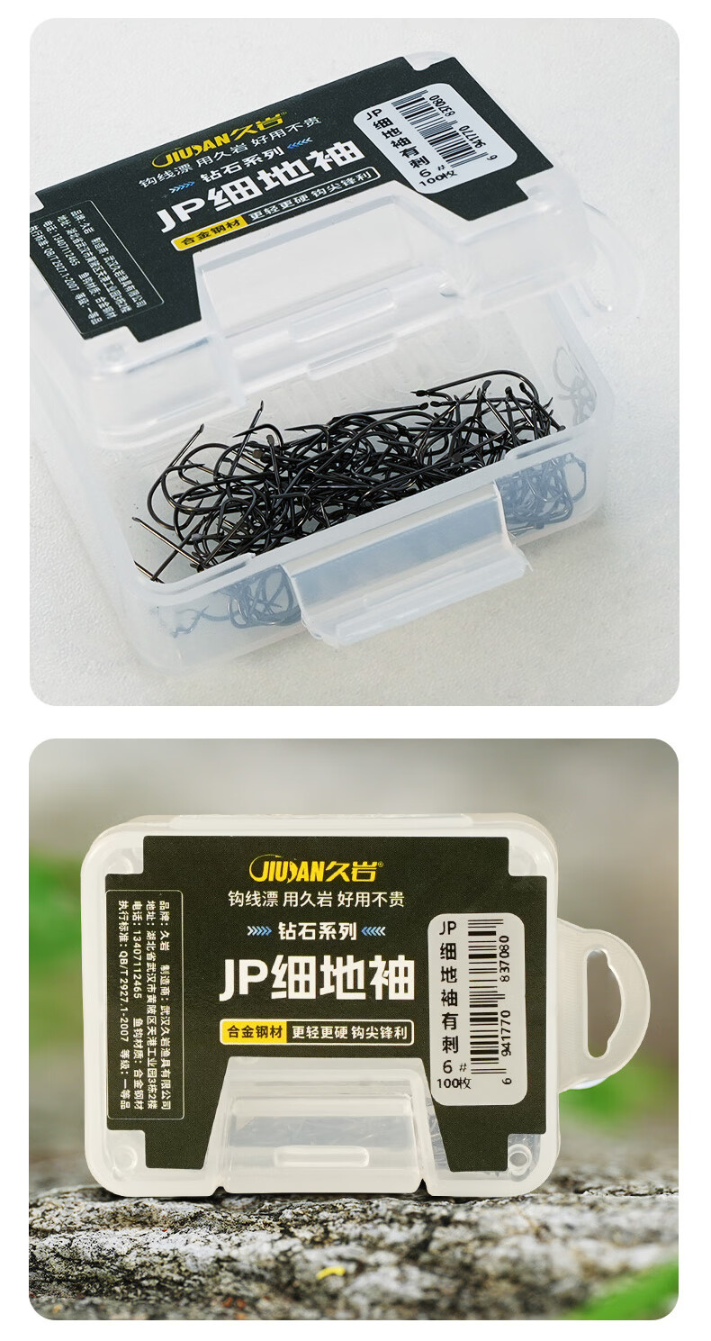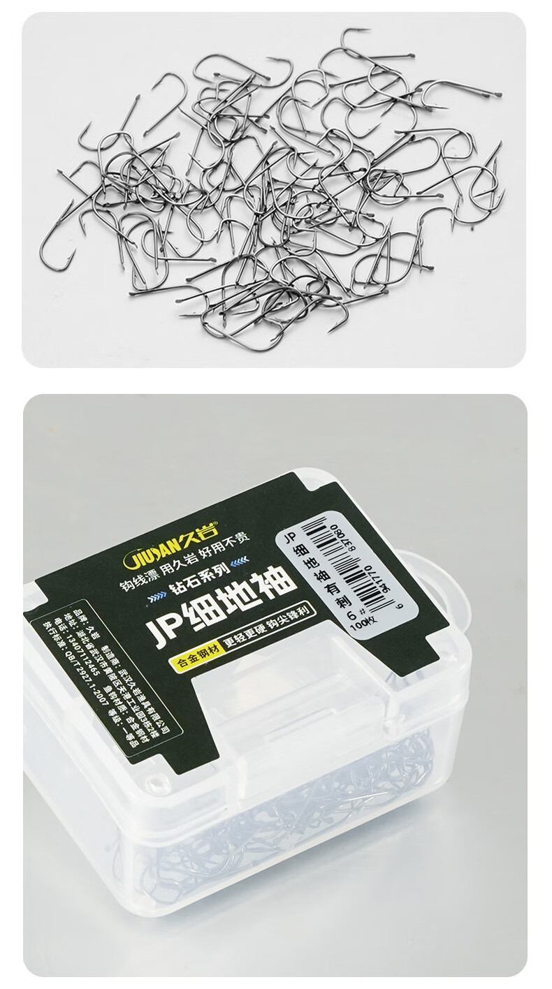 Jiuyan JP thin ground sleeve fishhook in bulk genuine alloy steel extremely thin long handle special light mouth white striped crucian carp 4# thornless JP thin ground sleeve & alloy steel (100 pieces)
