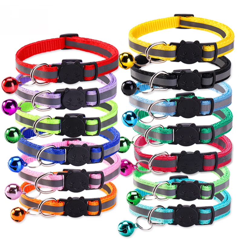 Pet reflective collar, universal bell collar for cats and dogs, adjustable collar, anti-lost, small reflective collar decoration, small flower pendant/random color/large size, one size fits all/adjustable size