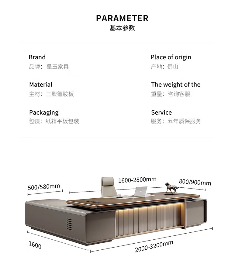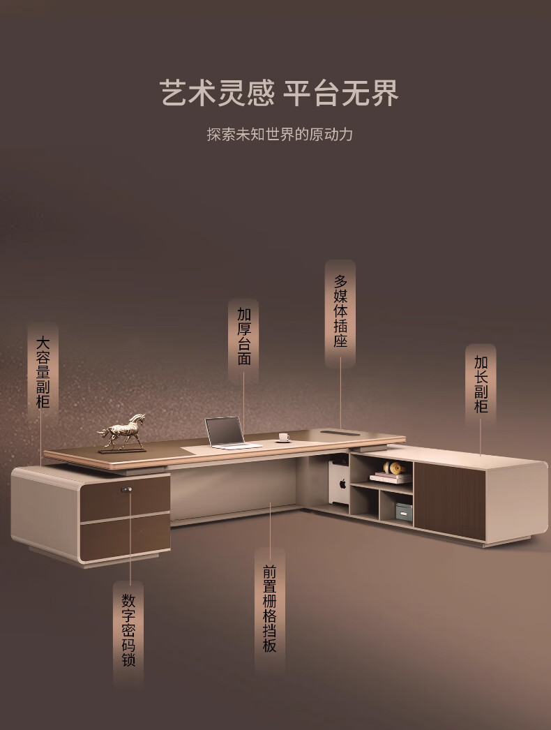 Chengyu light luxury boss desk desk simple modern leadership office furniture executive desk president manager desk and chair combination 2.2 meters luxury double cabinet boss desk