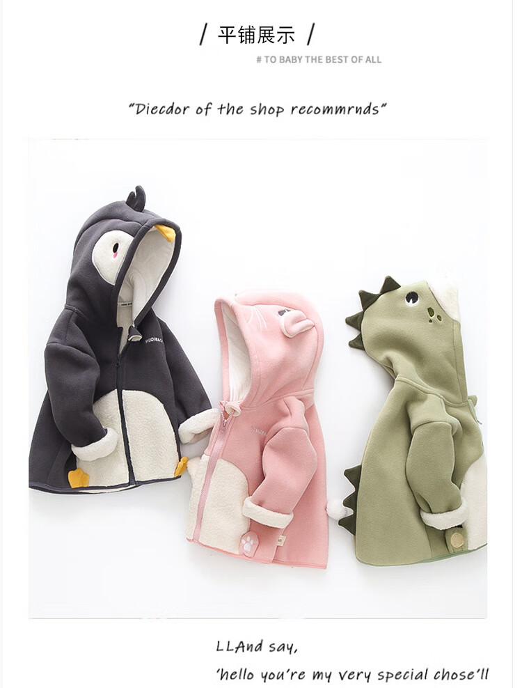 JINBUDING 2024 Children's Polar Fleece Jackets Children's Clothing Boys and Girls Clothes Velvet Thickened Baby Autumn Jackets Cartoon Polar Fleece/Bunny Pink 90 cm