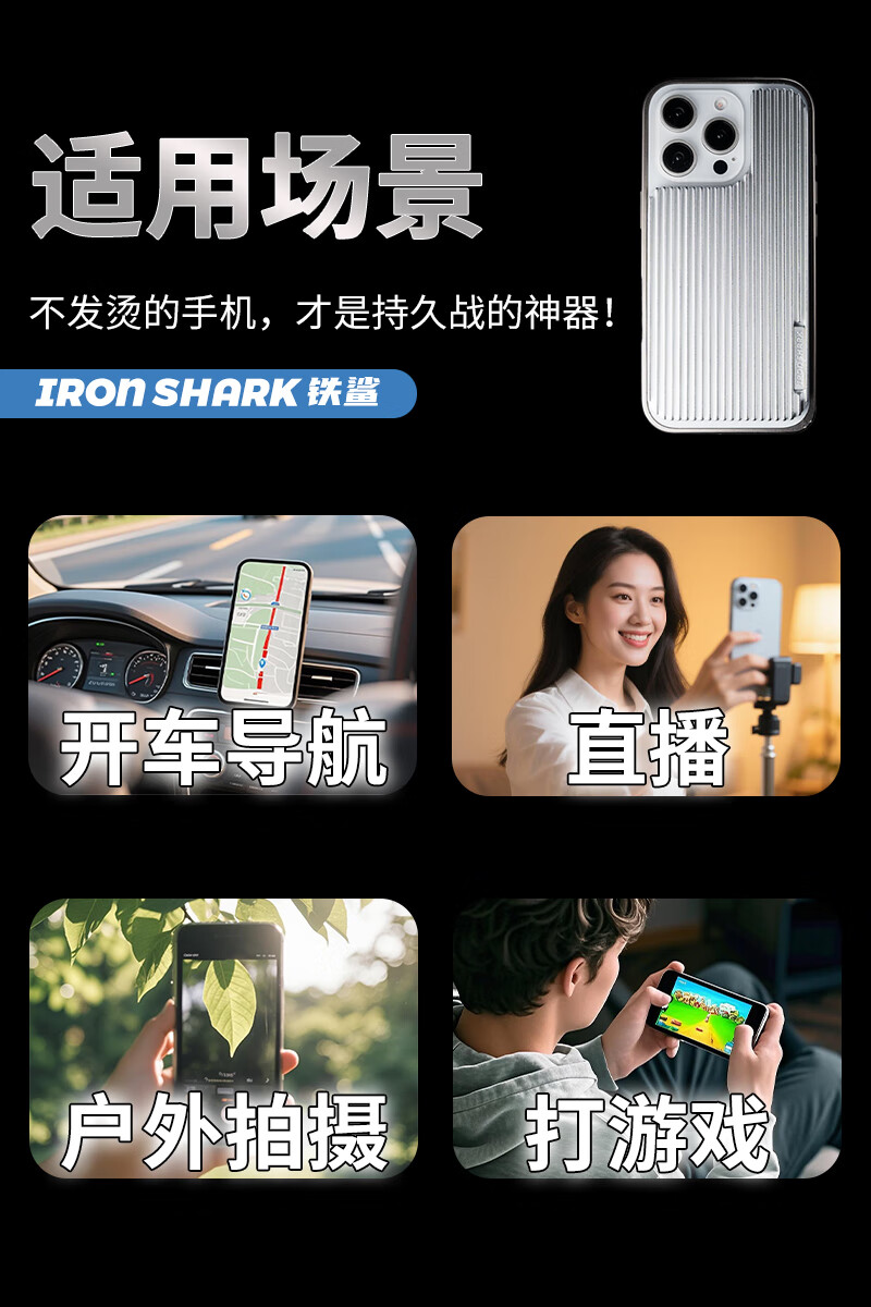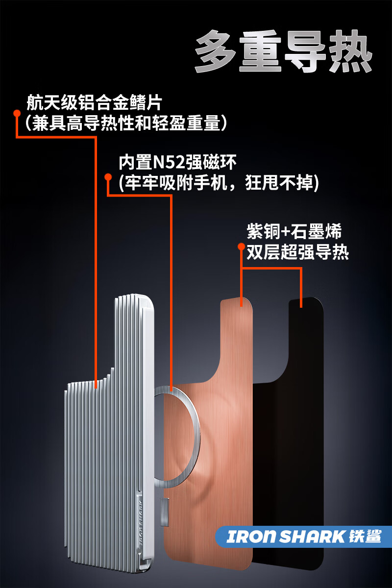 IRON SHARK Charging hot buster drops down to 12 degrees for iPhone Magnetic heat dissipation for iPhone No need for power supply radiator Magnetic heat dissipation back fin (compatible with 12-17 series)
