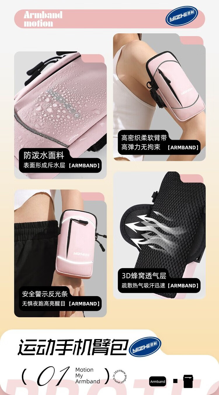 Raf core running mobile phone arm bag women's storage bag sports wrist bag lightweight waterproof fitness equipment men's cross-body multi-function arm bag Hepburn black + headband classic black running combination