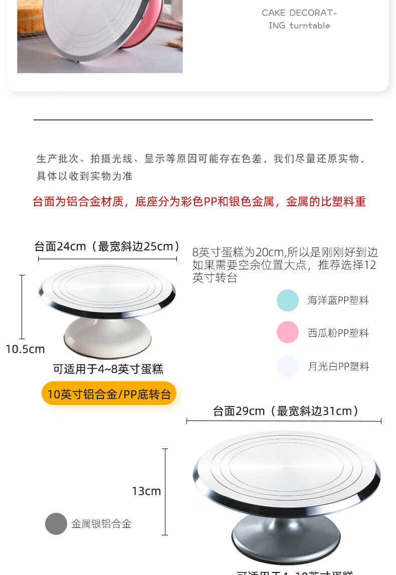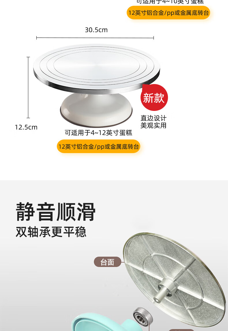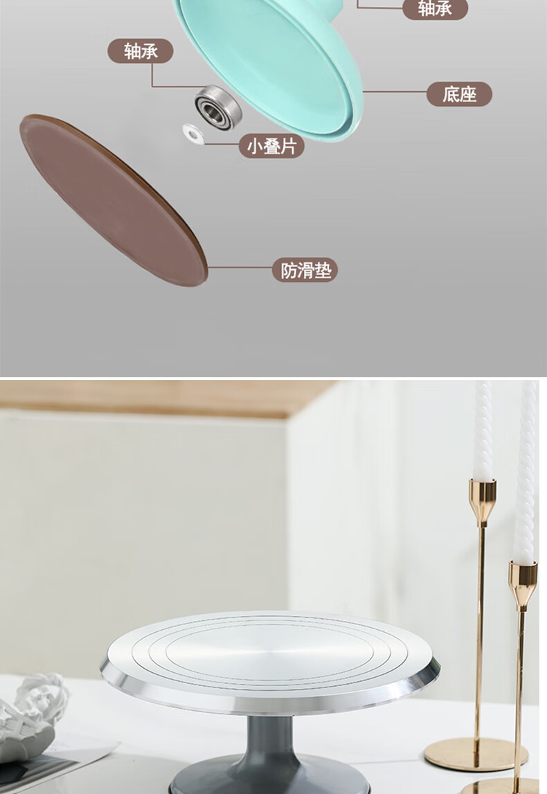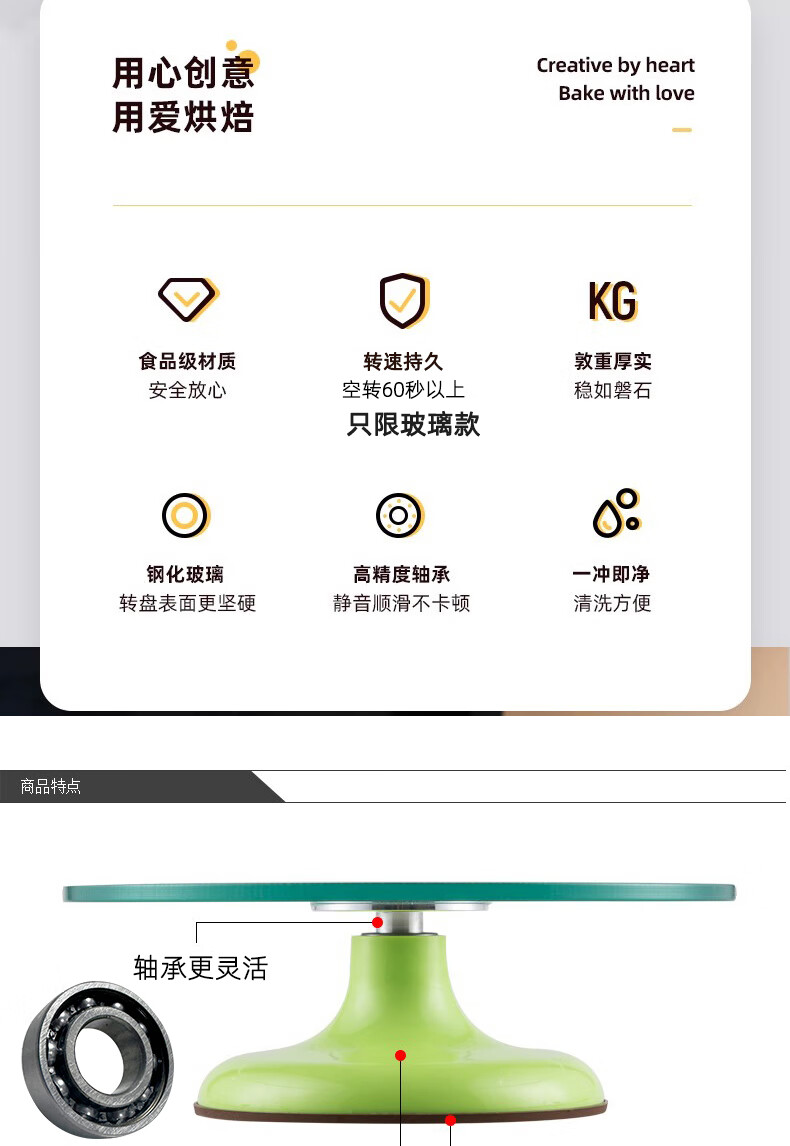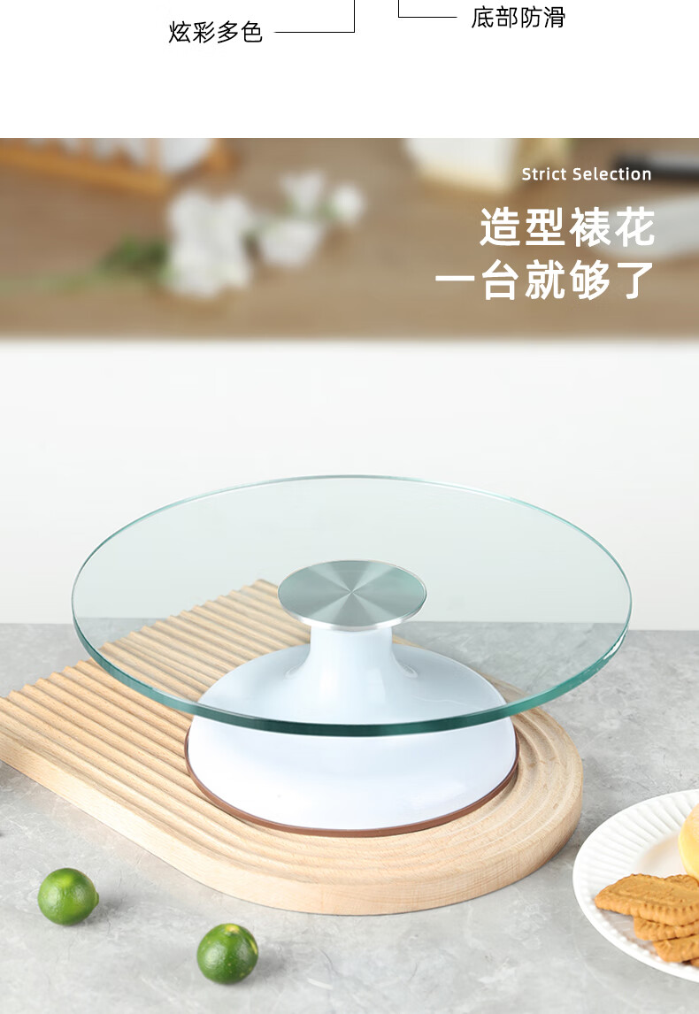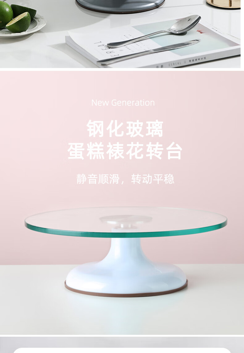 CLCEY turntable decorating table aluminum alloy decorating turntable rotating plaster tray household commercial baking tool set 12-inch glass thin single bearing anti-slip pad