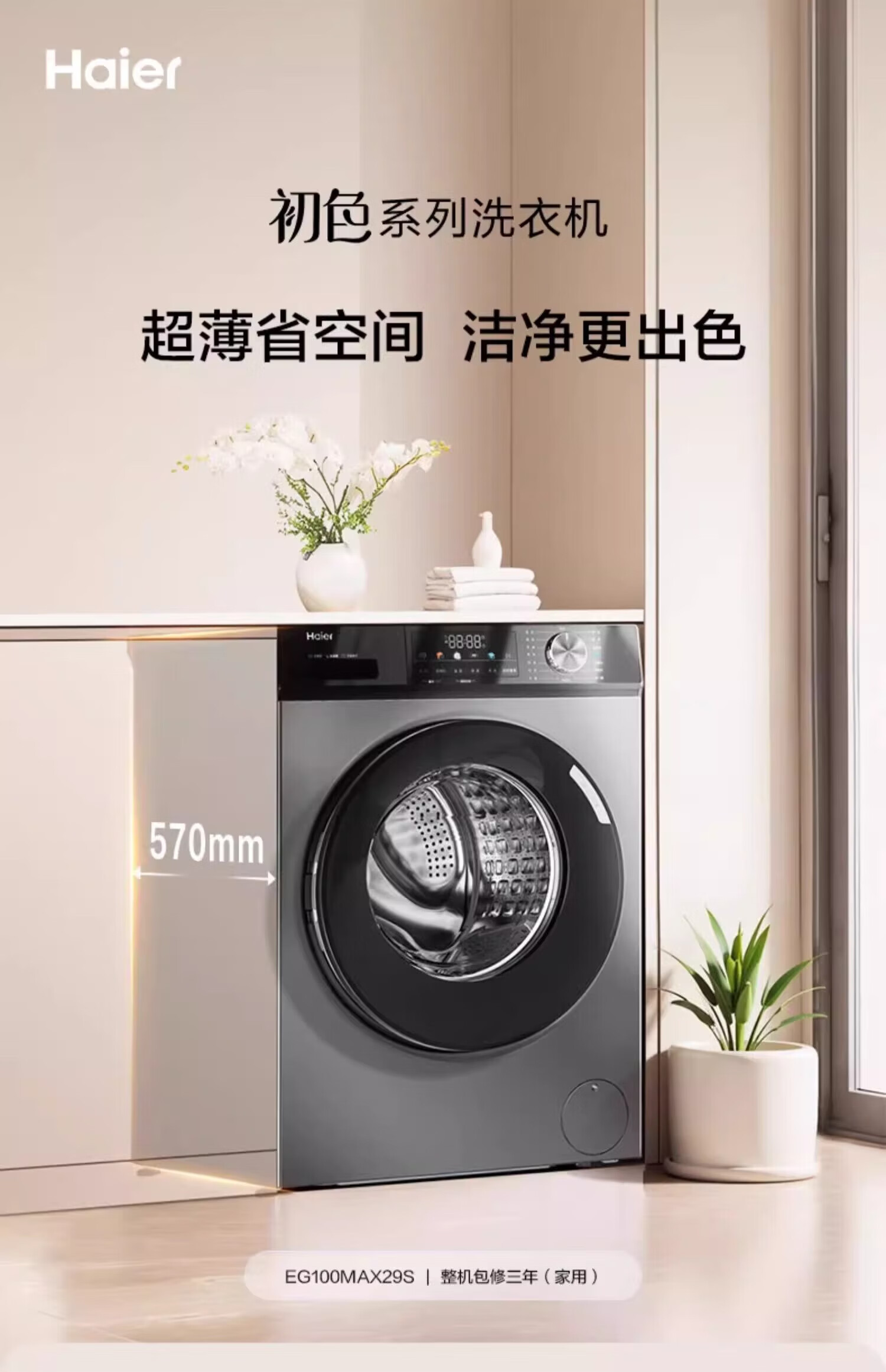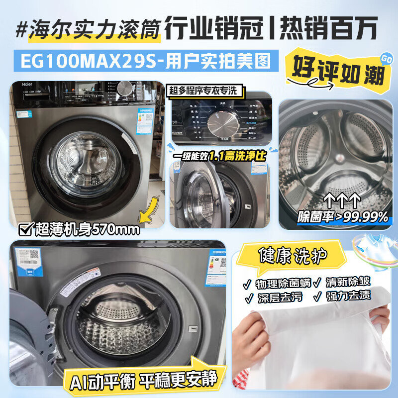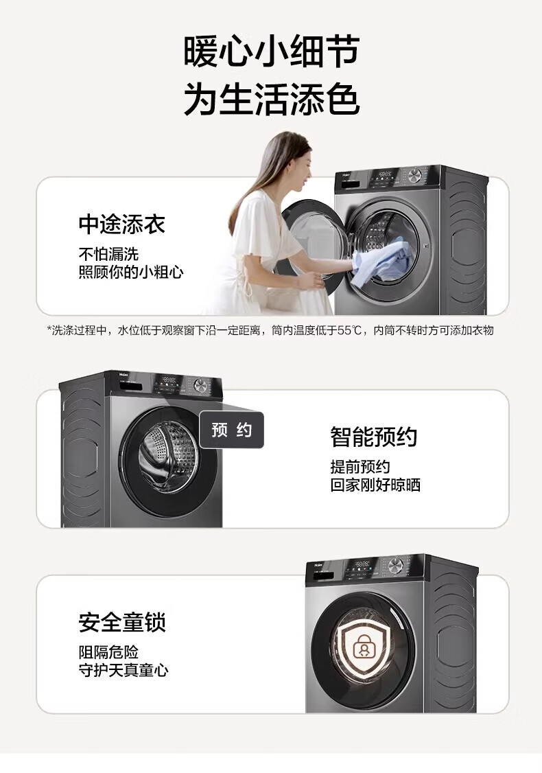 Haier drum washing machine fully automatic 10kg ultra-thin frequency conversion upgraded six-dimensional shock absorption 1.1 cleaning ratio household large capacity down washing appliance trade-in industry best seller丨hot sellers in millions丨original surf washing drum 10kg