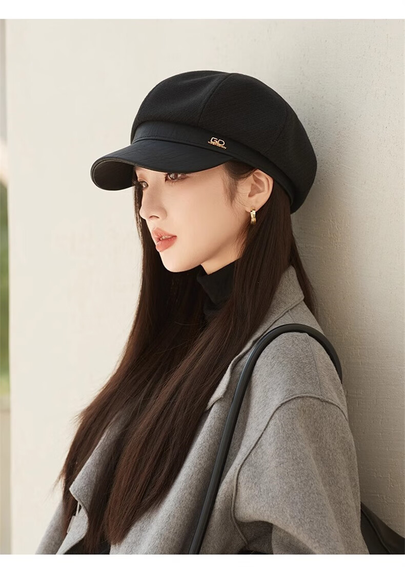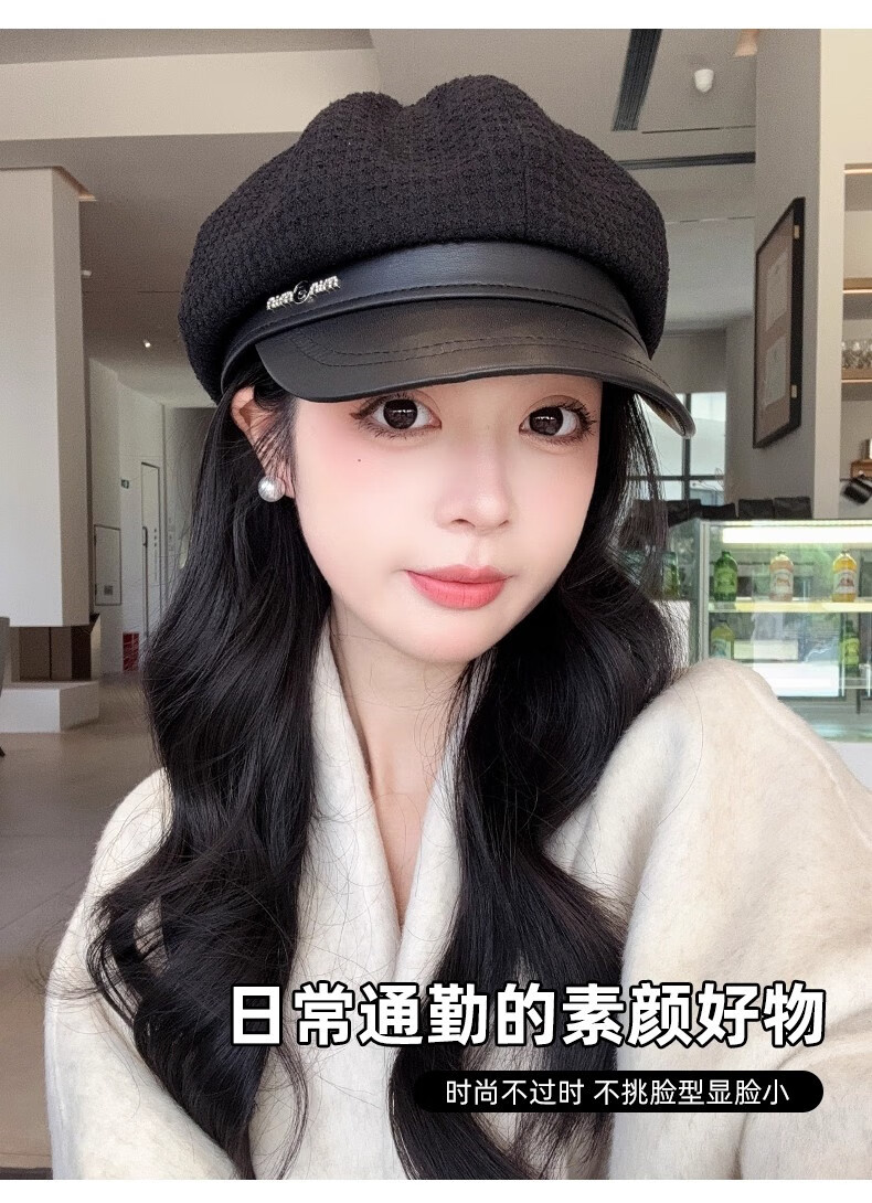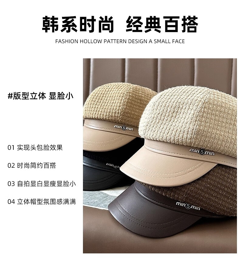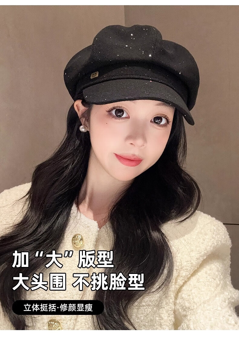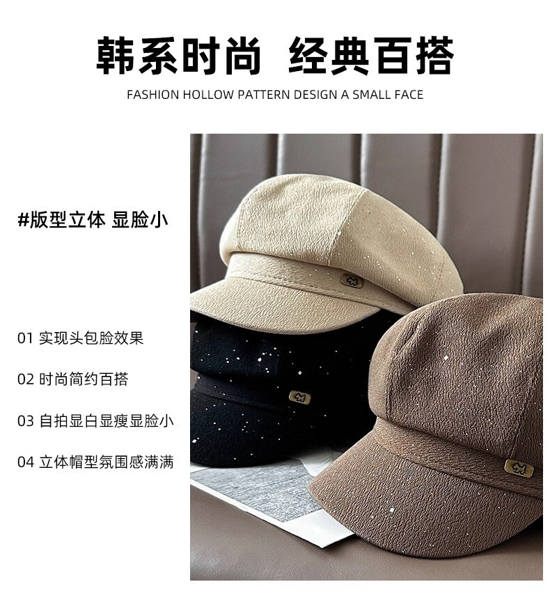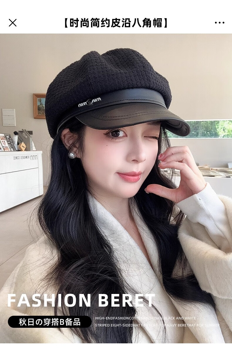 Scarecrow beret hat for women 2025 new fashion versatile Korean painter's hat simple octagonal hat showing face small and suitable for all seasons black one size