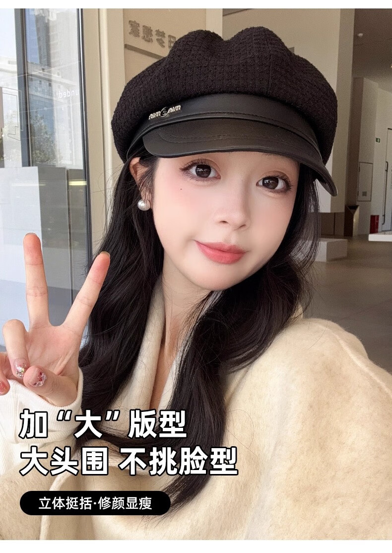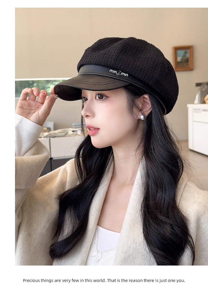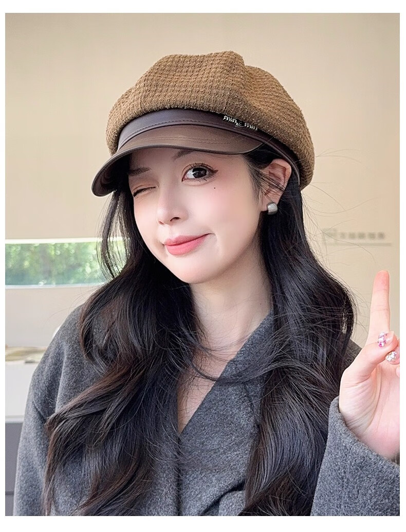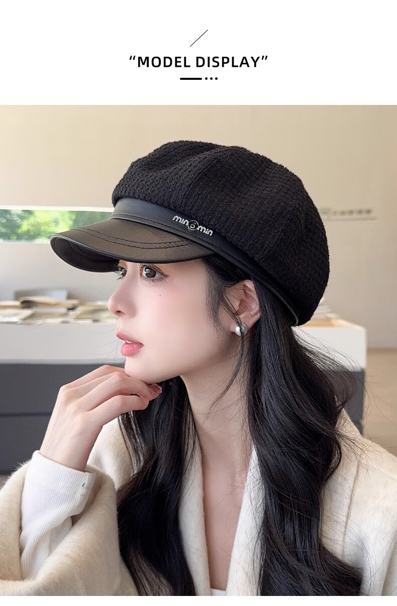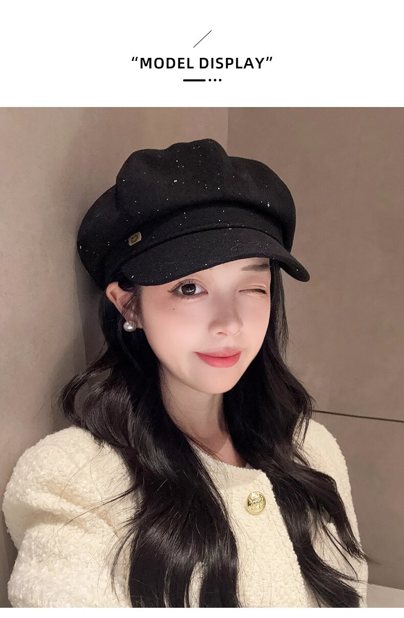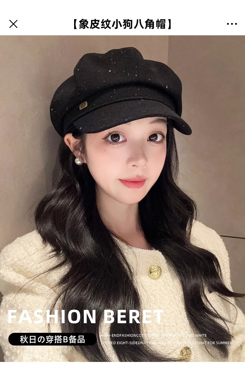 Scarecrow beret hat for women 2025 new fashion versatile Korean painter's hat simple octagonal hat showing face small and suitable for all seasons black one size