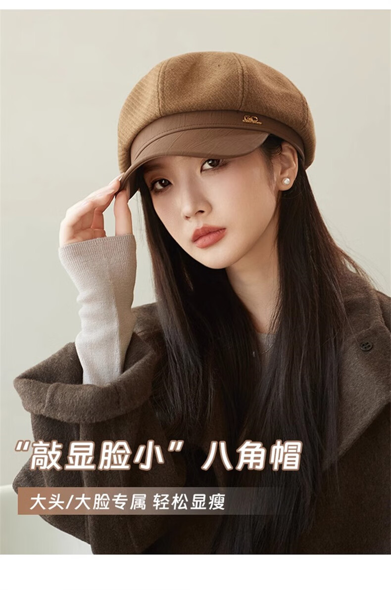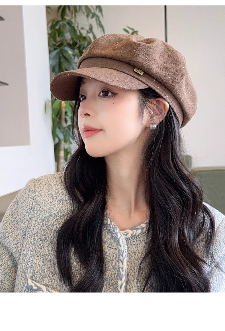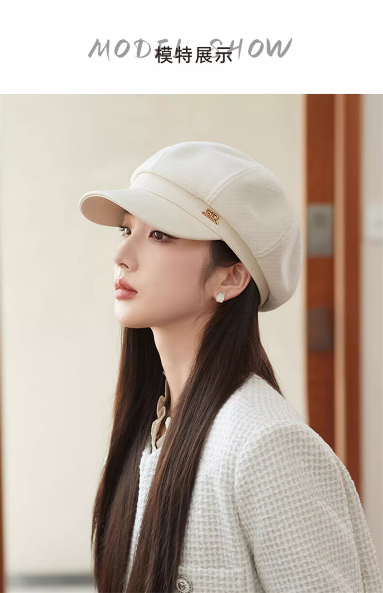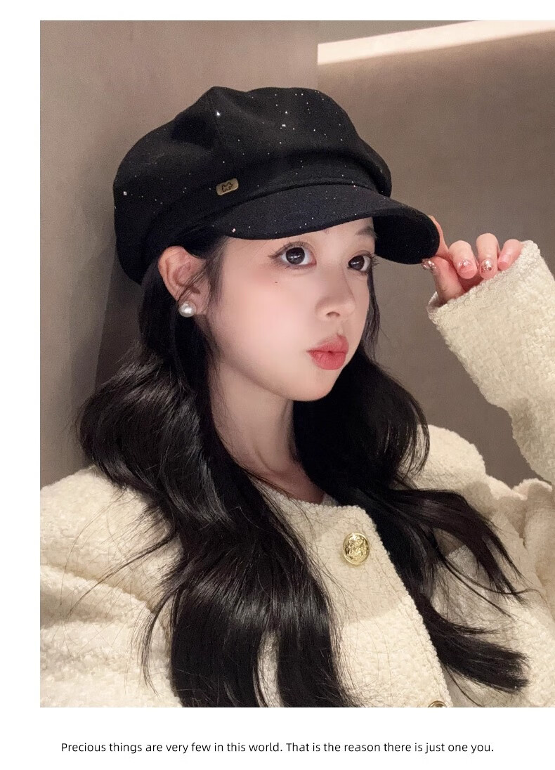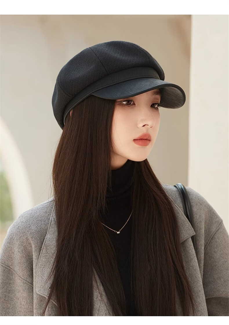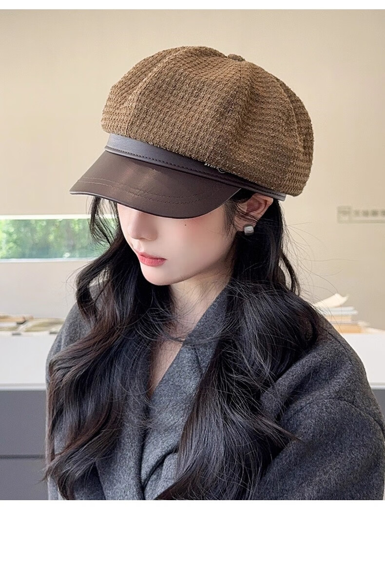 Scarecrow beret hat for women 2025 new fashion versatile Korean painter's hat simple octagonal hat showing face small and suitable for all seasons black one size